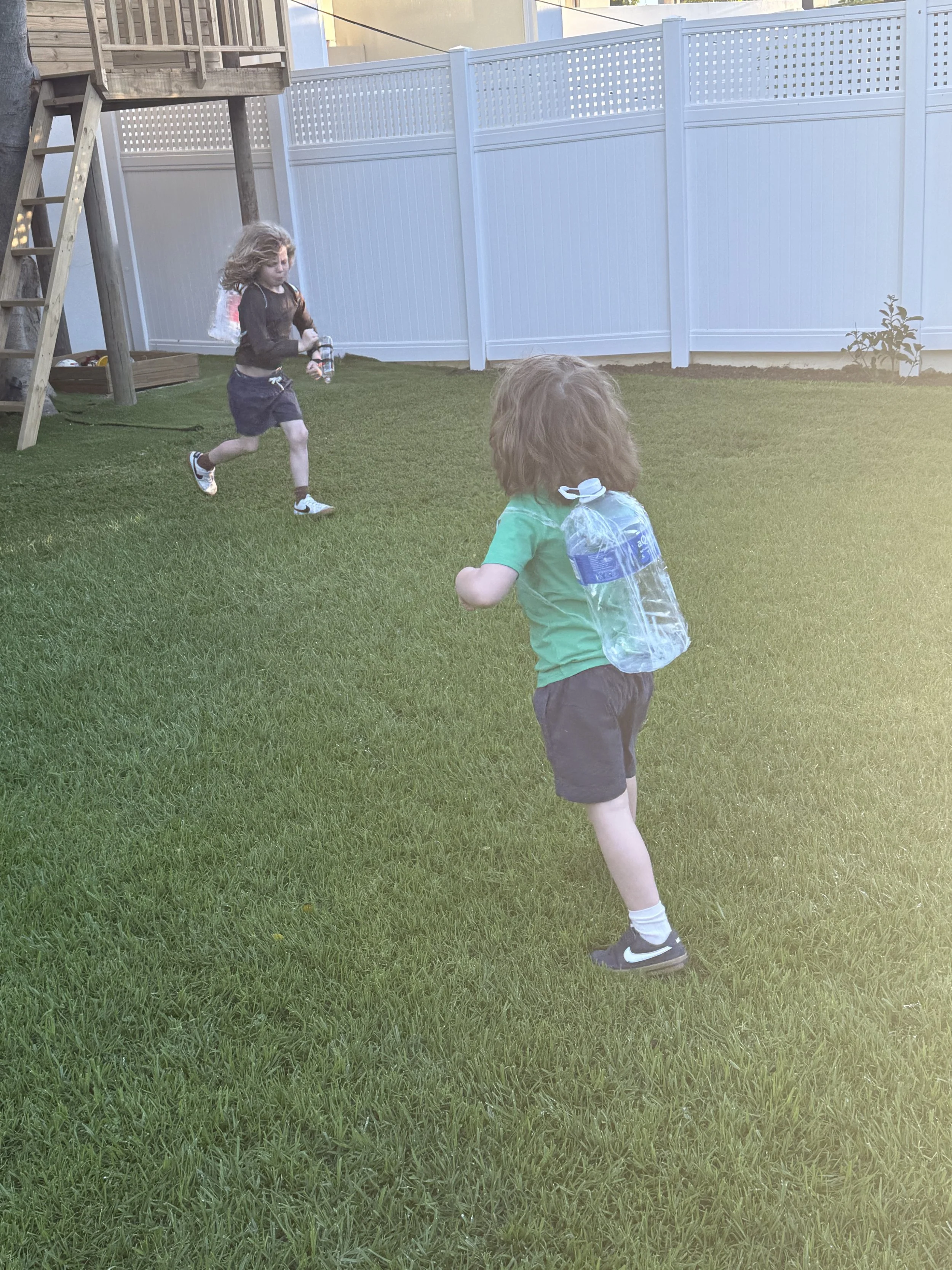 The boys were up and at em with ghostbusters play in the backyard. They like to ask us for missions to get ghosts so we will tell them, “There is a green slimer in the treehouse, go get him!” and off they run. We’re on day 2 of this game and hopeful it continues.