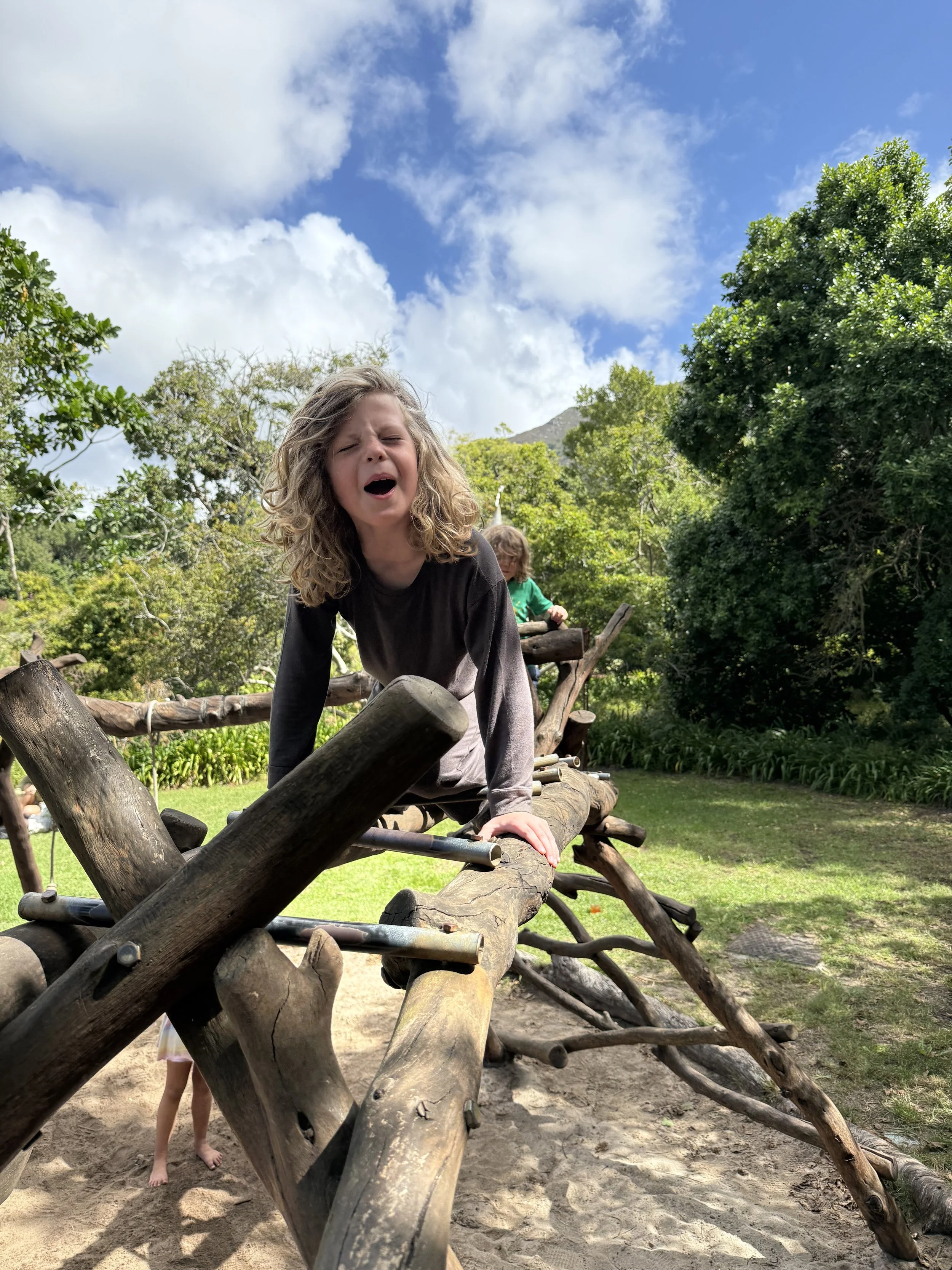 We wrapped up the afternoon by returning to Green Point park. We found another Labyrinth for the boys to explore and a handful of new playgrounds. Kyle made up a challenge where he offered $20 to anyone who successfully made their way across the very slippery balance beam. Ollie was focused on this challenge and made many attempts but sadly couldn’t make it. I successfully completed the balance beam challenge but Kyle said the reward was only meant for the children.