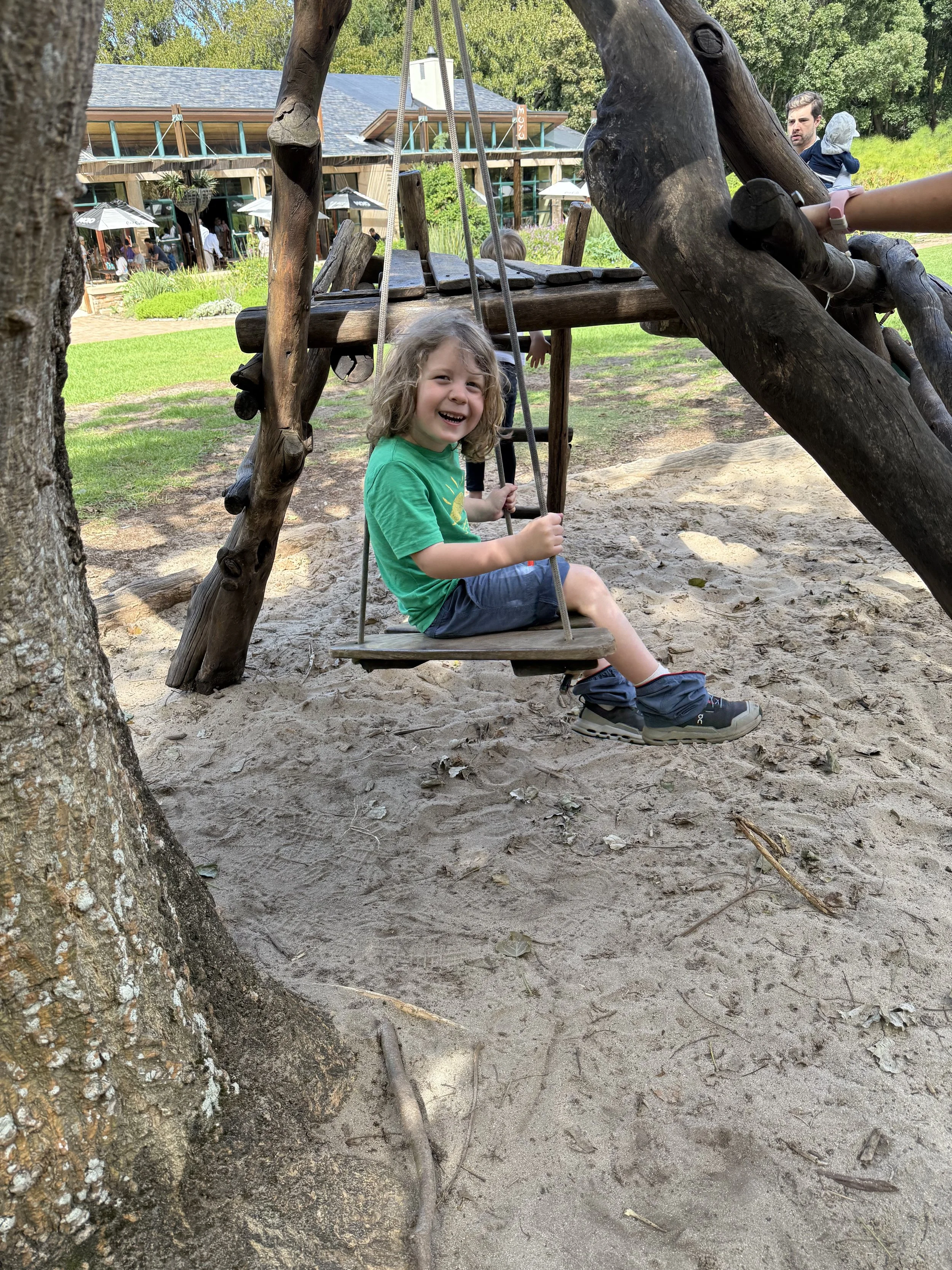 Though their snake dreams were squashed, there was a small playground near the restaurant that the boys loved. Len managed to bruise his face and chin pretty badly on this playground but Ollie made it out unscathed. Their favorite part of the garden was definitely the playground followed by playing with sticks in the mud as a close second.