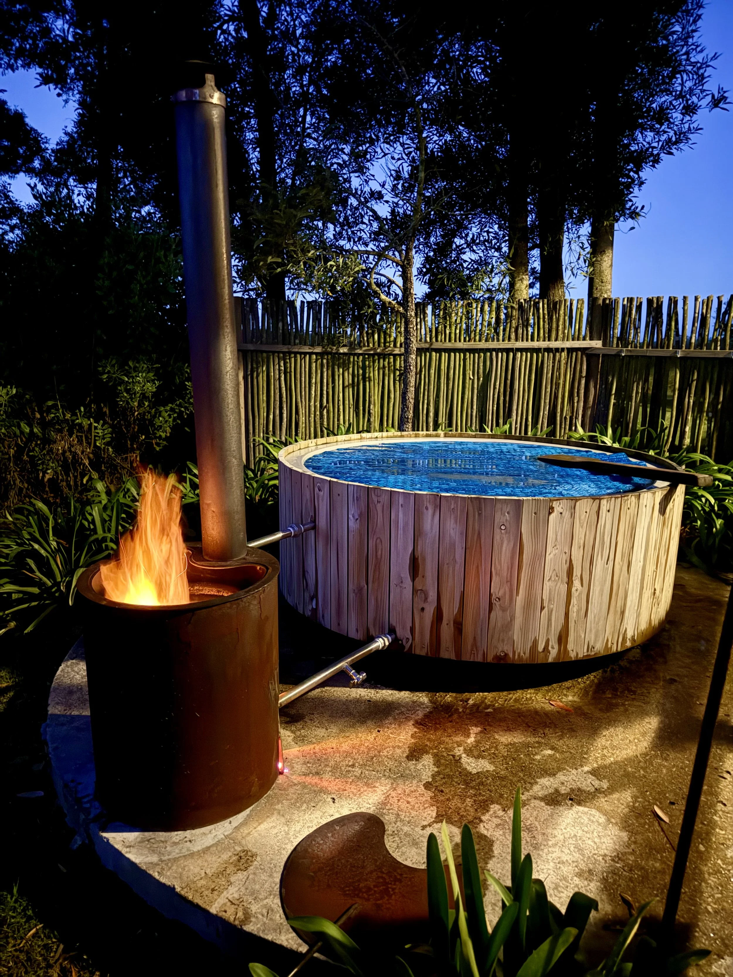 The most exciting part of the glamping setup, though, is the fire powered hot tub. We bought two bags of firewood to get the fire going tonight so it’ll be warm for a dip tomorrow morning. The boys were both excited to take the paddle to stir the water and are excited for “people soup” tomorrow.