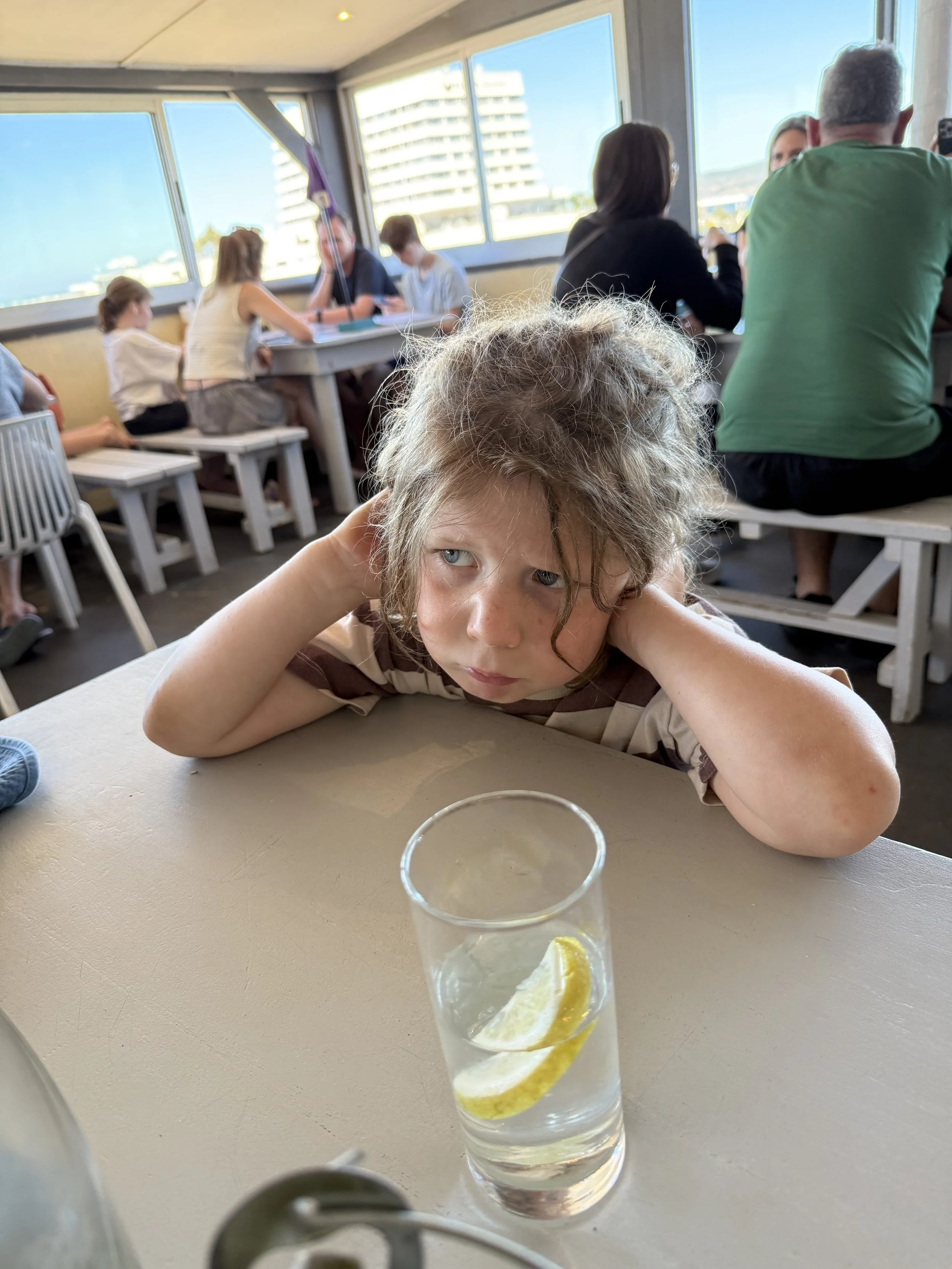 We walked down to the beach from our hotel to check it out and find lunch. There was a nice, mostly outdoor, restaurant we tried but were told the food would be an hour wait even though there was a table. We decided to try elsewhere, probably shouldn’t have, and ended up getting a not great lunch a few doors down. Kayleen and I decided it was the worst meal for the cost of the trip yet! We had to feed the boys as the hangry faces were out so it was more a meal of necessity then anything else.