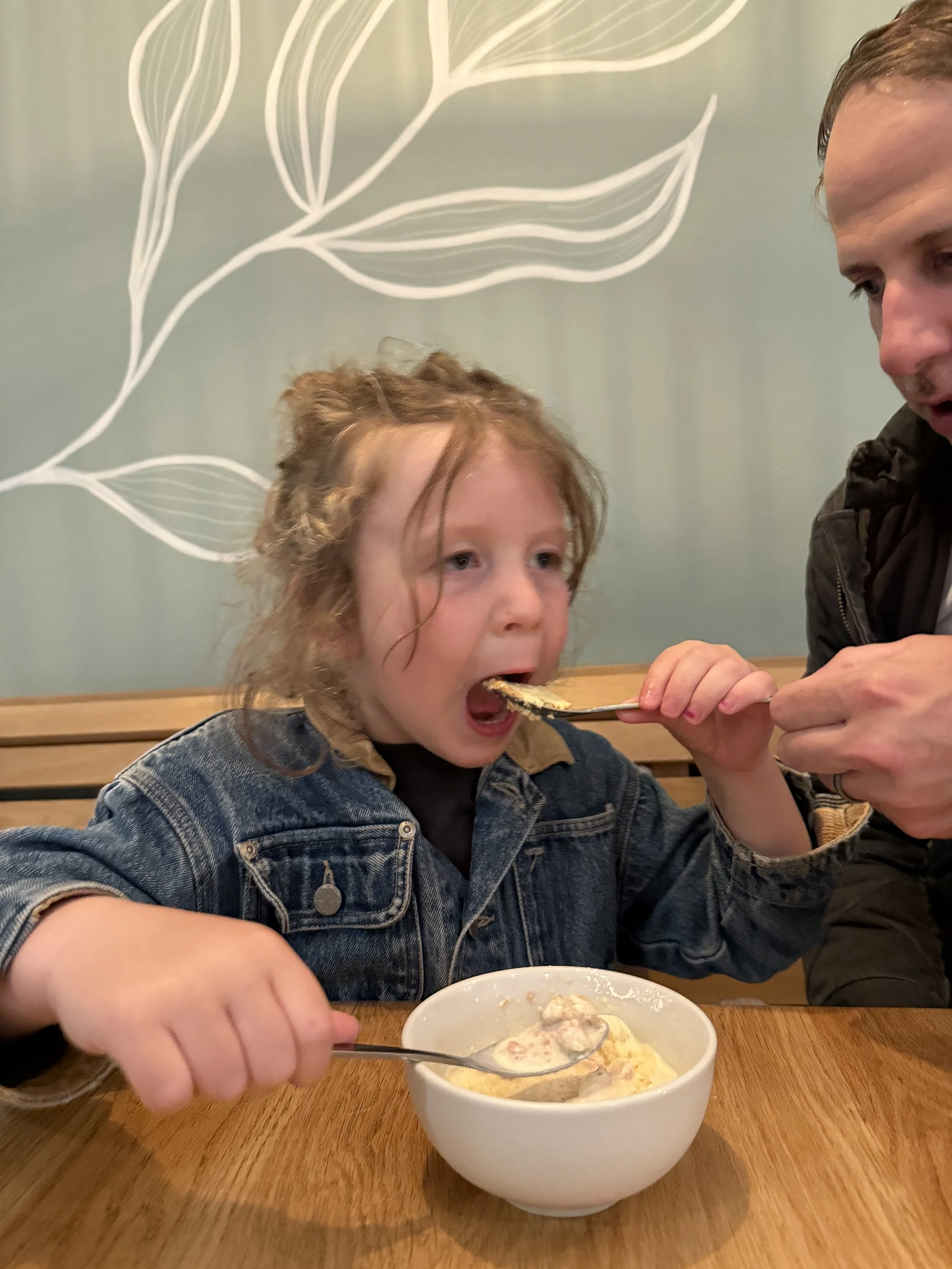 The kids were dying to “get the dinner where we order and it comes to the room and we eat in bed” again but we instead drove into town. Len was super energized after his nap and had a hard time sitting at the table and went to the bathroom no fewer than 5 times. The restroom was down a long corridor in the back of the building so it felt like an adventure to him.