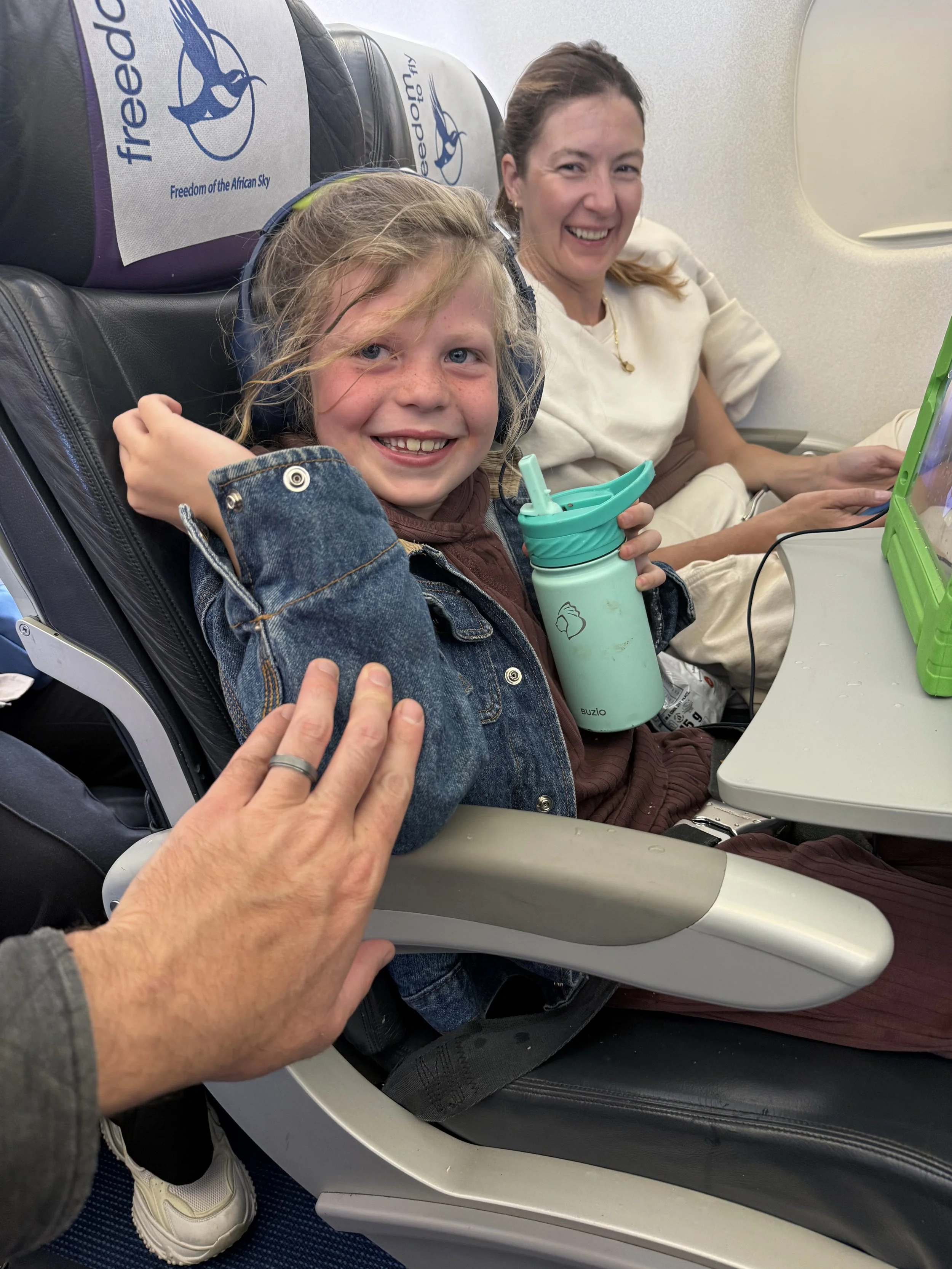 Ollie’s water bottle became pressurized when we took off so when he opened it midair it exploded water in his face which gave us a good laugh.