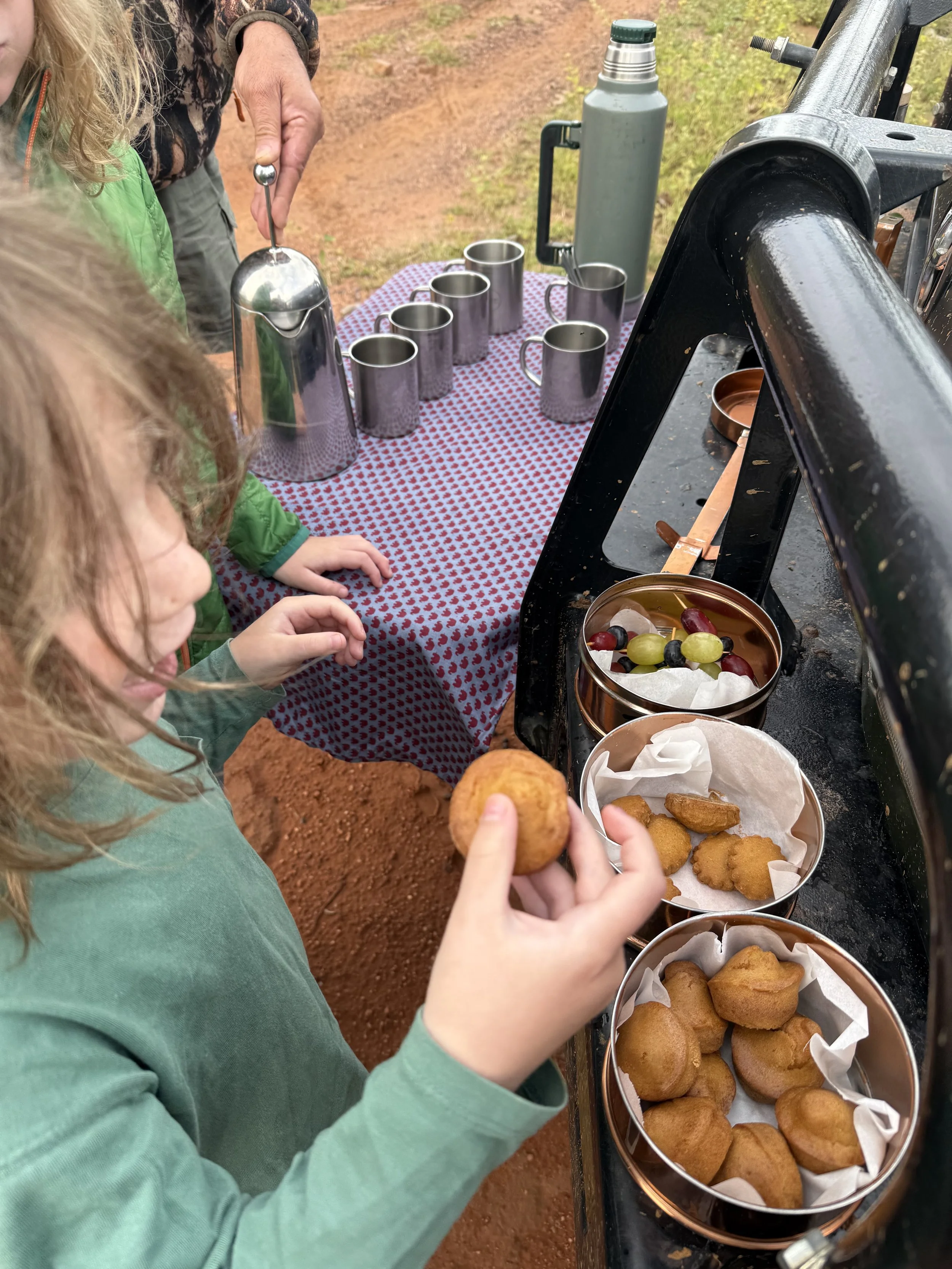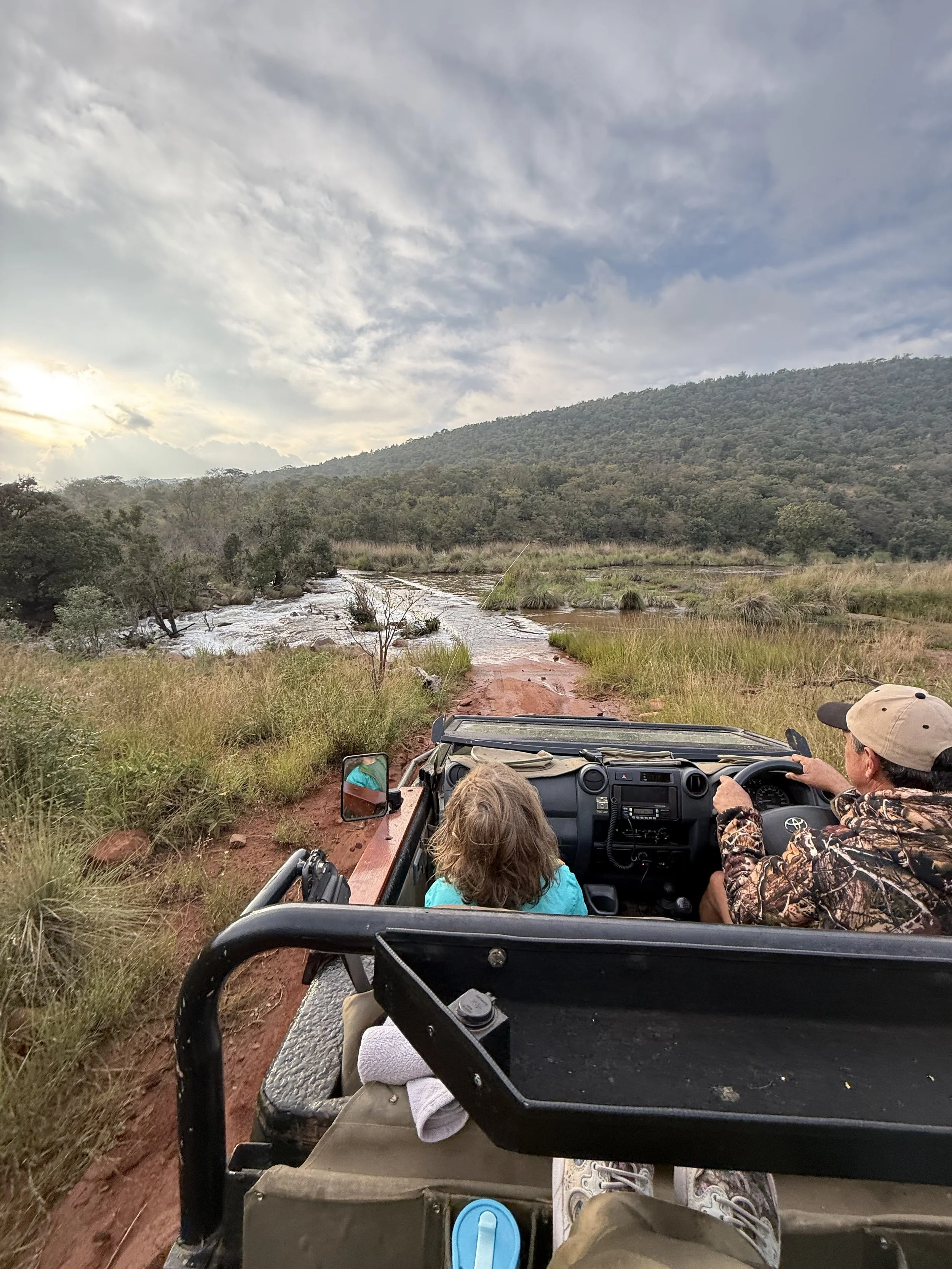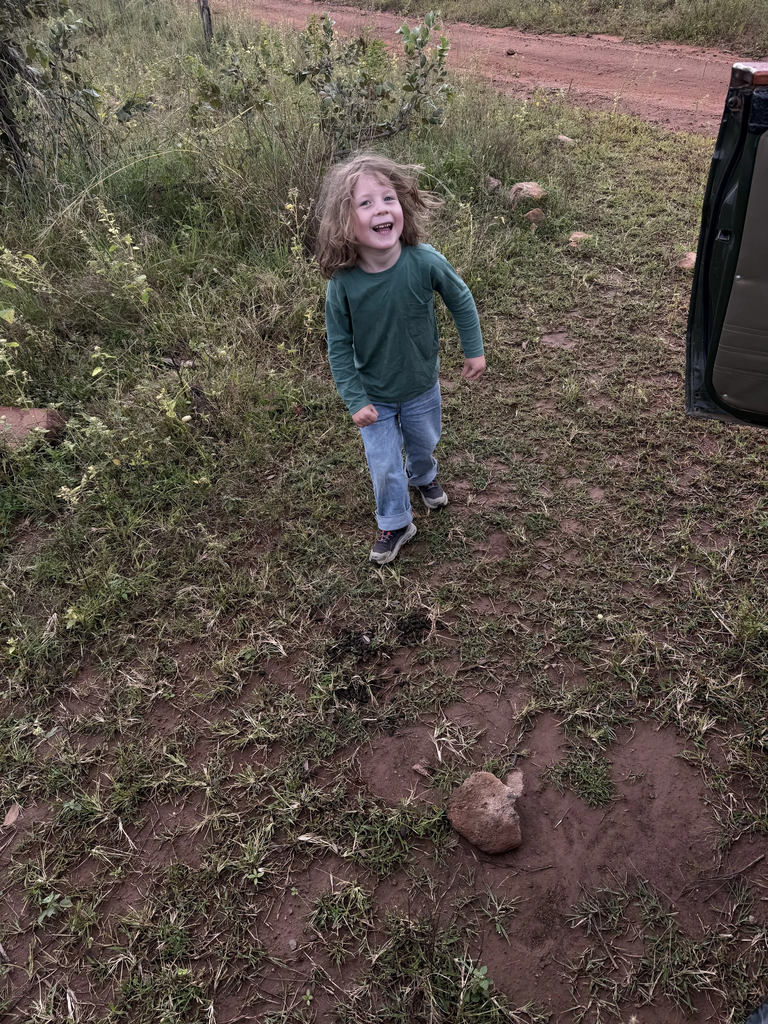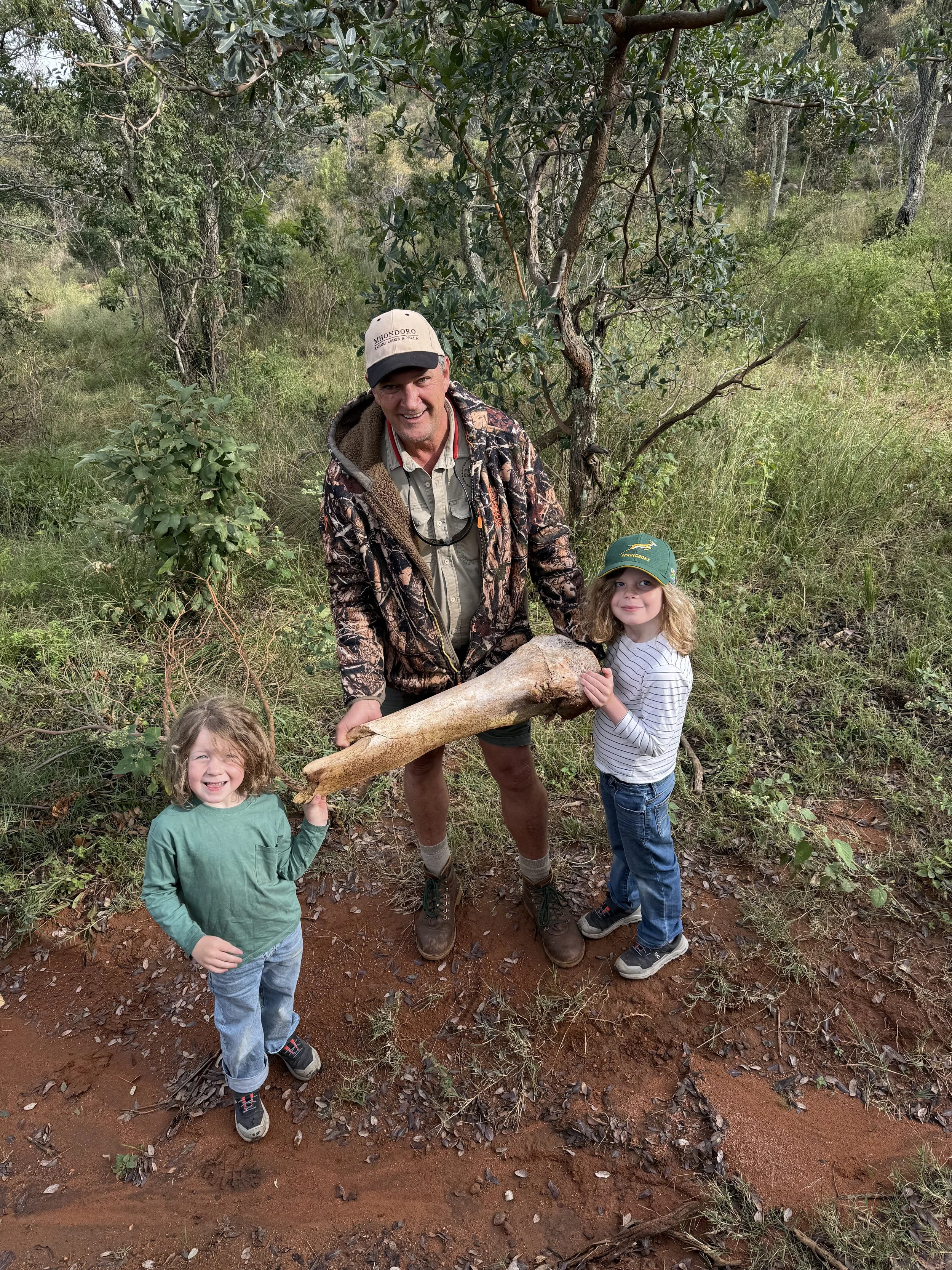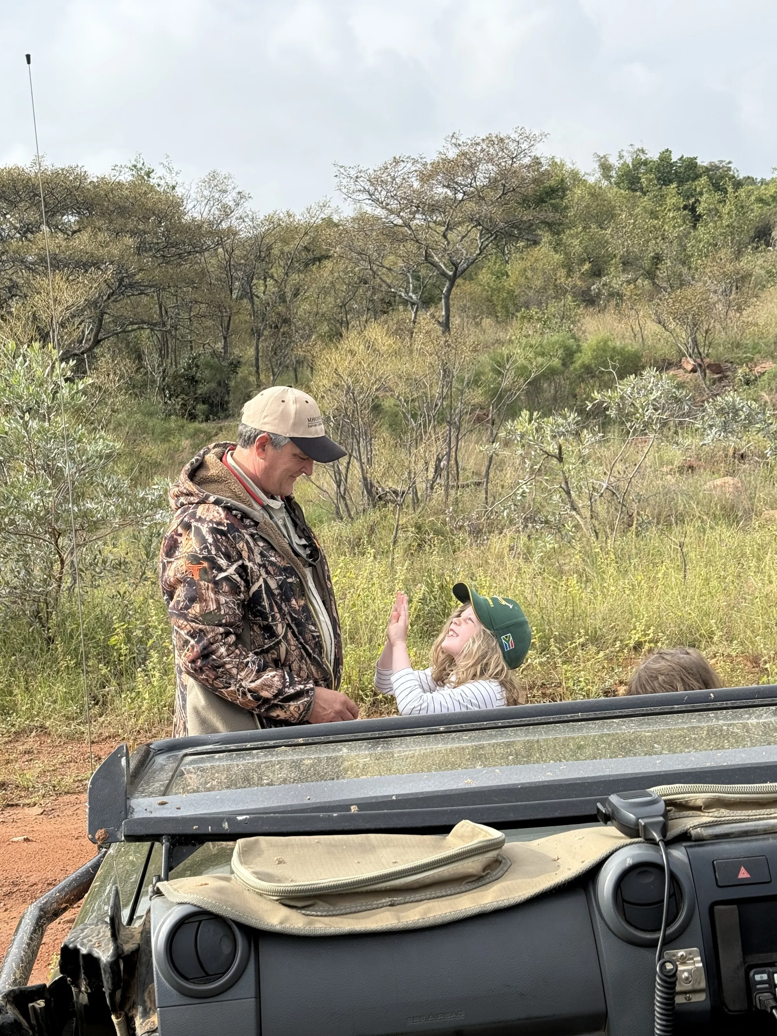 After a slow slow start for animal sightings, we saw a male kudu with a small limp. Joe told us a story of years ago he was working on a muddy reserve and they found a giraffe with 2 broken legs from being stuck in the mud. He shared that his team put the giraffe out of its misery which led to a conversation with Ollie about how sometimes suffering is worse that dying. This naturally led to an onslaught of additional questions that felt aggressive for both the time of day and for Ollie’s age, but we did our best.