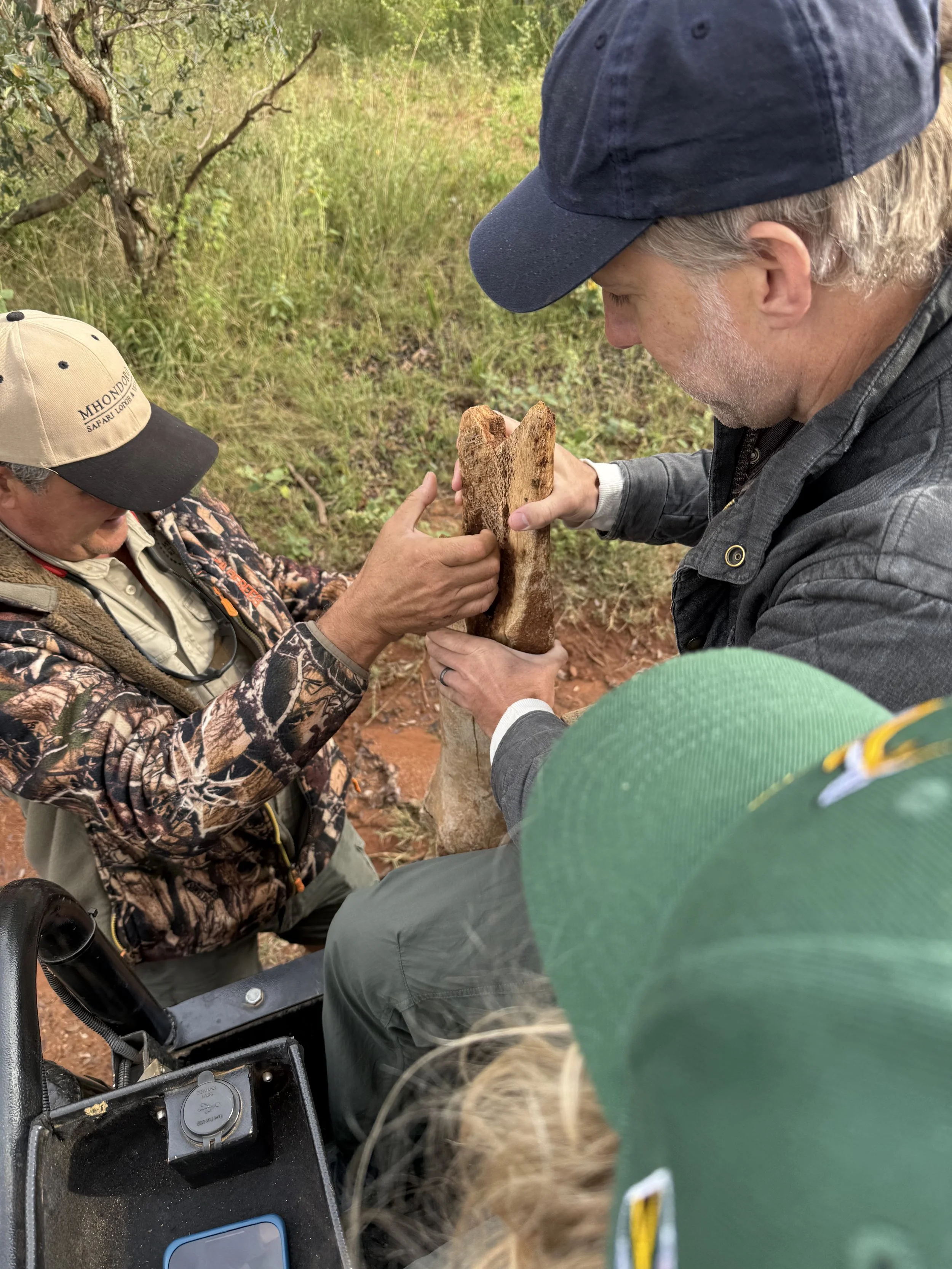 The most interesting sighting of the morning wasn’t an animal, but some bones. We spotted a piece of an elephant femur off the side of a trail and Joe then searched around for some other pieces. We found the other end of the femur and also the skull. Per Joe, the elephant had likely been dead for a year or more.