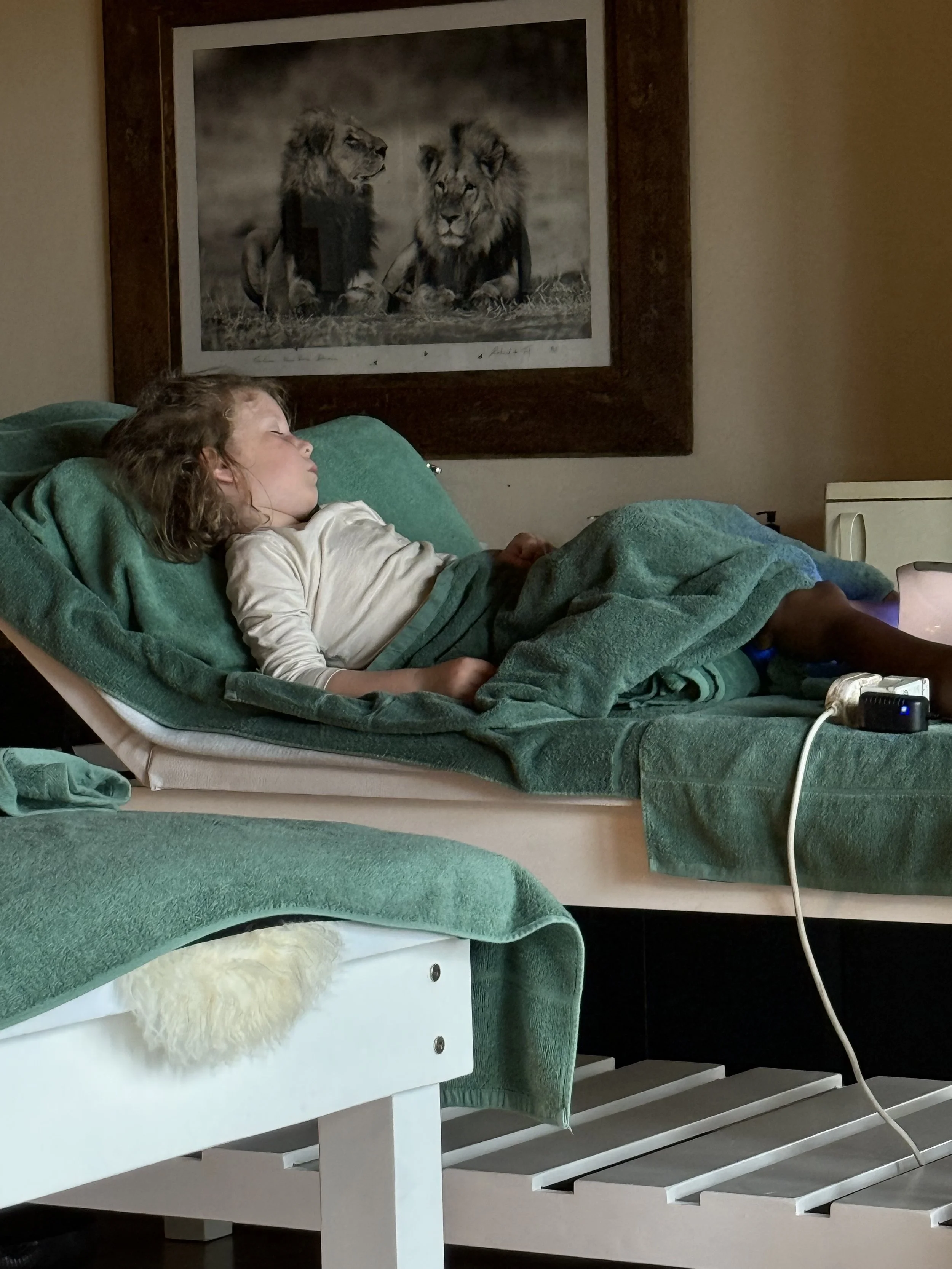 The boys and Kayleen finished getting their nails done just before we had to leave for our evening drive. Without his iPad Lenny feel asleep at the spa but only for 15 minutes. The boys have been called girls a few times here (the hair and now the nails) but they just correct the offender, “I’m just a boy with long hair” and they move on.