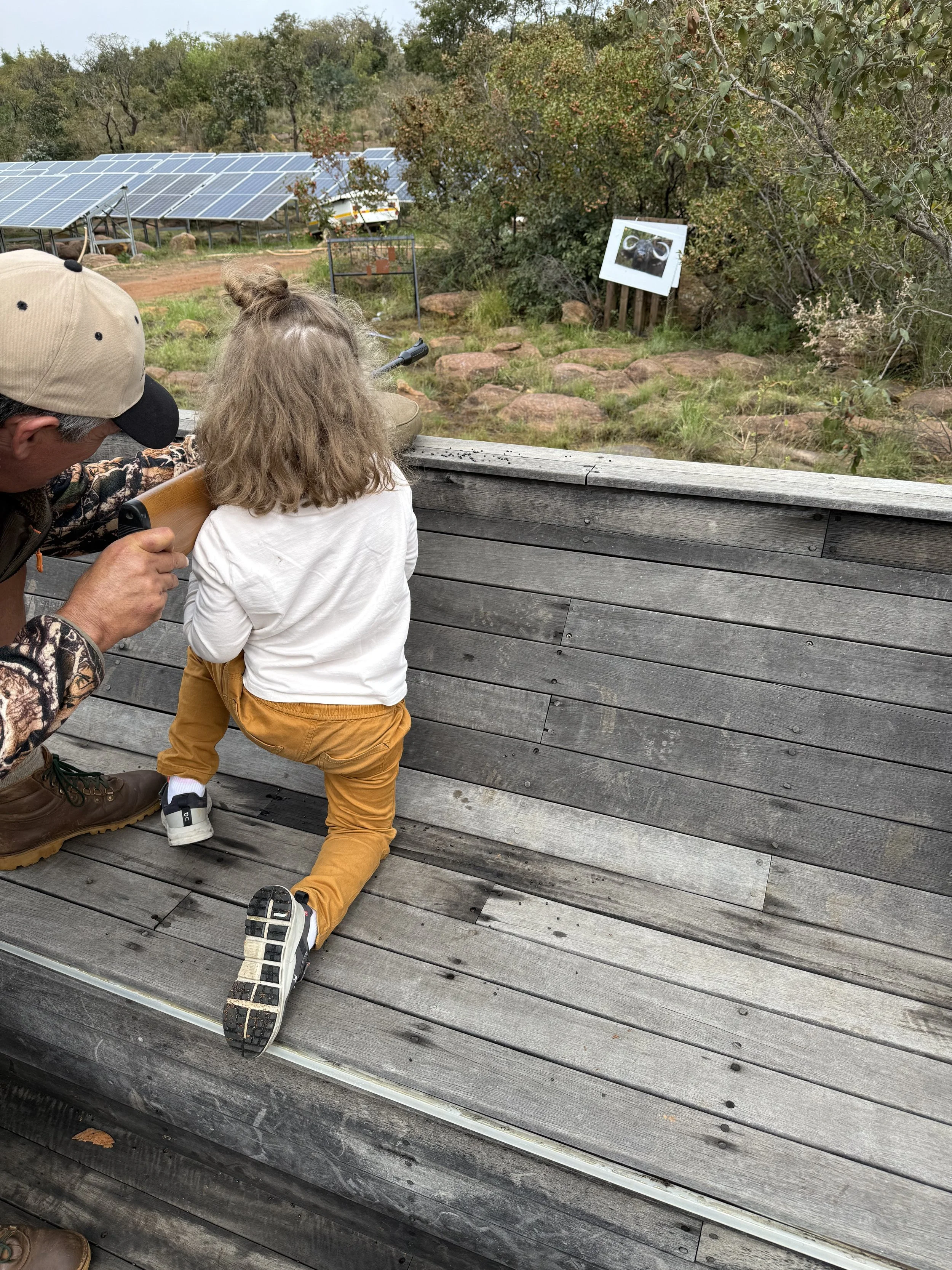 The pellet gun was a rifle sized gun that held one round at a time and was fired by a spring. I went with the boys and Joe to shoot at a paper buffalo target and hanging metal targets. Ollie was very into it and trying to aim with Joe’s help. Lenny was more about Joe aiming and letting him just pull the trigger, usually followed by a brag about how good of a shot he made.