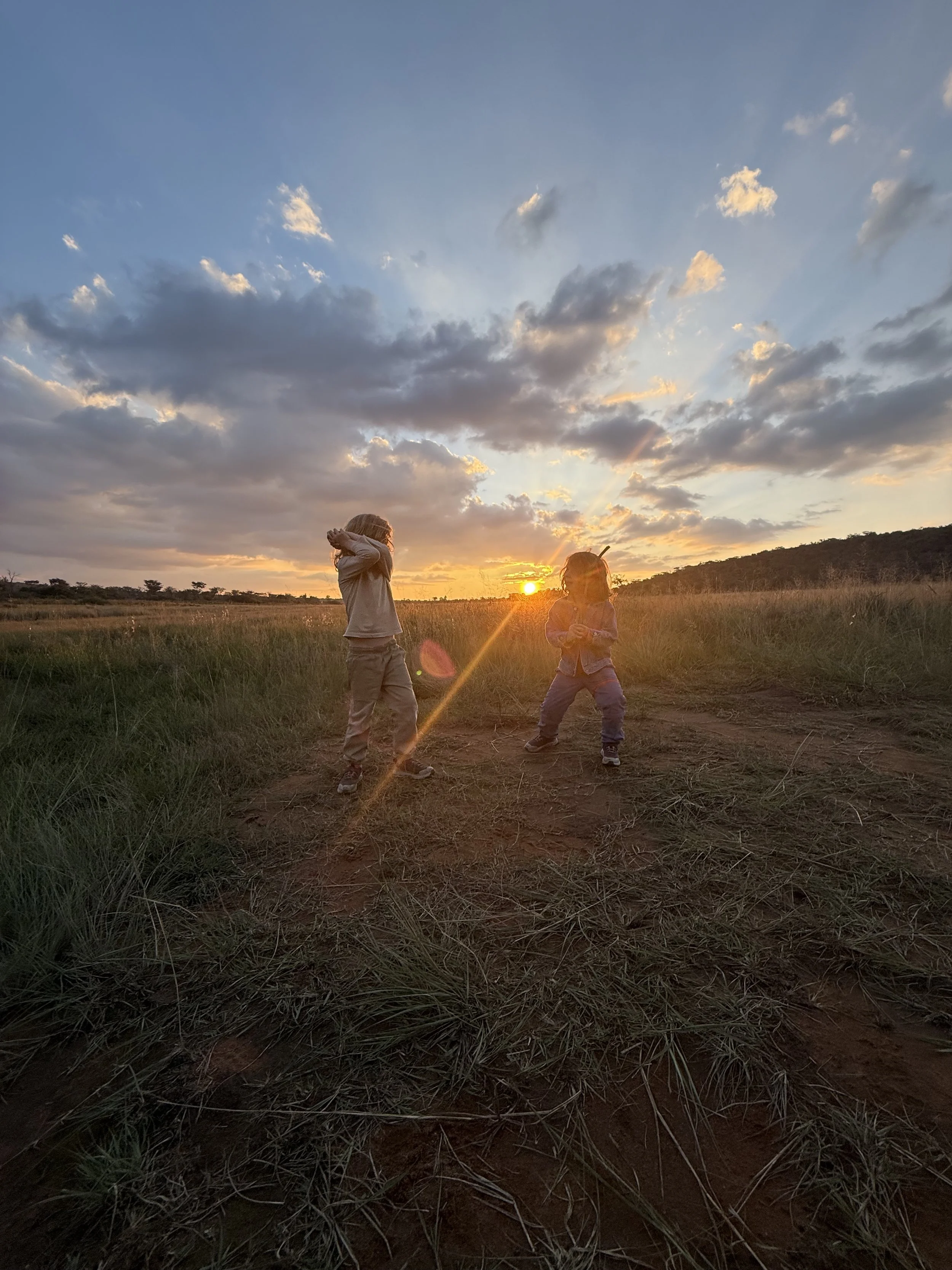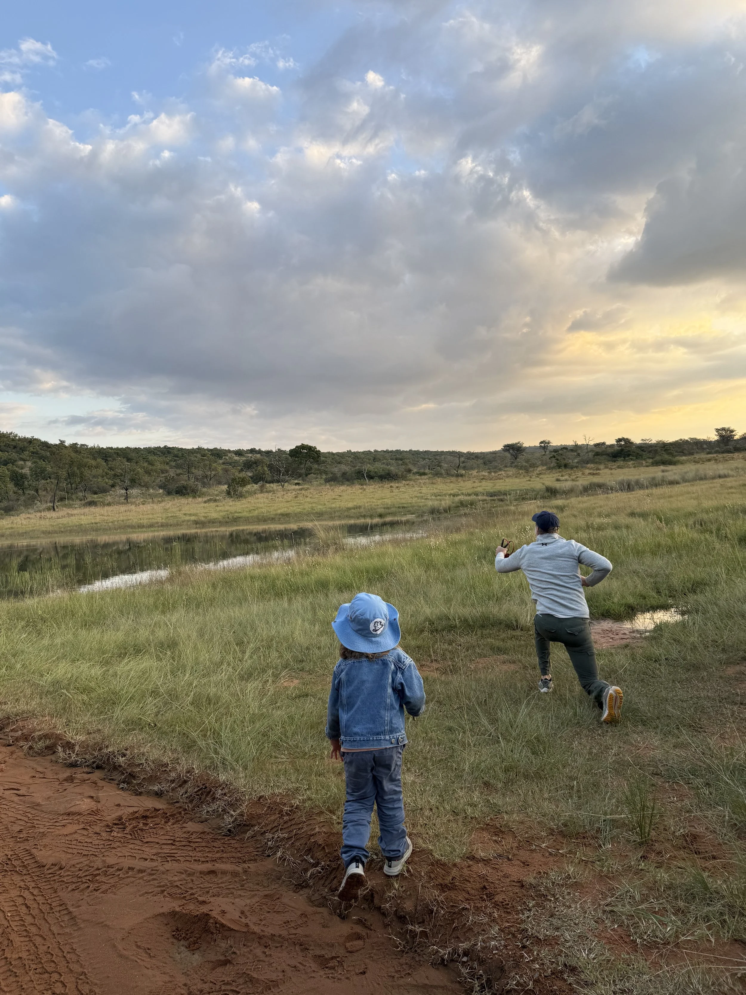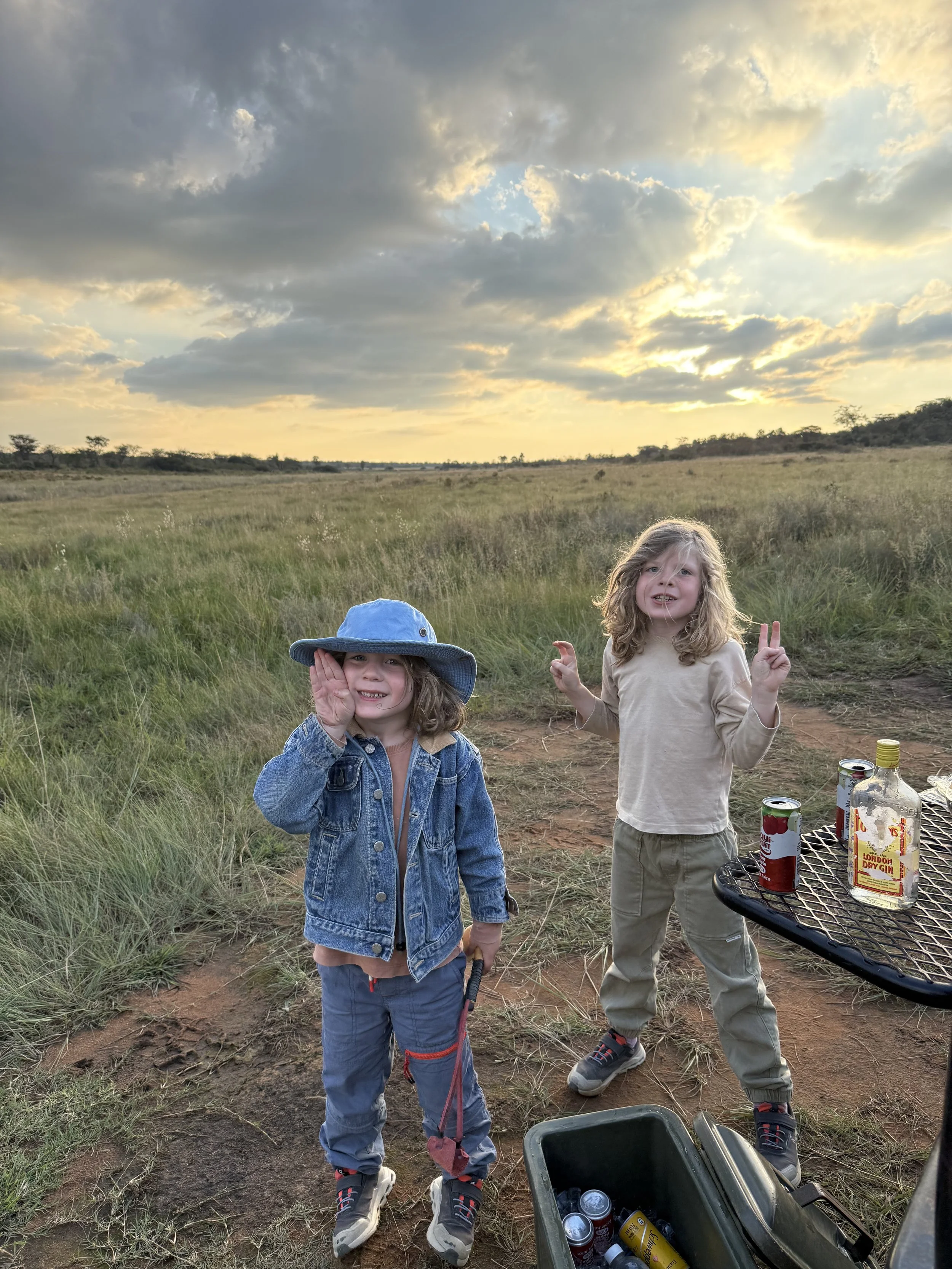 We stopped for our G&T sundowners and the boys played with the slingshots. Everyone, Joe included, took turns shooting them into and over a pond we stopped near. Once tired of this the boys pretended to be Pokemon where Kayleen and I were their trainers. We made up crazy names for their attacks and they would scream them at each other. Ollie has not stopped planning new attacks for tomorrow night since we stopped playing…