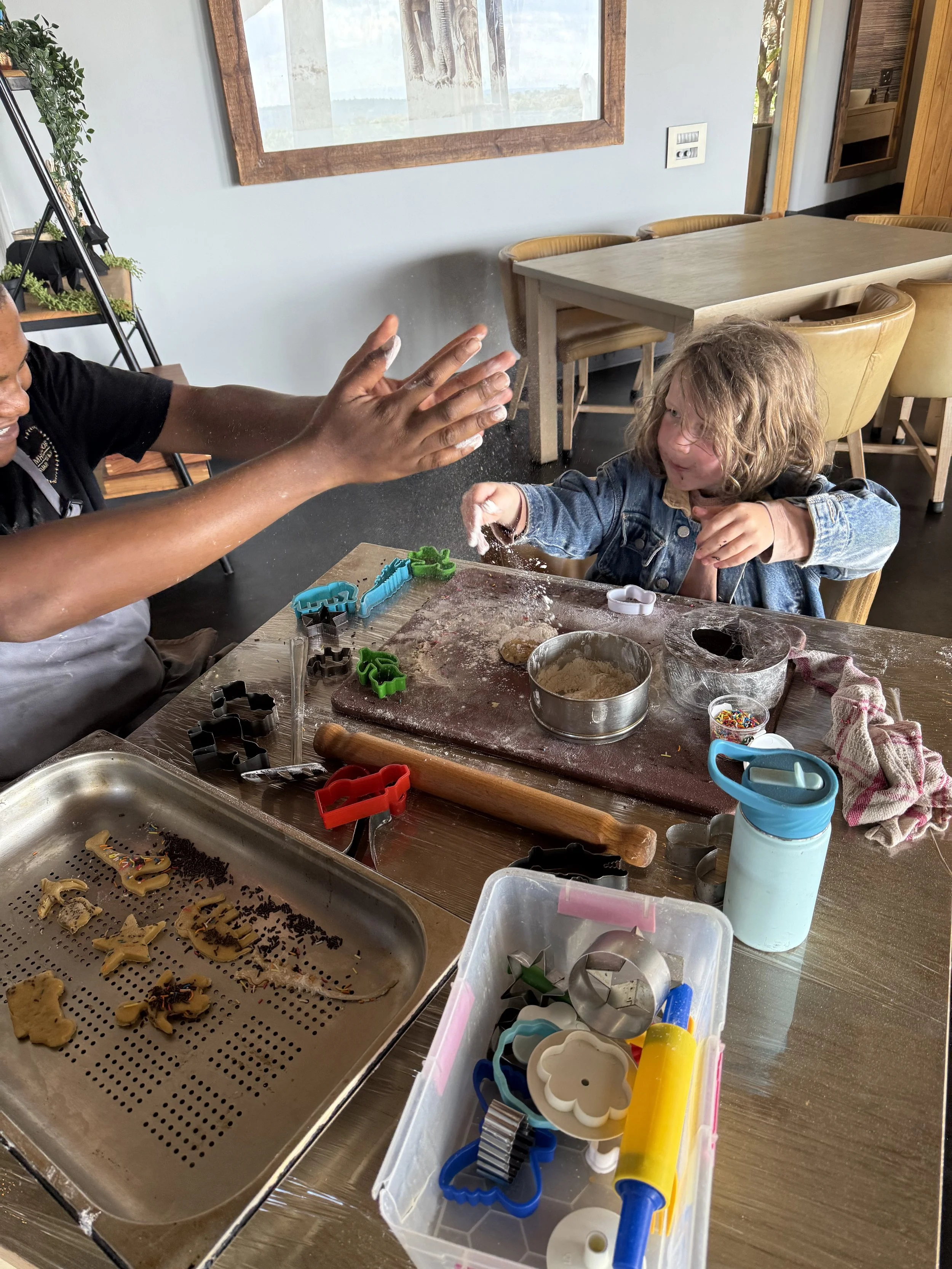 We stopped at a little crepe station the lodge had set up for everyone out in the bush. The boys both loved them as they were free to cover them in chocolate, caramel, and cinnamon/sugar. Lenny asked during the evening ride if we could stop for them again, thinking there is a person out in the wild turning out crepes at all hours.
