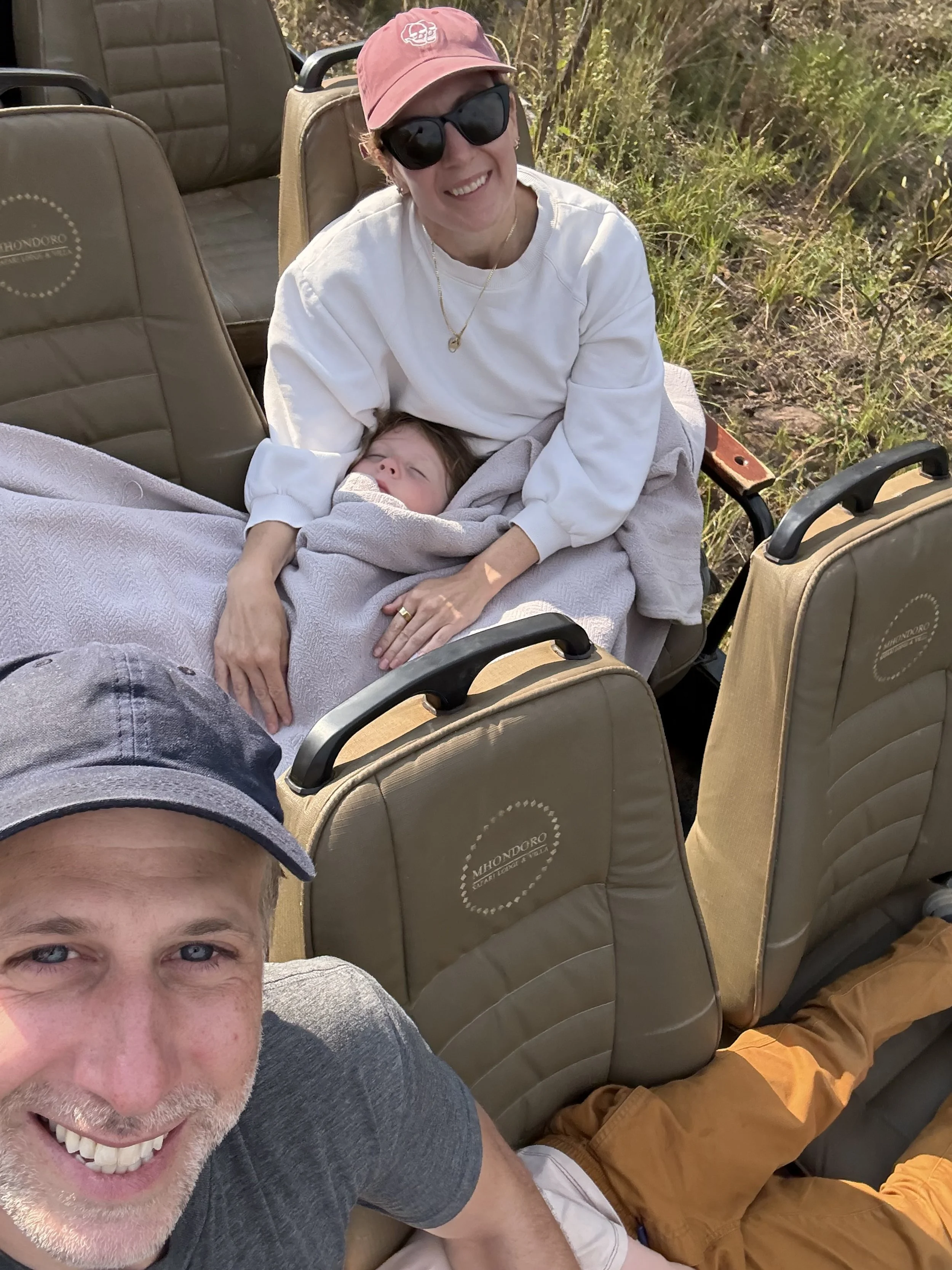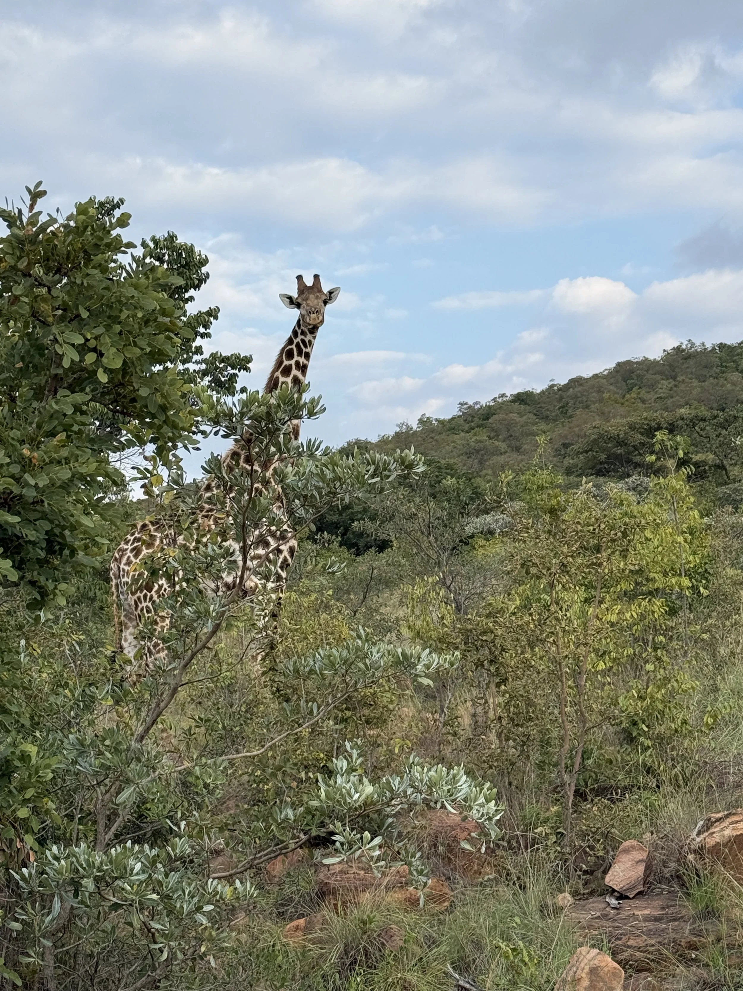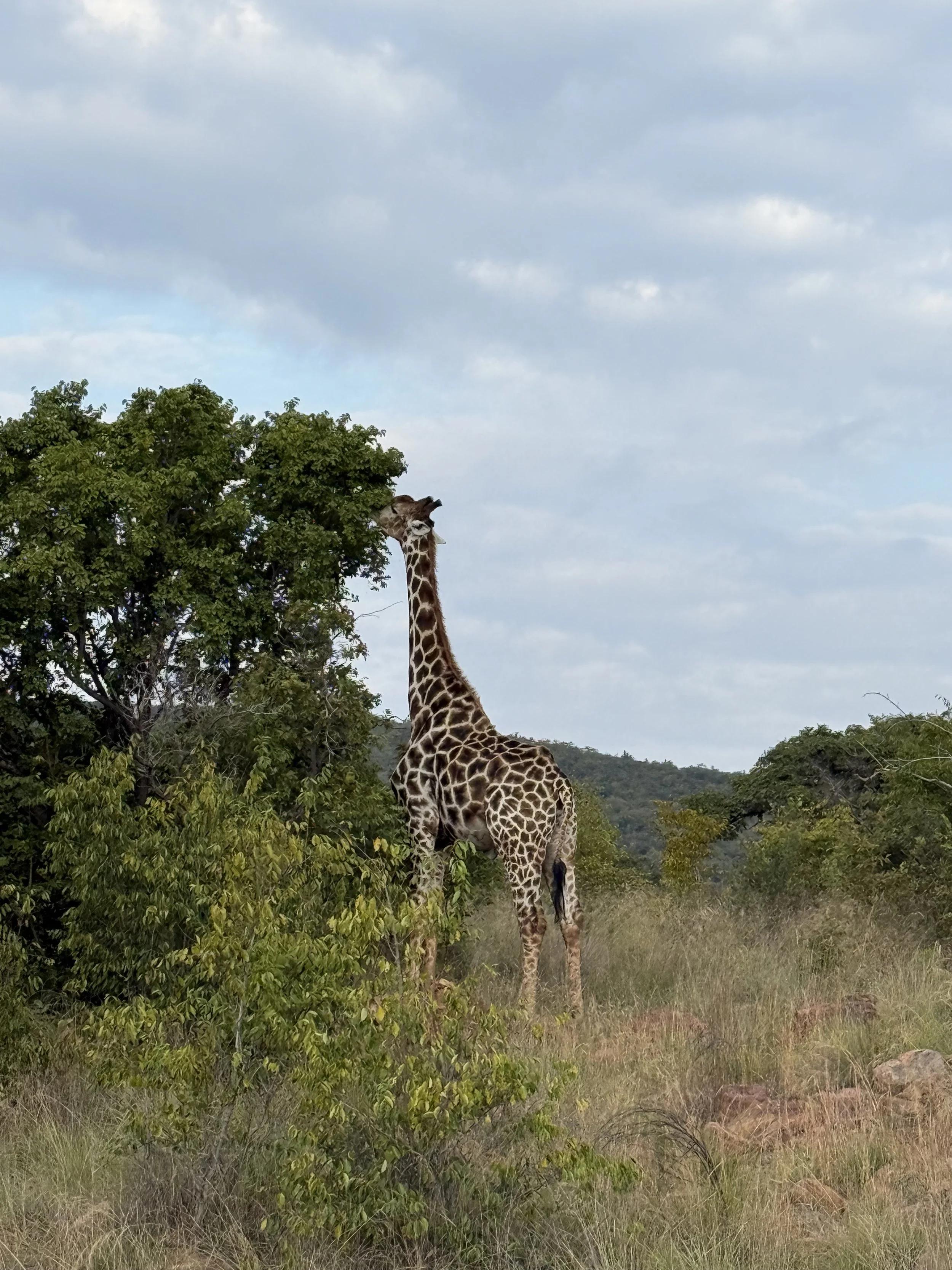 Len fell asleep just a few minutes into the drive. We had been hoping to see a giraffe as it was one of the last big animals on our list. Joe radioed to a bunch of guides and found one near our area on the reserve. We chased it for ~45 minutes before finding a path that allowed for a sighting. Lucky for Len, he woke up just in time.