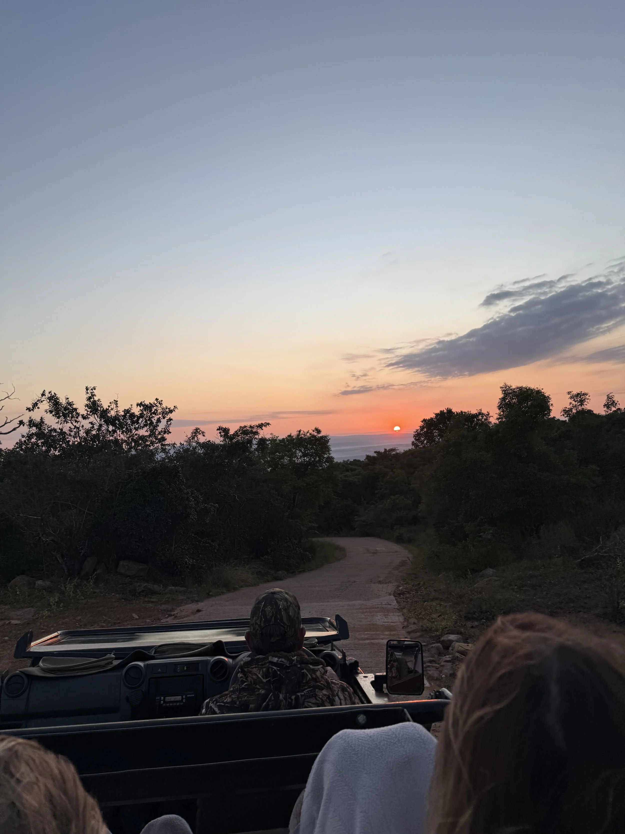 We had a nice sunrise on our drive out and got to see a variety of animals waking up to start their day. Two rhinos were still laying down sleeping, almost on top of each other, as we drove by. Even these giant animals like to cuddle.