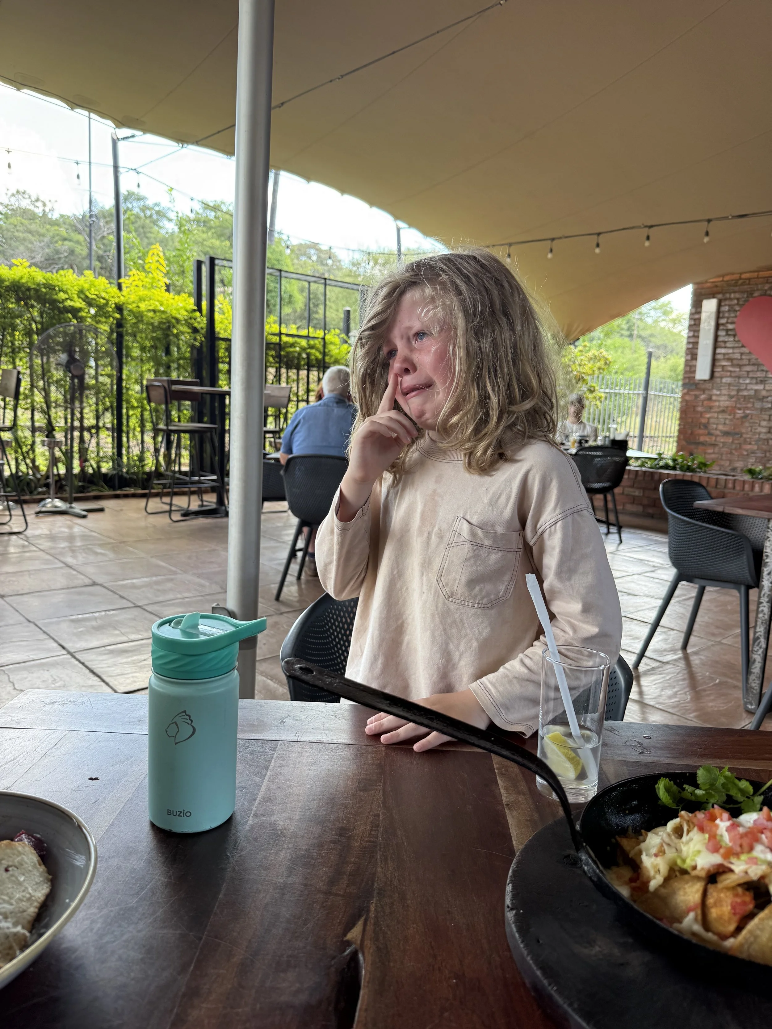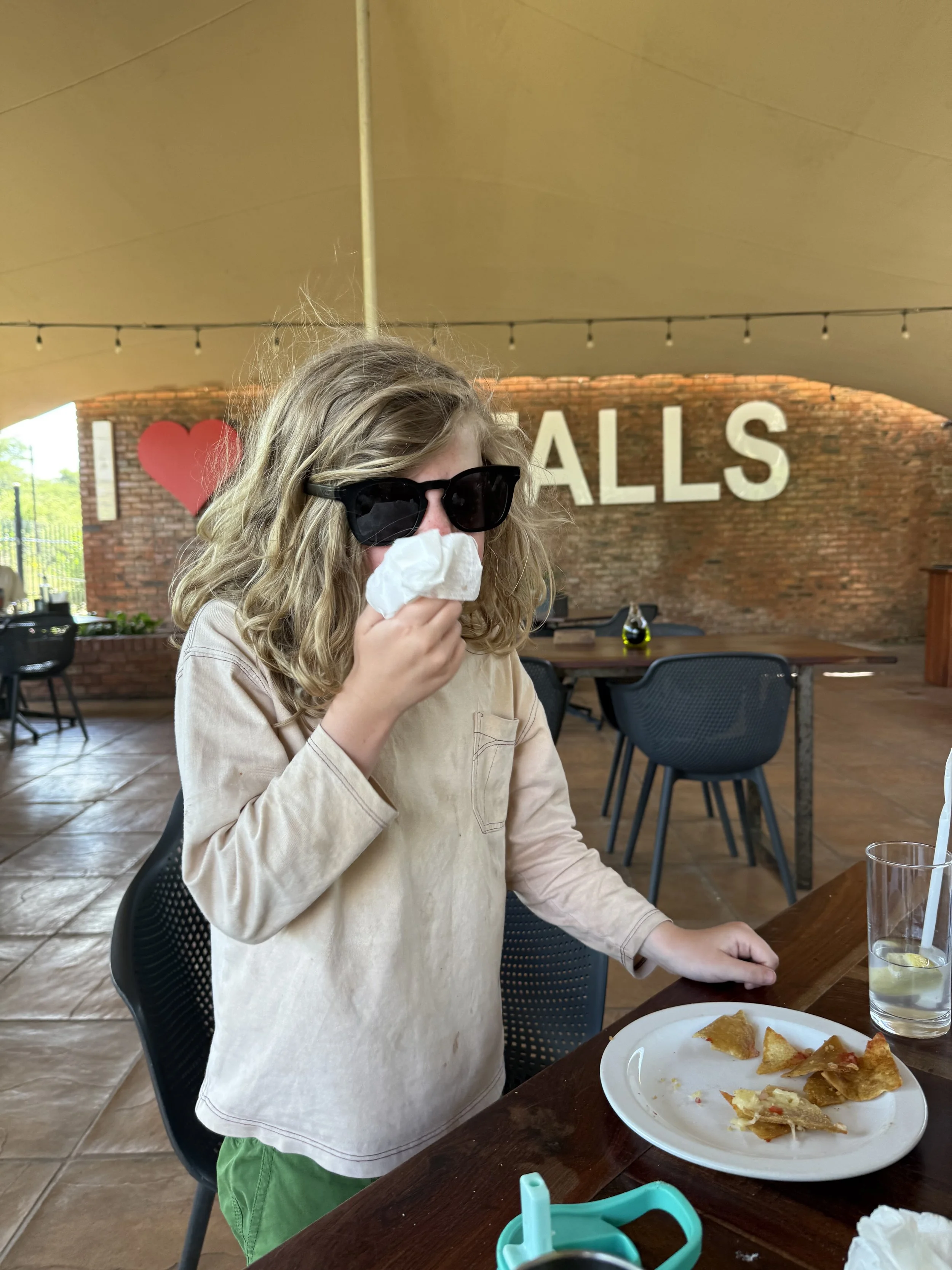 Ollie proceeded to run laps around the restaurant while crying, moaning, and sneezing. We kept having him suck water up his noise to try and flush it out which would lead to a lot more boogers and sneezing. Ollie was worried that the vinegar was going to go to his brain and mess it up which Kayleen assured him would not happen. It was hard to comfort him and address all his concerns when we were laughing so much. Kayleen held it together far better then I did.