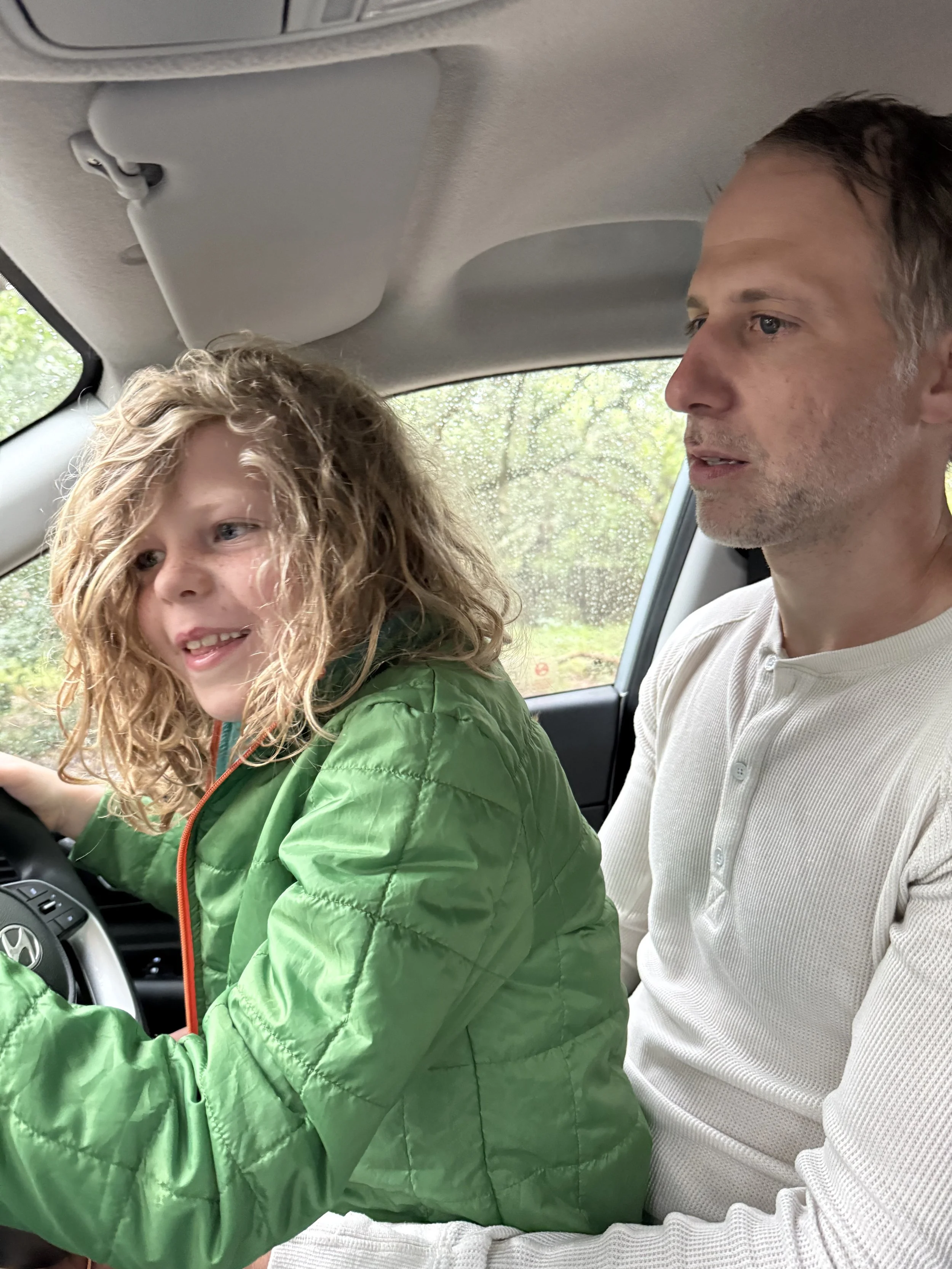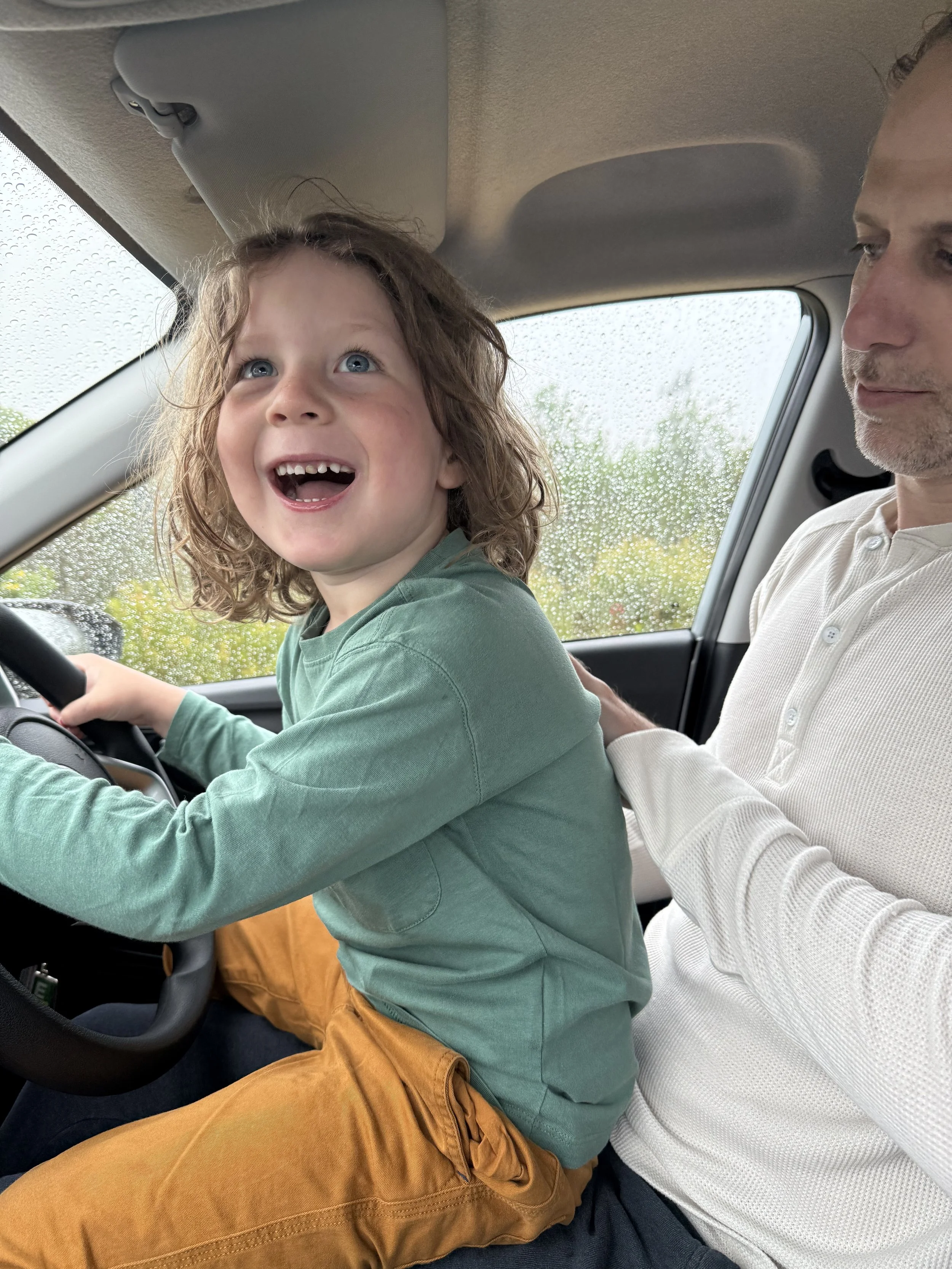 Driving from the clubhouse to our cottage has been a thrill for both boys, as you can see from their faces. Once we get sunny days and we start walking I’m sure they will be disappointed but at least the rain caused some excitement.