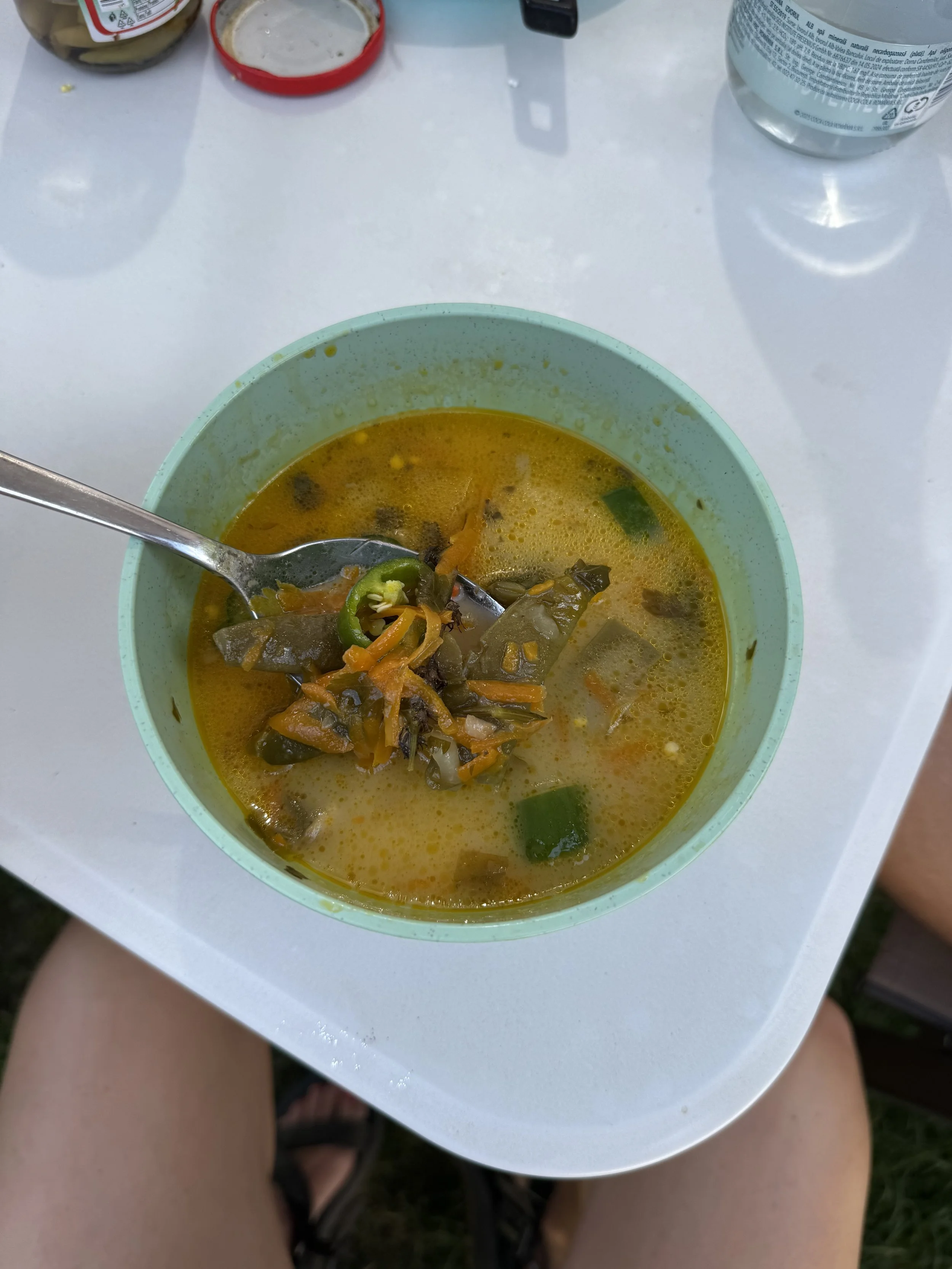 We returned to the house where Mia had made bean soup with fresh beans from their garden. Even though we were all stuffed we had a bowl and it was great, then Mihai brought out the moonshine. It was made by his grandfather and Mihai has a small stockpile of it that was meant for his wedding but since he never had a wedding in Romania, he still has it. It was plum moonshine and I expected it to be terrible but was wrong. It was smooth and had a fruity aftertaste that was pleasant, though I would not have been able to guess it was plum.