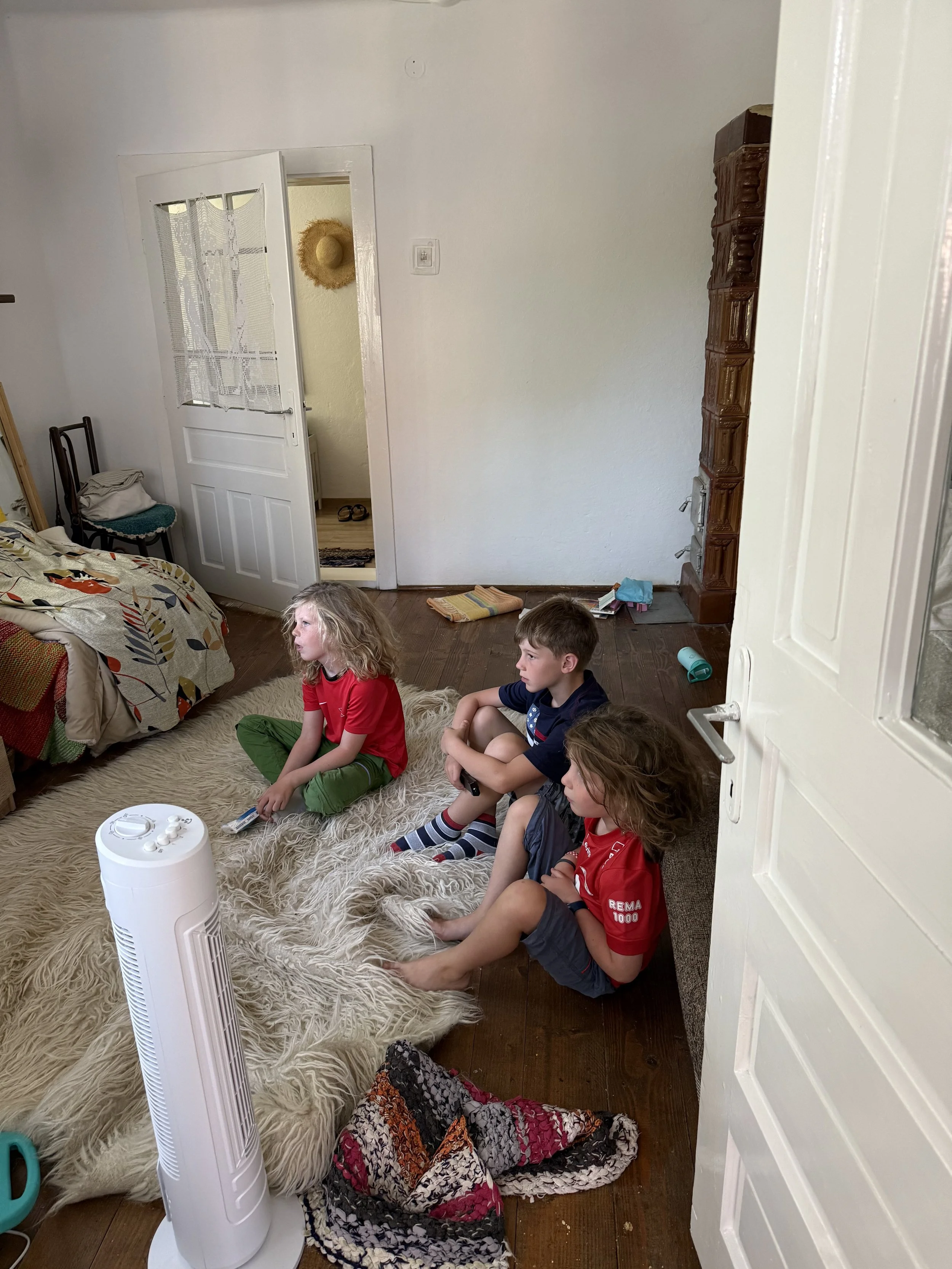 They eventually got up close to 10AM and we made our way to Mihai’s family house. We had breakfast outside and Bună was eager to feed the boys anything they might be willing to eat. Shortly after breakfast we decided to drive up the mountain in search of blackberries and plums. The boys, Ollie, Lenny, and Tudor, opted to stay back at the house with Bună to watch TV and relax.