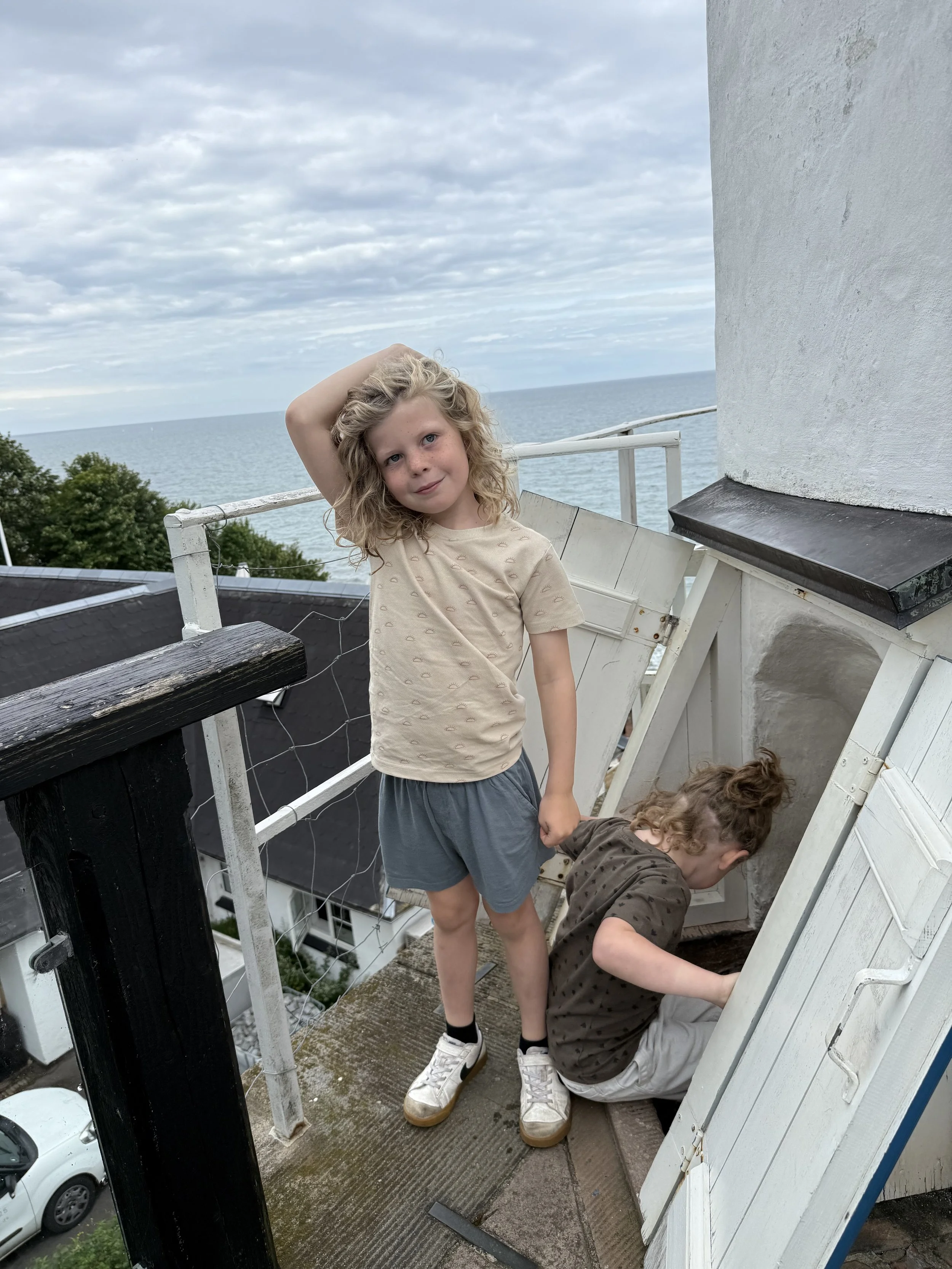 We then walked to the larger Nakkehoved lighthouse which was also home to the museum. The receptionist encouraged us to walk through the museum before climbing the lighthouse steps, but that was an impossible ask with the boys. We made our way to the top (128 steps) and had a great view of a town to the west called Gilleleje. We snapped a few pictures before the boys started running around and playing tag by the fairly low railing and we knew it was time to descend. Len had his eye on a lighthouse figurine in the giftshop but ended up with a poster that highlighted some of Denmark’s most famous lighthouses including the one we just climbed. He squealed with delight a few times in the afternoon, “I just love my lighthouse poster so much!” I told him we can hang it in his room at home and he asked, “my crib room or the Ollie room?” Since he sleeps in Ollie’s room 99% of the time when we’re home, hes confused over which is actually his bedroom. The boys enjoyed popsicles that Meme bought them while we walked briefly through the lighthouse museum.