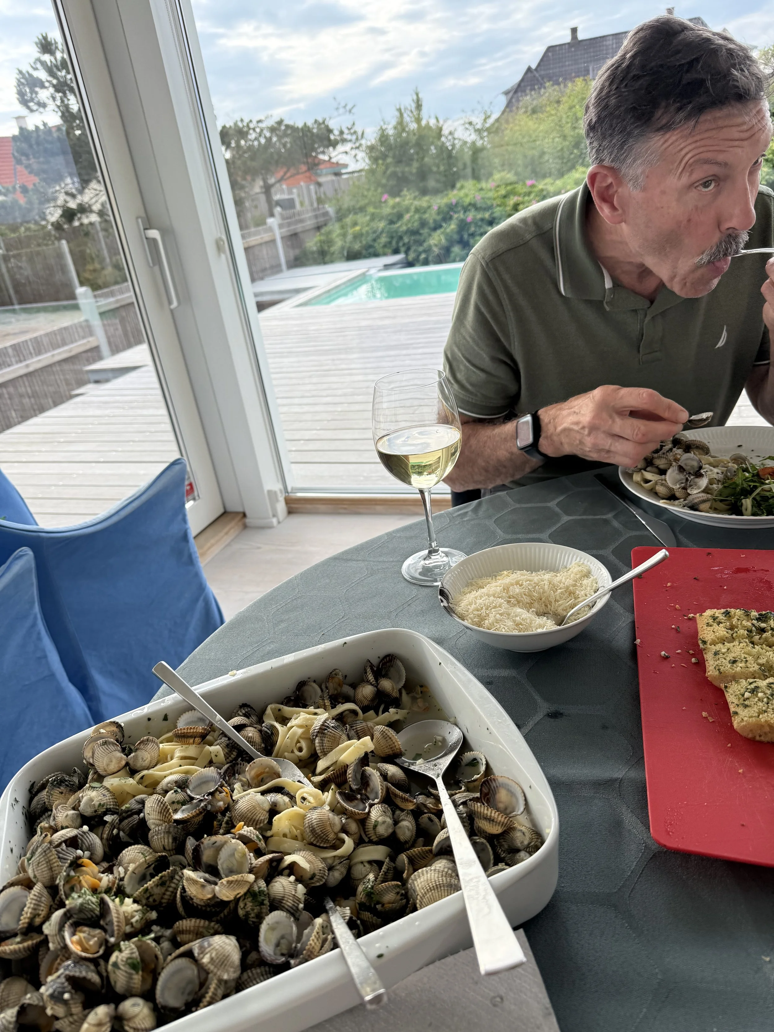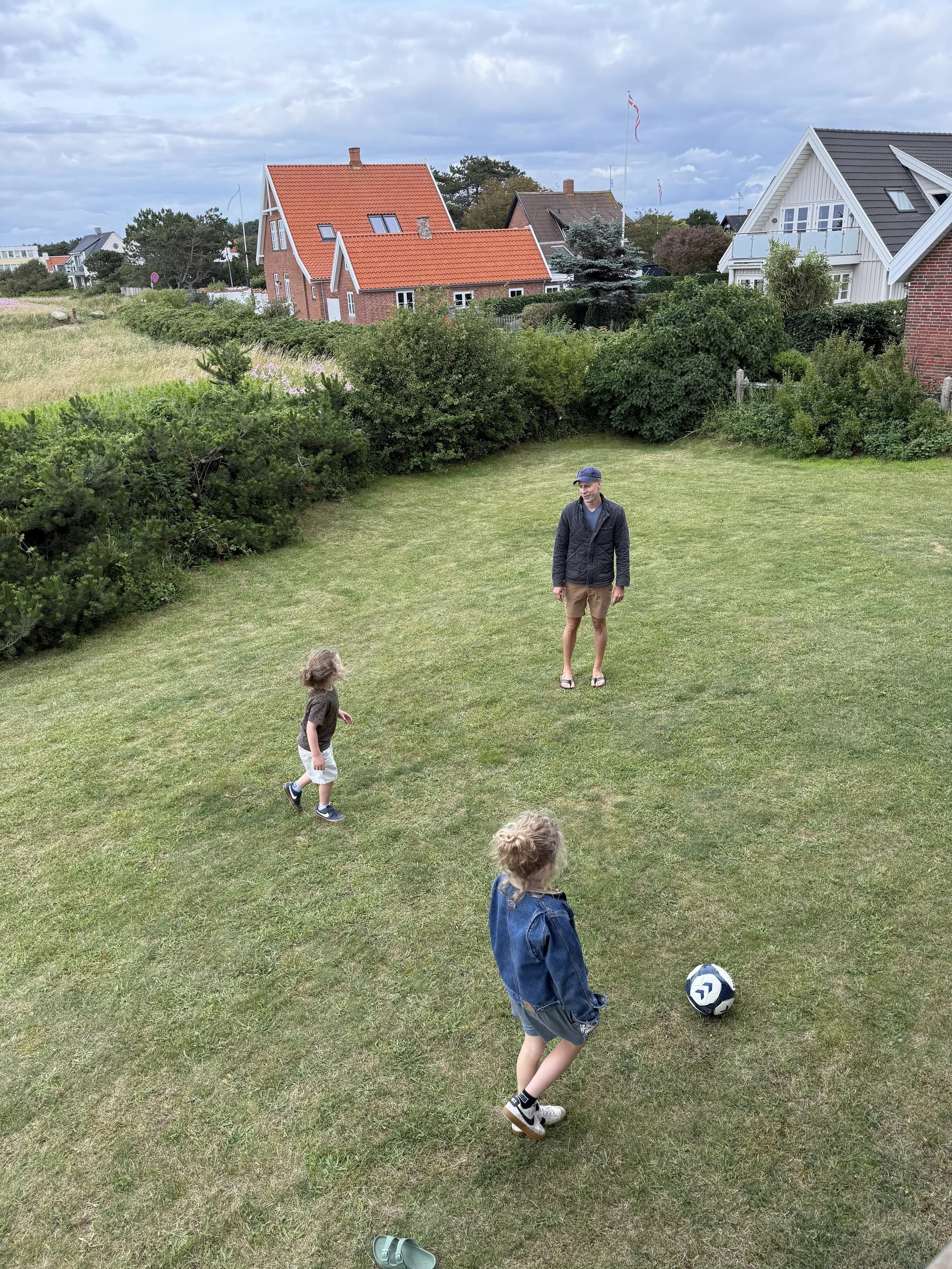 Back at the house in Lieseleje, Kyle and the boys played soccer in the yard while me and my parents started on dinner. The boys took turns playing the goalie and Ollie’s rough day continued when we took a ball to the face and then the privates. He shook off these hits, though, and demanded to keep playing. Len tried to keep up and even came up with a secret play– he told Kyle to pretend that he saw a rare Pokemon on his phone to lure Ollie out of the goalie box so that Len could easily kick in the ball. However, when Kyle actioned the plan, Len forgot all about it and ran over to Kyle to check out the fake Pokemon instead of kicking in the ball.