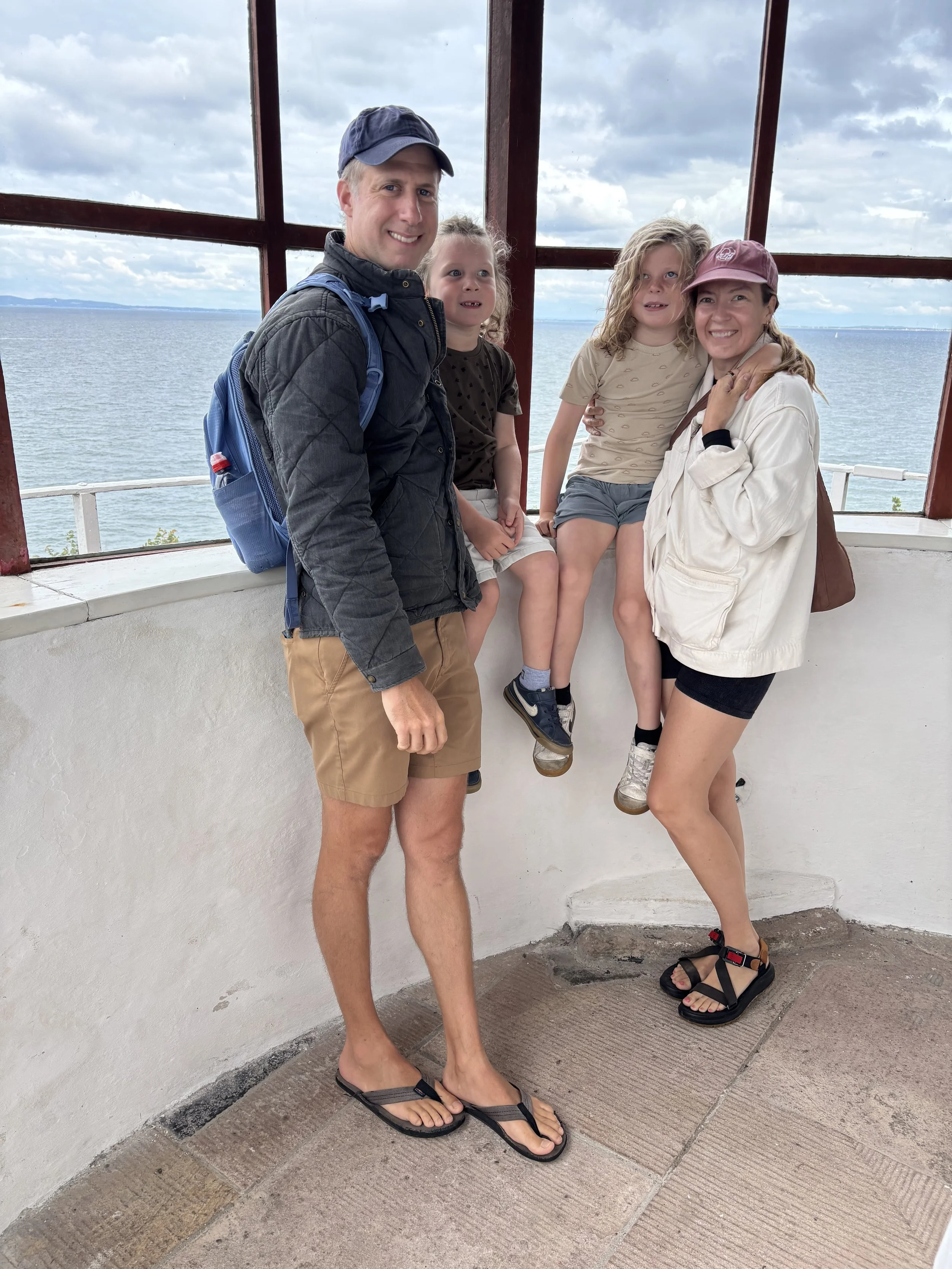 The Eastern lighthouse was just ~ 2 stories high but built on a cliff near the sea. Ollie counted just ~29 steps to the top! We looked across the sea and were easily able to see Sweden– we knew Copenhagen was super close to Sweden but didn’t realize North Zealand was this close too. My and Kyle’s phones sent us the, “welcome to Sweden!” texts.