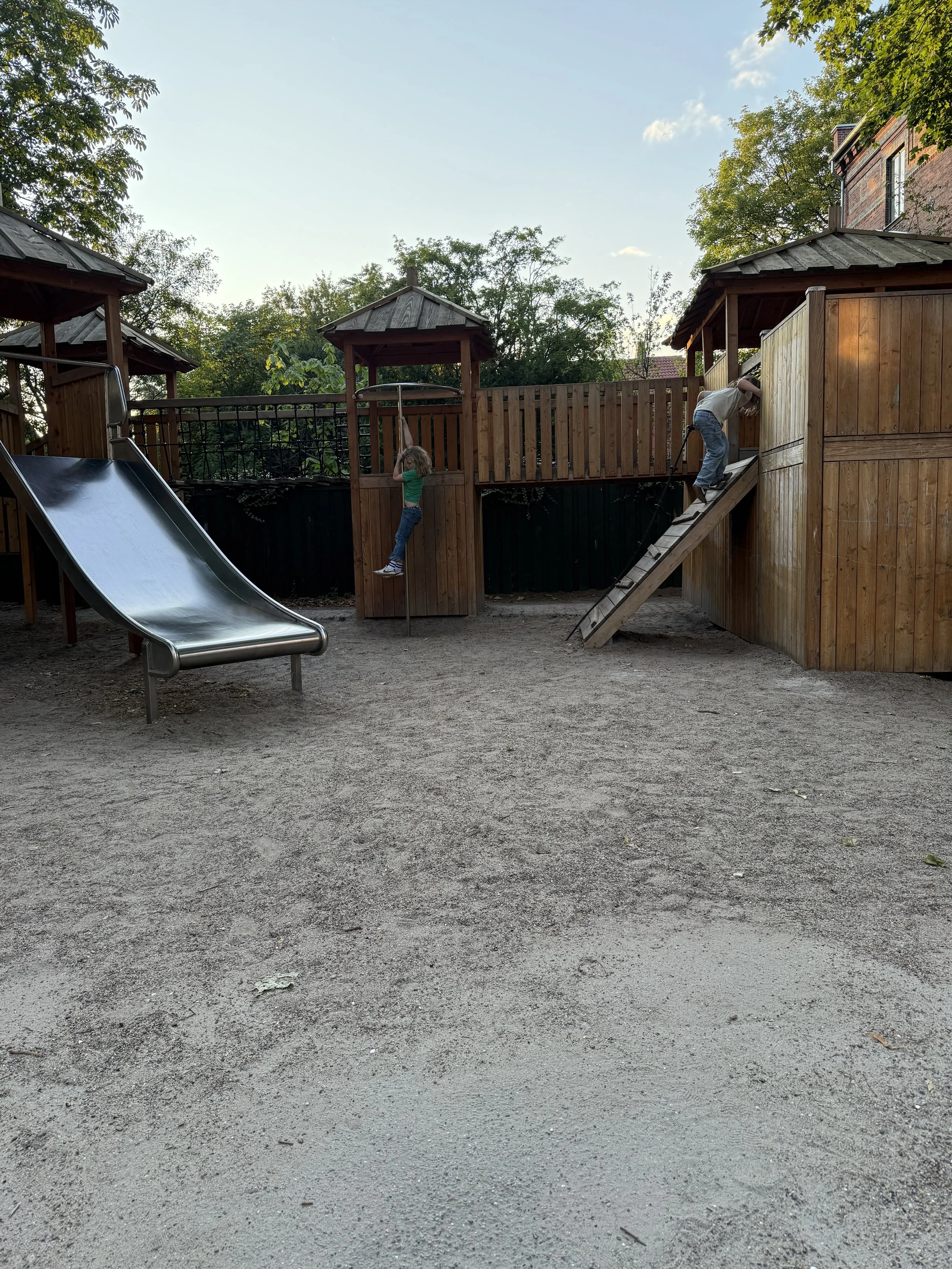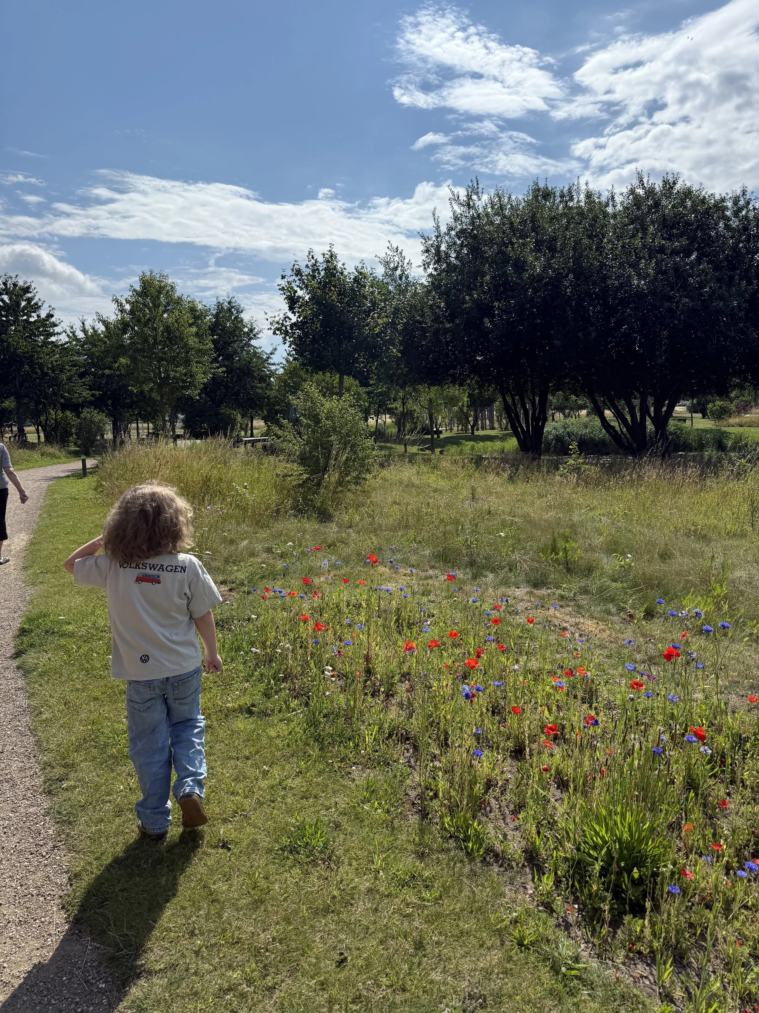 We had wanted to go to the Louisiana museum but were bummed to learn it was closed on Mondays. Instead we decided to stop at a playground we had flagged en route to one of the Dambo trolls since we had a few hours before we could check into our Copenhagen apartment. Google maps has failed us a few times in Denmark and it gave us issues once again in trying to find this playground. The navigation took us to a suburb where we spotted a small playground and assumed it had to be the one we were looking for. We started to wander around and realized it was actually a school/daycare and there was even an unattended baby in a pram outside one of the doors. We thought it was weird that there was a baby, now awake, left entirely alone but I remembered reading about Nordic parents who let babies sleep outside in the winter so perhaps they do the same in summer as well?