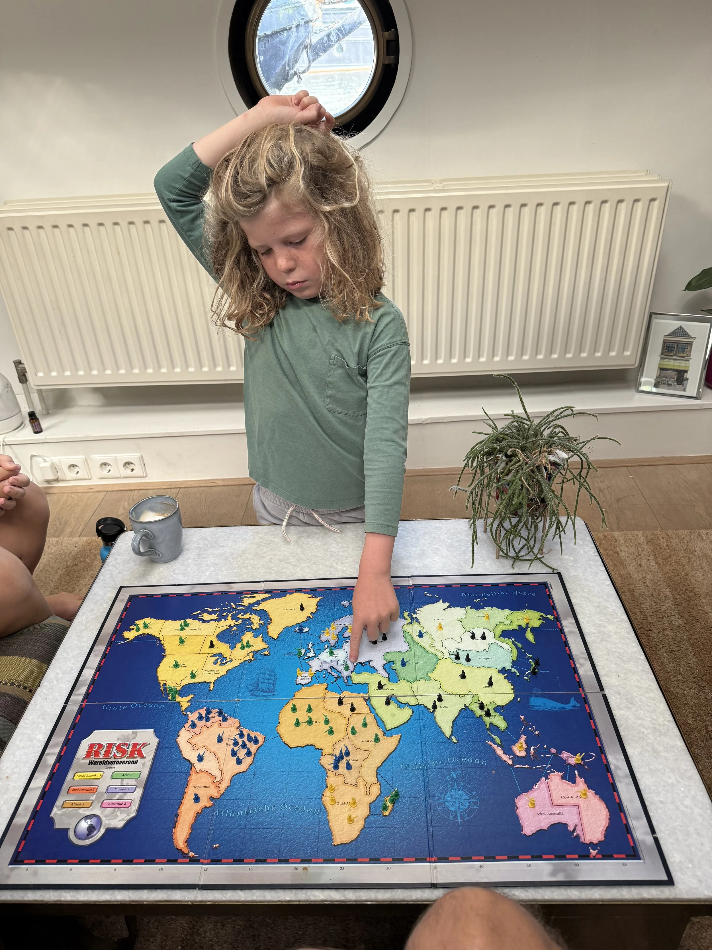 We had a slow morning with breakfast and some homeschool on the boat. We also fit in a few rounds of Risk as both boys were pleading to play a before we headed out for the day. Our Risk time was cut short when Ollie accidentally dropped his dice on the board and scattered a few soldiers across Africa.