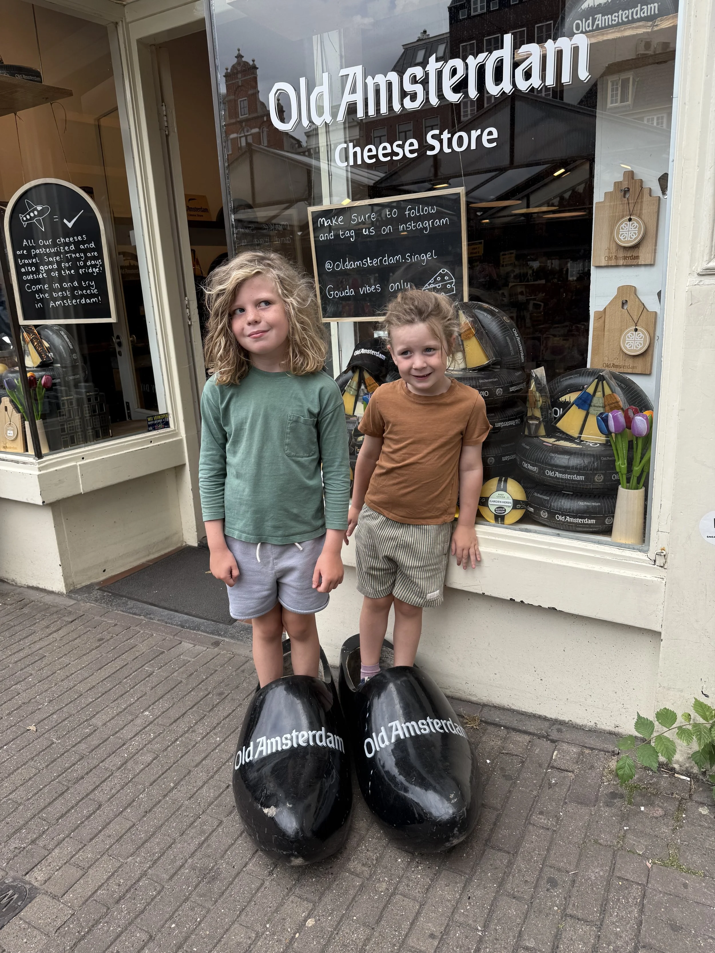 After we all met back up for lunch at the big boat, me and Bri set off on a bike adventure. We biked all over town including through the red light district and eventually landed on getting pedicures to escape the heat for a bit. Meanwhile, Kyle took the boys out on the bucket bike to check out the tulip market. They were on the hunt for some rare flowers to bring back home, but unfortunately most tulip bulbs were not allowed to be shipped back to the states. He only found a few small bags of tulip bulbs that had been inspected and cleared to be mailed. We’re crossing our fingers that the variety bag he picked up contains at least a few black tulips. They also got caught in a brief rainstorm on the bike ride back.