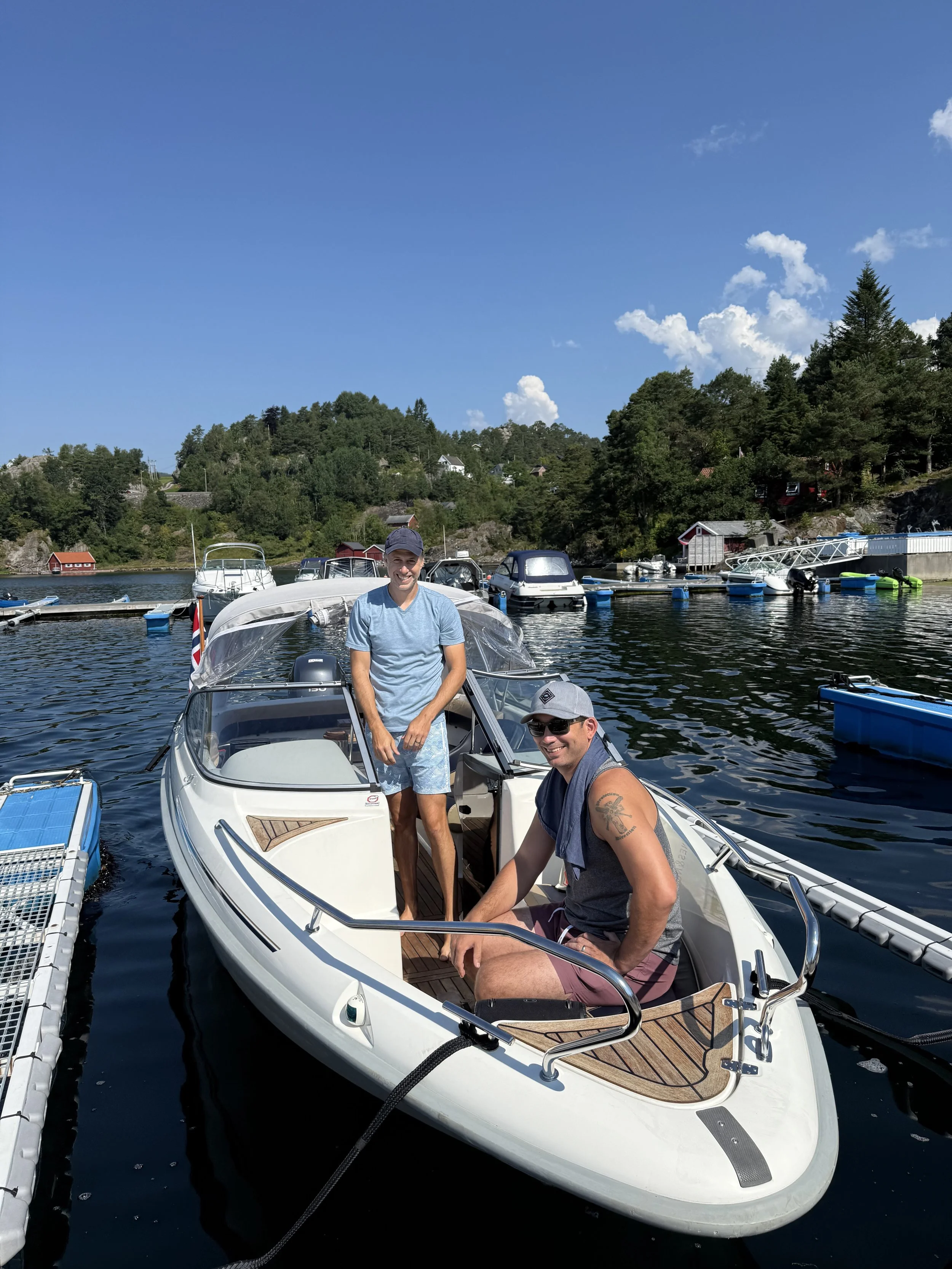 Our plunge wasn’t long – we had to get everyone back in the boat so that we could get back to the house in time to quickly shower, change, eat and get ready for the SK Brann vs. Salzburg Champions League Qualifier match. This time, Kayleen drove the boat and took the wheel with Kyle by her side. Save for one moment where Kayleen abruptly laid off the throttle and sent us all lurching forward, the ride was fun and smooth. Kudos to Captain Kayleen!