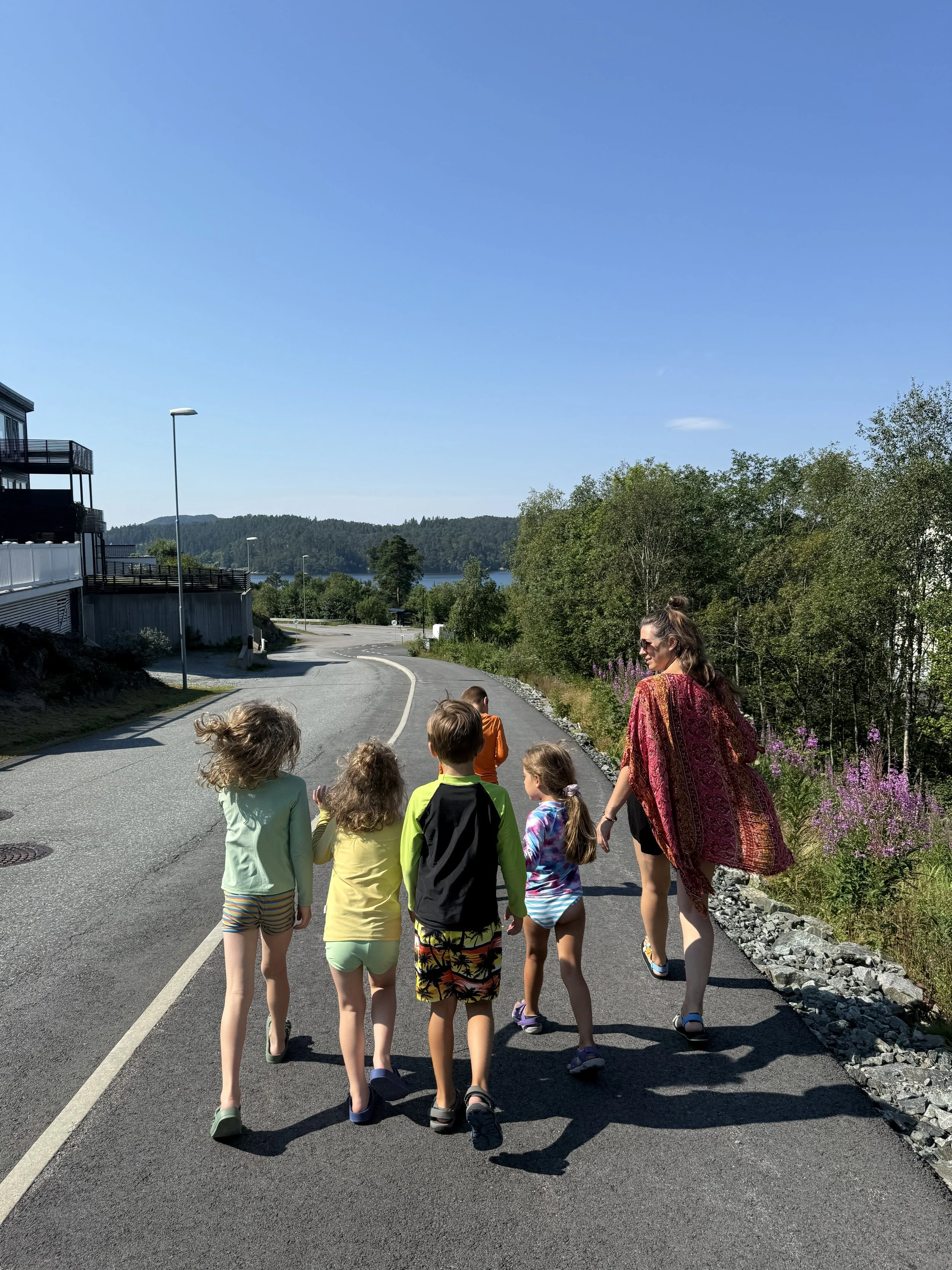 The mornings in Norway have been slow, and Wednesday was no exception. As usual, the kids were the first to wake up, and Jamie and I opened our eyes at 8:30 to the unmistakable parade of footsteps down the thick wooden stairs. The kids have established a routine of an hour or so of Netflix while the adults sleepily drink coffee and make breakfast. After the kids ate, they headed outside for some trampoline fun.