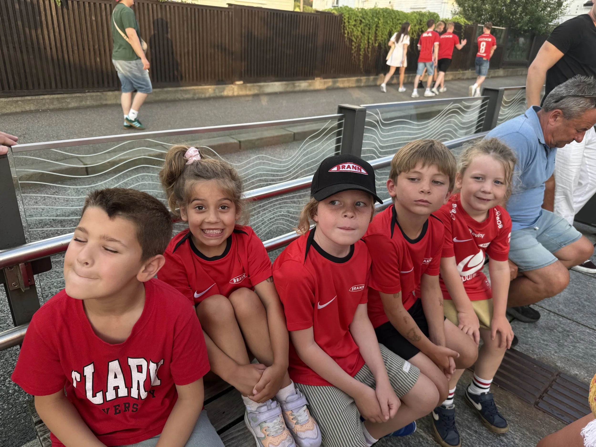 I was particularly excited for the soccer match. Kyle and I bought the tickets on Monday in a spur-of-the-moment decision when we realized that there was a match in Bergen during our stay. Ollie and Connor were clearly excited: they had been playing FIFA 2025 matches between these two sides on PlayStation for the past two days. We loaded up the group in our three rental cars and off we went.