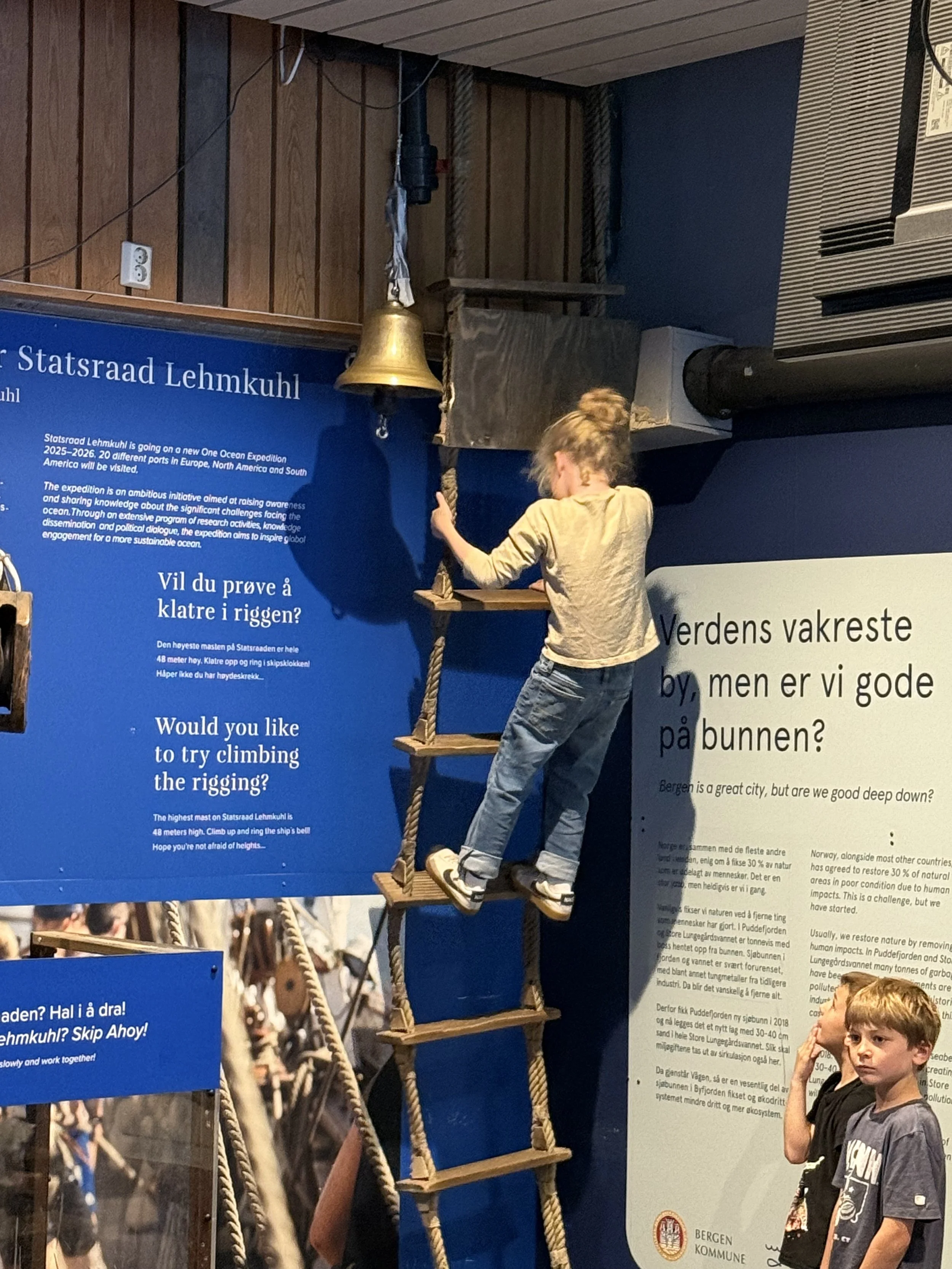 The exhibits were very nice and had quite a variety of animals to see. Everything from shallow tanks to big tanks we could walk underneath. There was also a section about old sail boats with a full-sized wheel, rope ladder to climb, and weighted rope pull to simulate hoisting a massive sail.