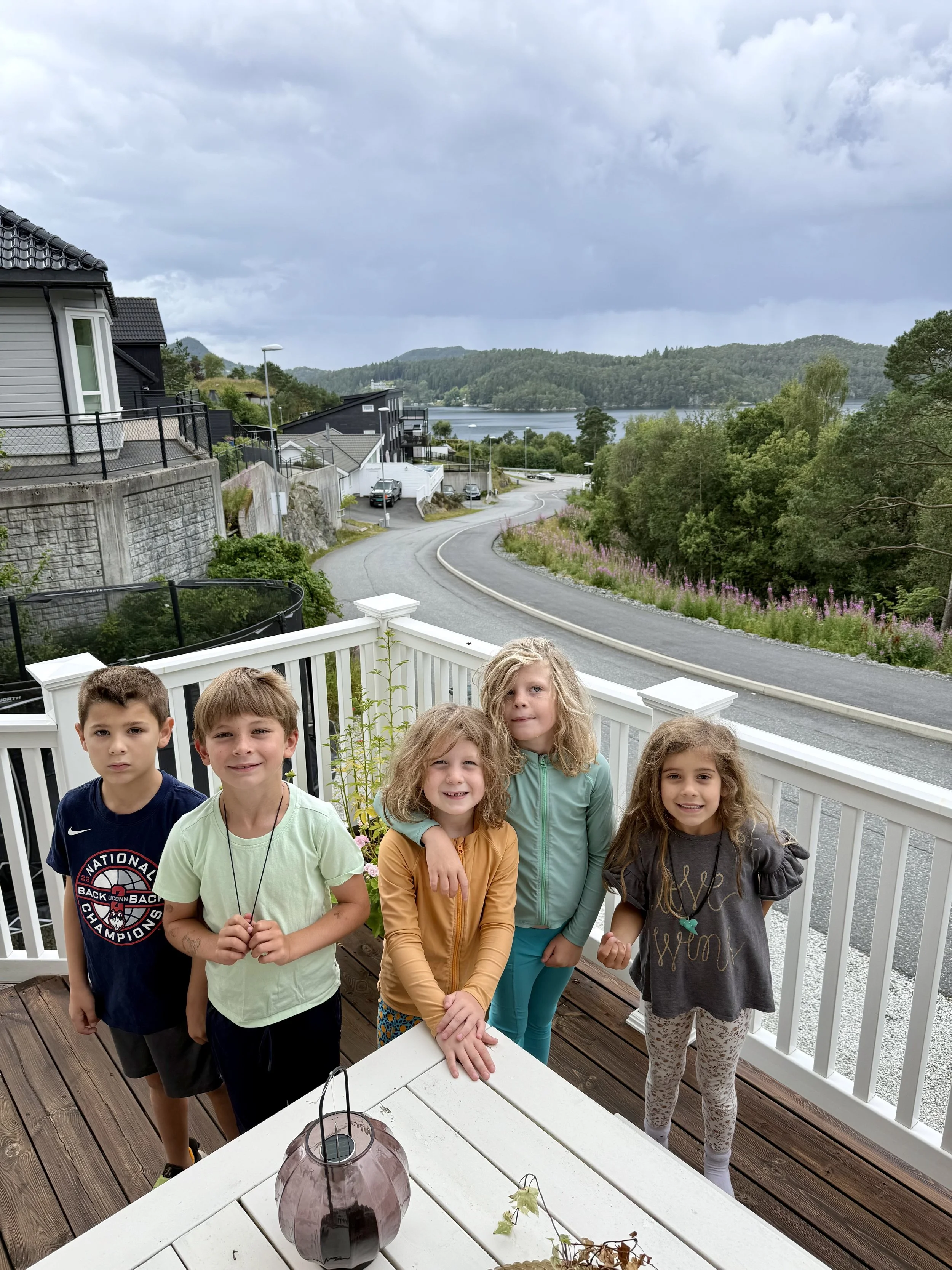 Kyle stayed back with Lenny and the boys playing video games while the rest of us walked down to the nearby beach for one last critter hunt and maybe a dip. Lindsey spotted a small crab that I was able to scoop and Jamie rescued snails from a rock that had risen out of the water due to low tide (What would David Attenborough do?). After a few final rock skips, our friends said goodbye to the Norwegian Sea (North Sea?) and we made our way back to the house.