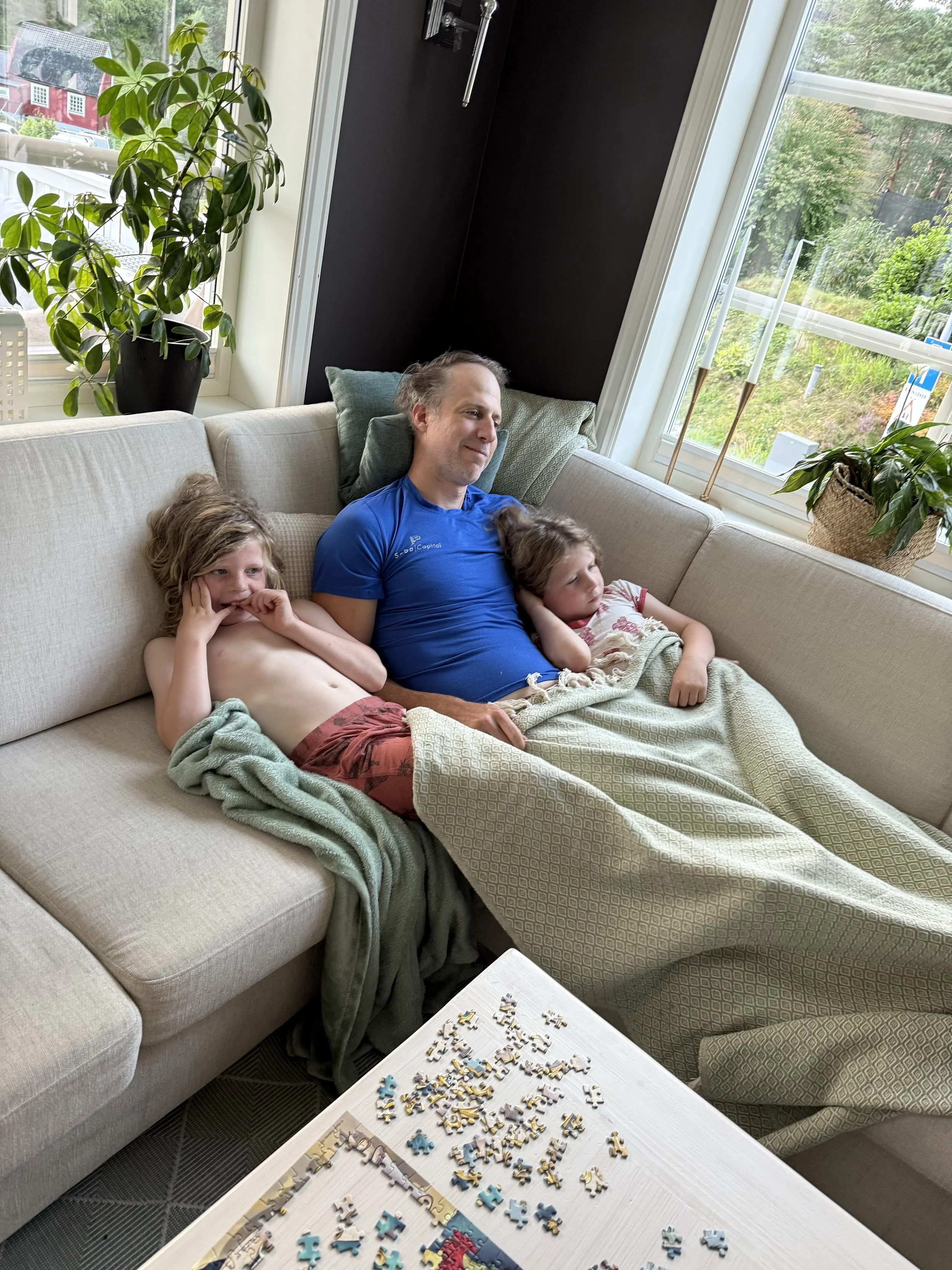 When putting the boys to bed tonight, they both lamented that their roommates were no longer there. Len still chose the Octonauts theme song even though he had no one to troll and Ollie again picked Going Back to Cali (a new favorite that Chris introduced him to on the boat). They begged me to keep the door ajar as they said they were scared without Connor and Liana also in the room with them. Since they’ve always slept just the two of them in a room, this new found fear really seemed like misplaced sadness that their friends had gone home. Len eventually found sleep but Ollie made his way downstairs to tell Kyle and I how he was sad and scared and unable to fall asleep. He eventually laid on the couch while Kyle worked on a blog post and fell asleep next to him.