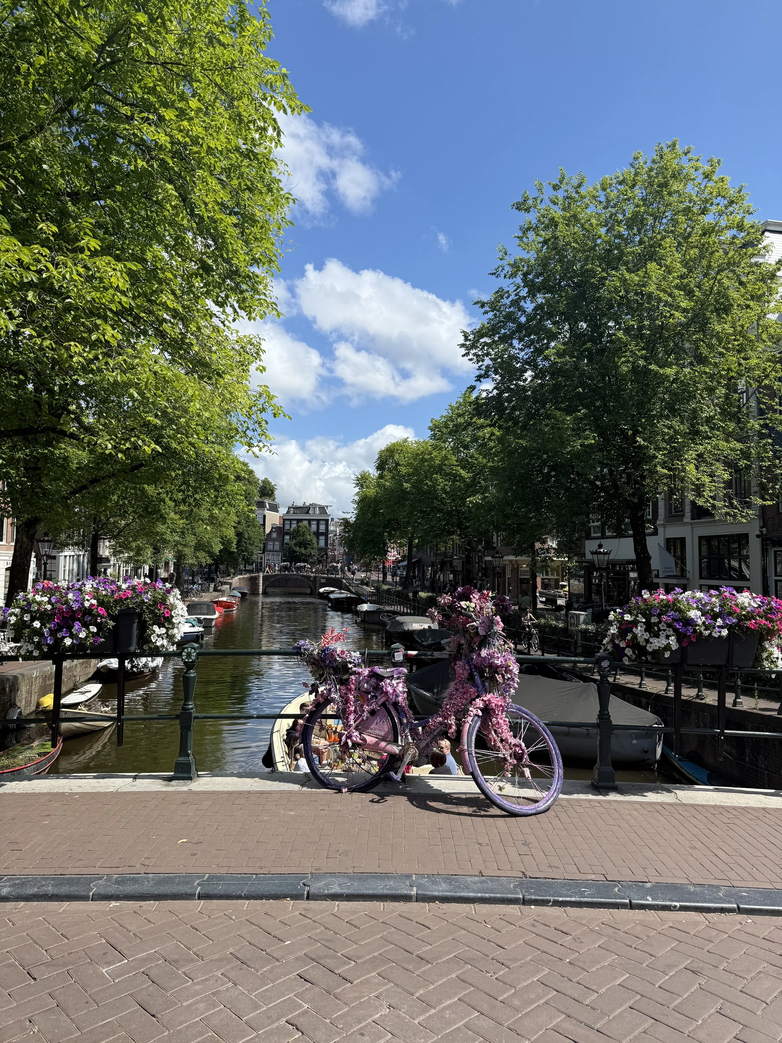 Kayleen and I both really like this city. Every street is interesting and a bit different with the canals, bridges, flowers, and bikes. We would be happy spending a full day biking or walking around just looking at the different parts of the city. On her walk back from the bike return she found a darker part of the city’s history. There are plaques in the sidewalk in front of homes that Jewish residents were taken from during the Holocaust.