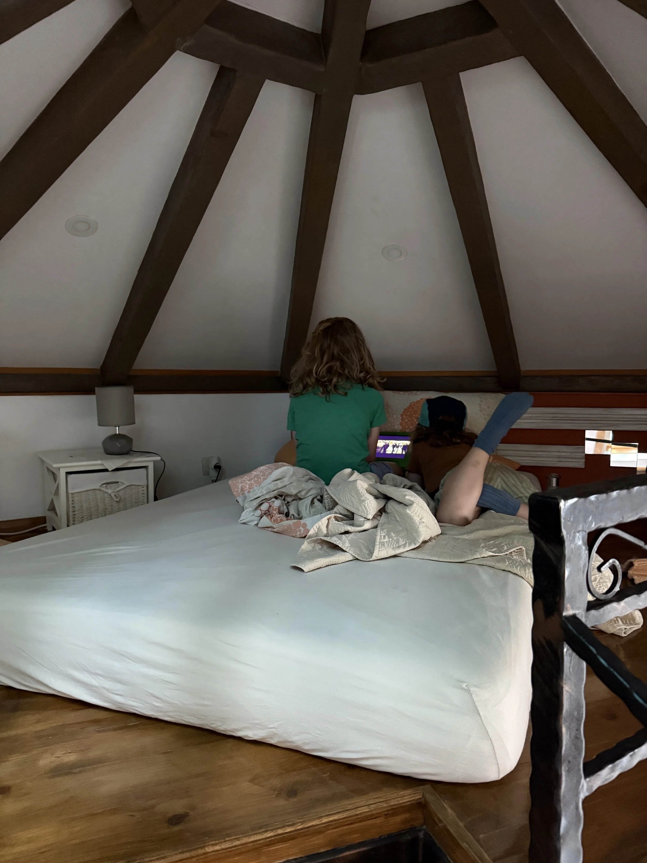 Ollie was the first one up today. He had migrated to our room at some point in the night and when he tried to wake me about around 7AM I told him to go back to bed. I was tired from my late night of ticket hunting but I was able to get four tickets at around 1AM! About 30 minutes later I woke up to Ollie saying “No No No”. When I asked him what he was doing he said that he really wanted to take his iPad but knew he wasn’t supposed to so was telling himself not to do it. That gave me a good laugh so I was also now up.