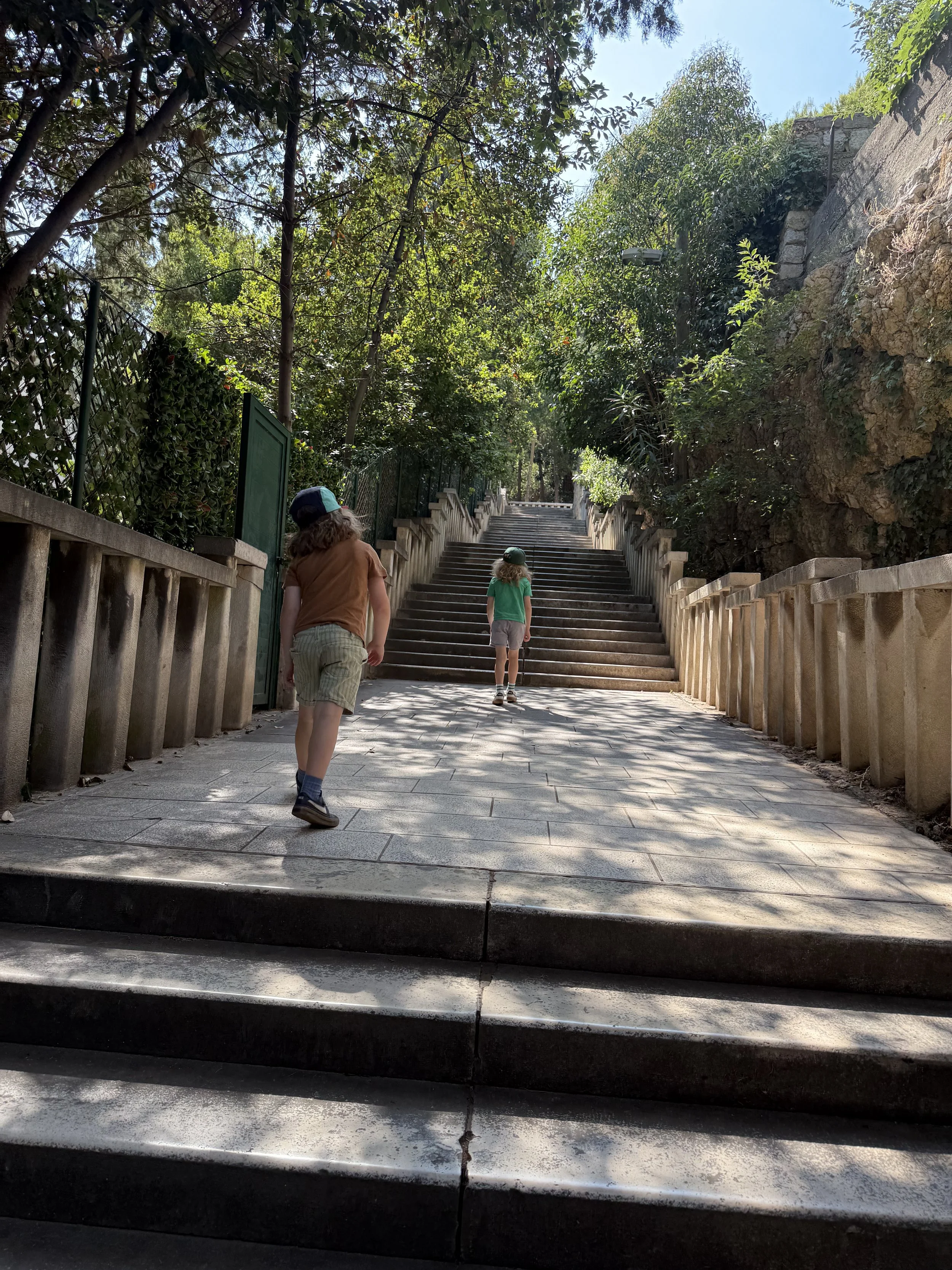 Then we headed to a bigger grocery store I had passed yesterday to get food for dinner. The store wasn’t huge but much bigger than the one close to our apartment. The only downside is we needed to climb the mountain of stairs that we had done to return from the beach yesterday with all the groceries. We managed but were glad to be in the A/C in our apartment once we made it.