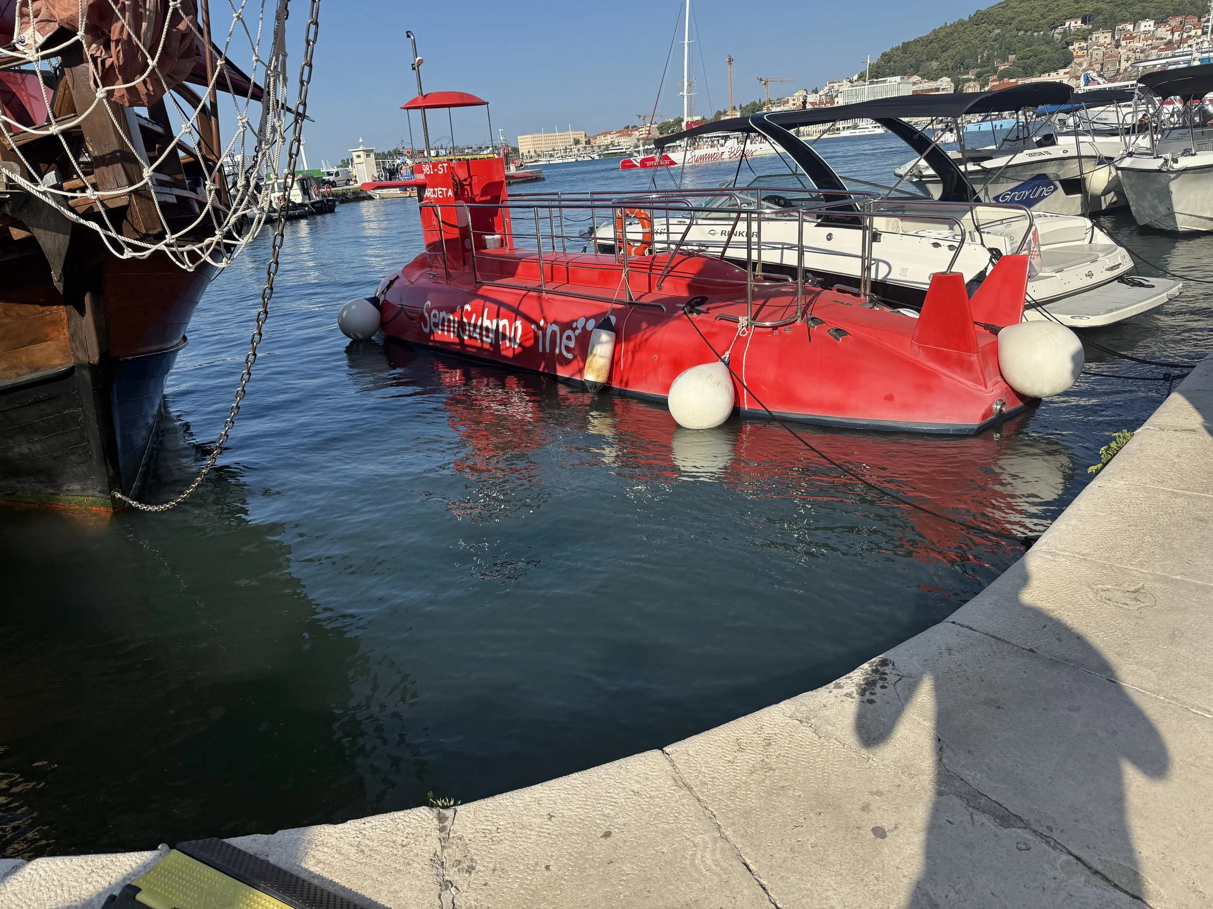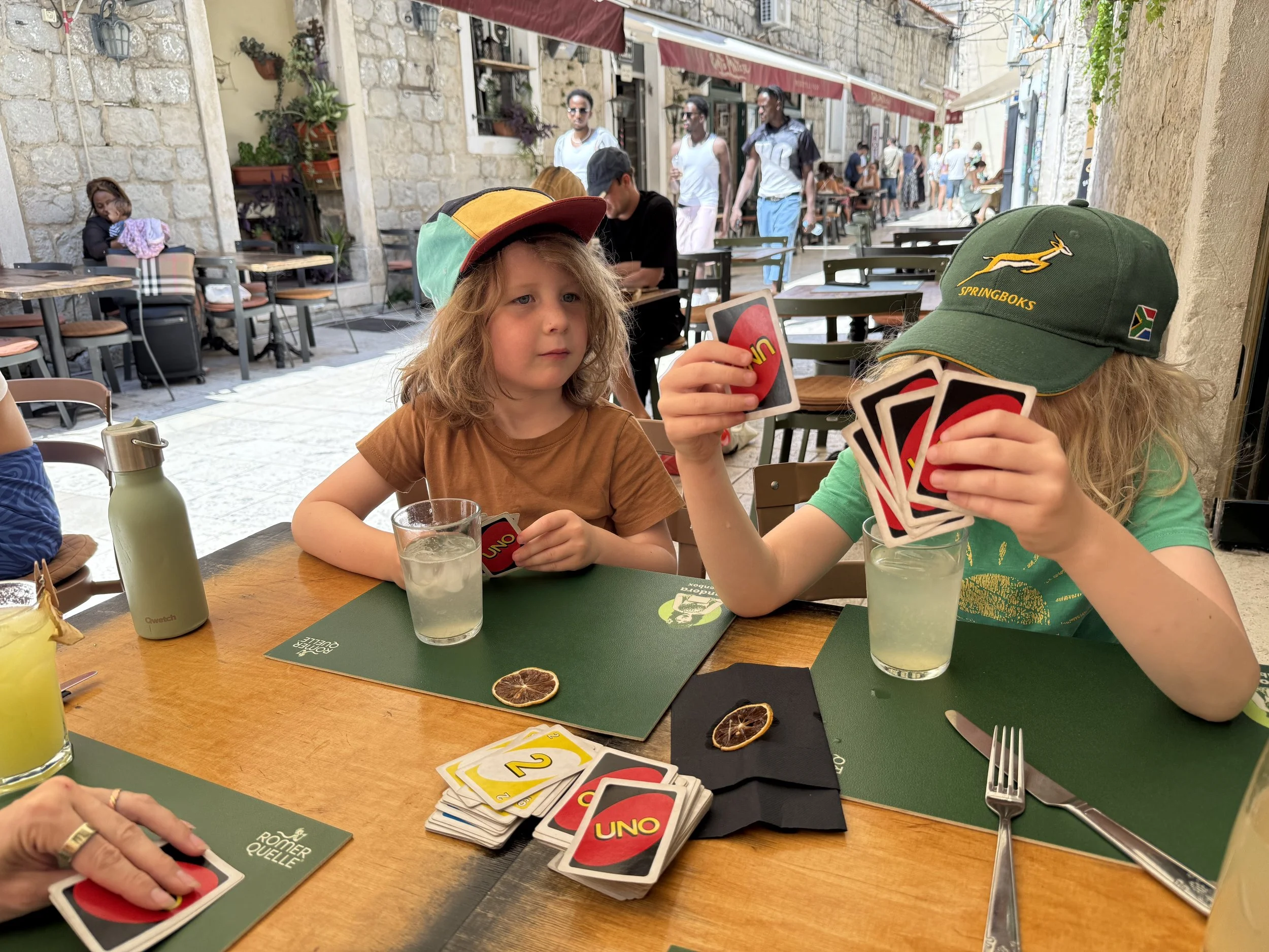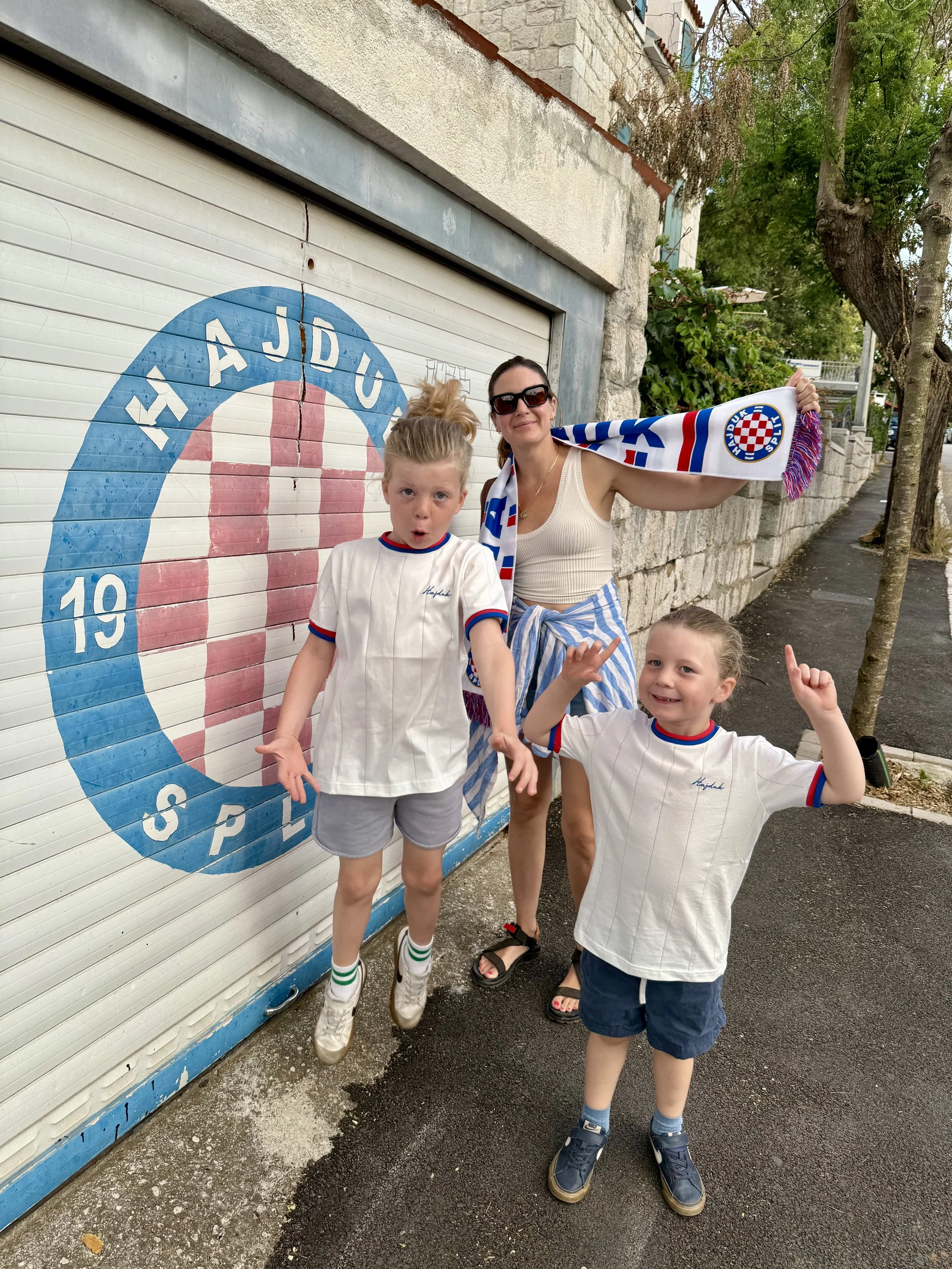 We headed to lunch after where we got a shaded table outside and played a few rounds of Uno. The boys were thrilled that we once again found classic lemonade, with no carbonation. After giving Lenny a turn to pay the bill with our credit card we were off to the HNK Hajduk fan shop. We grabbed team shirts for the boys and Kayleen got a scarf, I had cloths that matched their home colors so opted out though the scarfs were tempting. Lenny also got inflatable team swimmies to help him explore more easily at the beach. When checking out I proudly let the cashier know I was a member of the team fan club, something I had to do to help get tickets, to get my 12% discount.