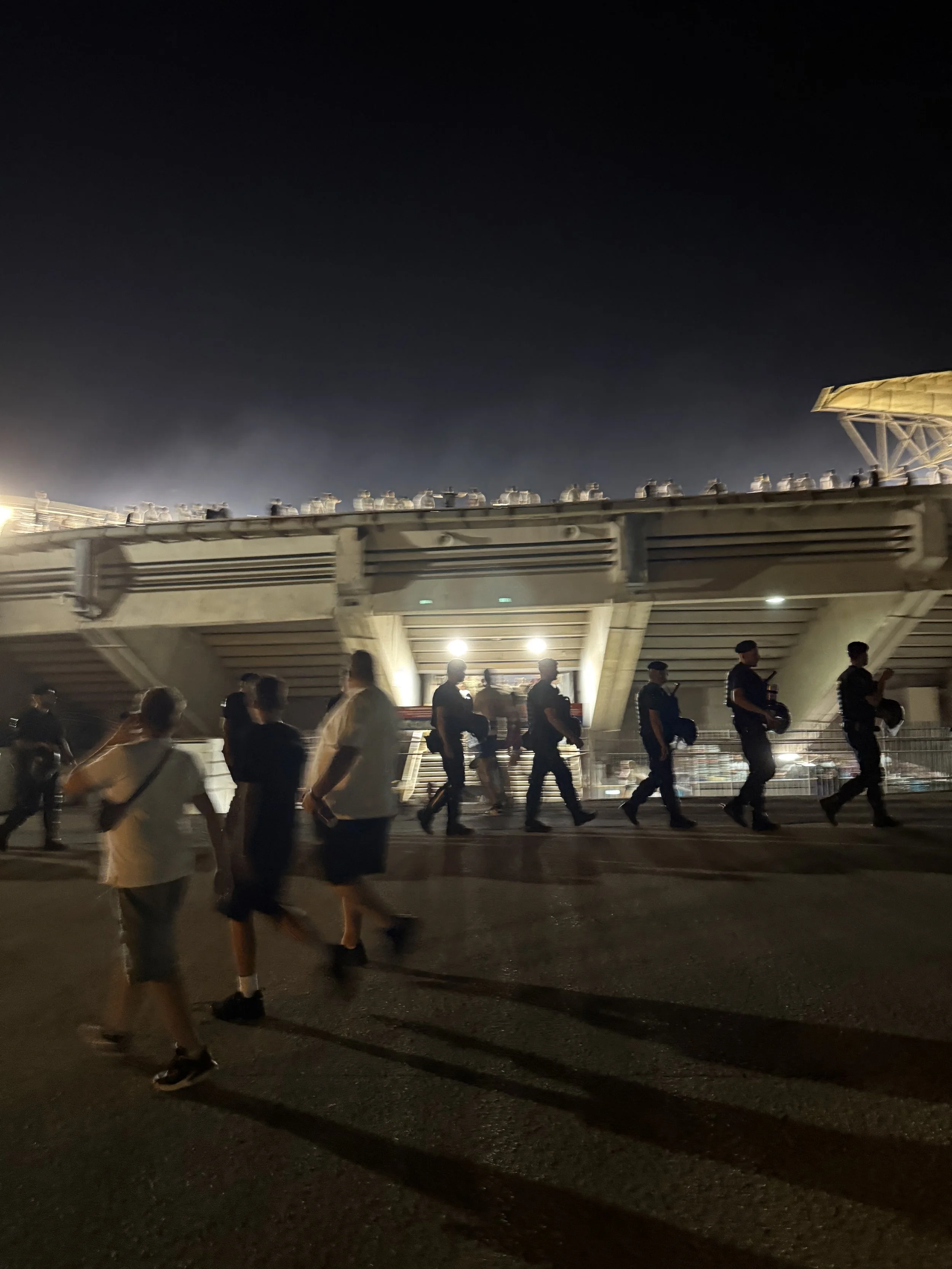 As we were leaving with 5 minutes left to play, we noticed a lot of other families with kids doing the same. We saw the police dressed in SWAT gear heading into the stadium to help lead an orderly clearing of the stadium. We also people standing at the top of the North, hardcore fan, side of the stadium. One step back or an accidental push and they would likely fall to their death…