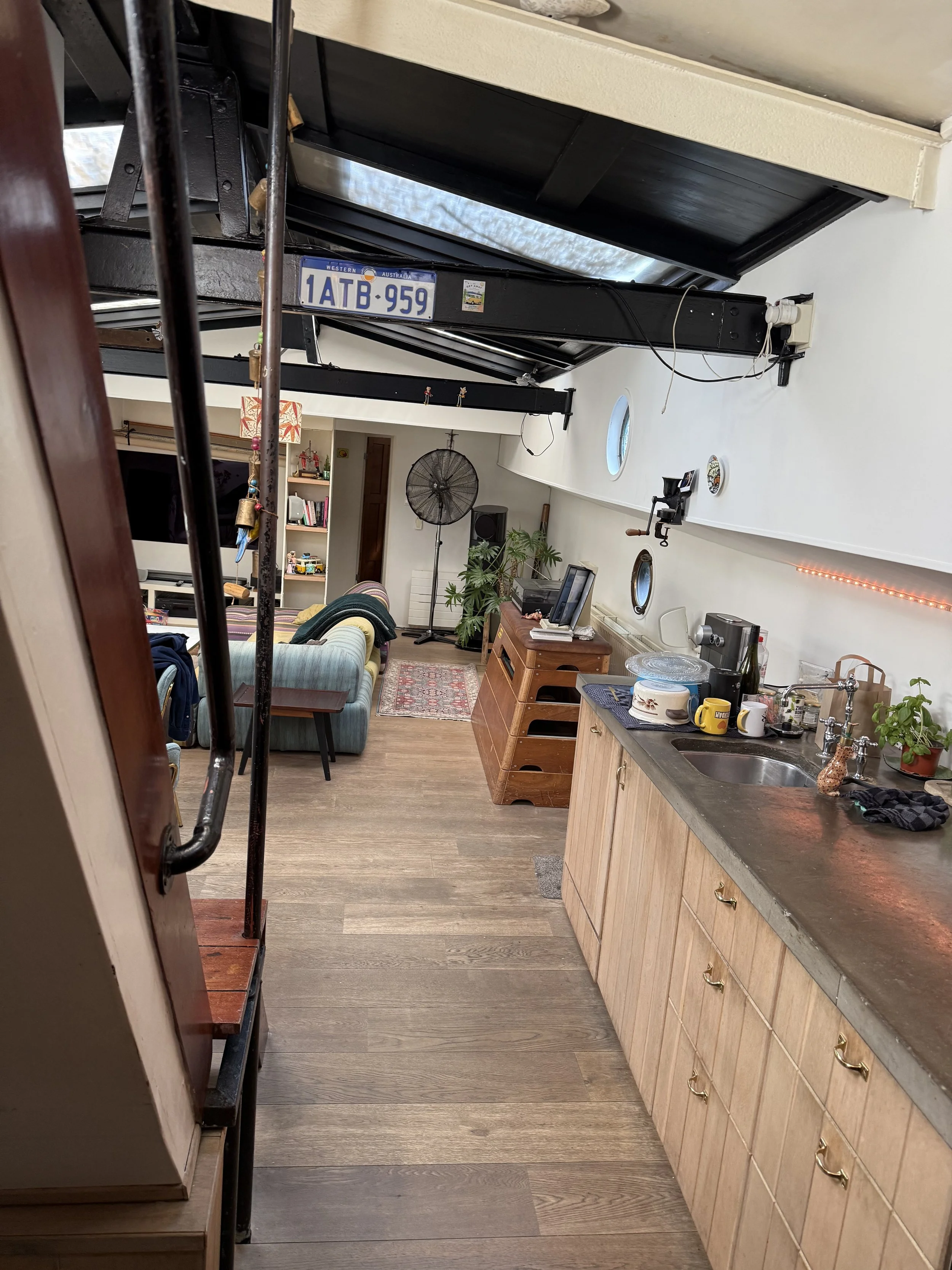 We loaded up all of our luggage and the kids’ bike into the little boat to transport everything to the apartment in the West side of town. We really liked staying in the boat and Ollie especially got emotional when leaving. Kyle and the boys were down in the little boat while I waited on the houseboat for the OK to untie the final rope after the engine started. It took over 15 minutes, a few google searches and 100 pulls for Kyle to get it but he was successful! Apparently he needed to pump more gas into the engine to start it. After our near failure to launch, we set sail (motor?) towards the western side of town. After our recon mission yesterday, we had a plan in mind for how we would dock the boat, unload everything and walk to drop it at the new apartment. To our surprise, this plan went off without a hitch other than the near failure to start the boat motor. The weather was lovely and we mostly enjoyed one final tour of Amsterdam by boat save for Ollie asking, “Can we check if there are any cool Pokemon??” more times than I can count. Eventually the boys took to playing a game of charades back and forth and Lenny kept doing the same actions for all of the different dinosaurs he knows and took great pleasure in telling Ollie, “Nope, WRONG!” whenever he guessed incorrectly.