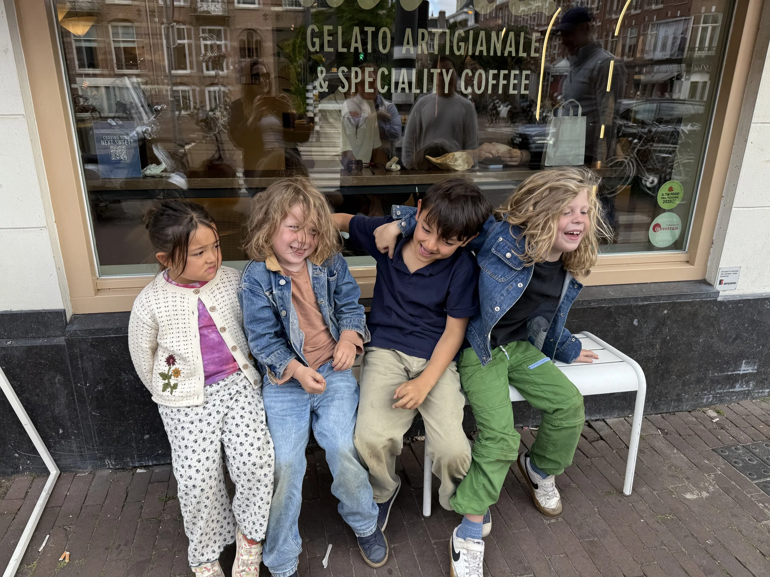 We headed back to Vondelpark to keep practicing bike riding and play with the boys. Kayleen rode the kids bike to park which was a funny sight to see through the streets of Amsterdam. The annoyance was worth it as Ollie can now RIDE A BIKE! After only a few practice runs with me holding the bike I let go without telling him, as all parents do, and off he went.