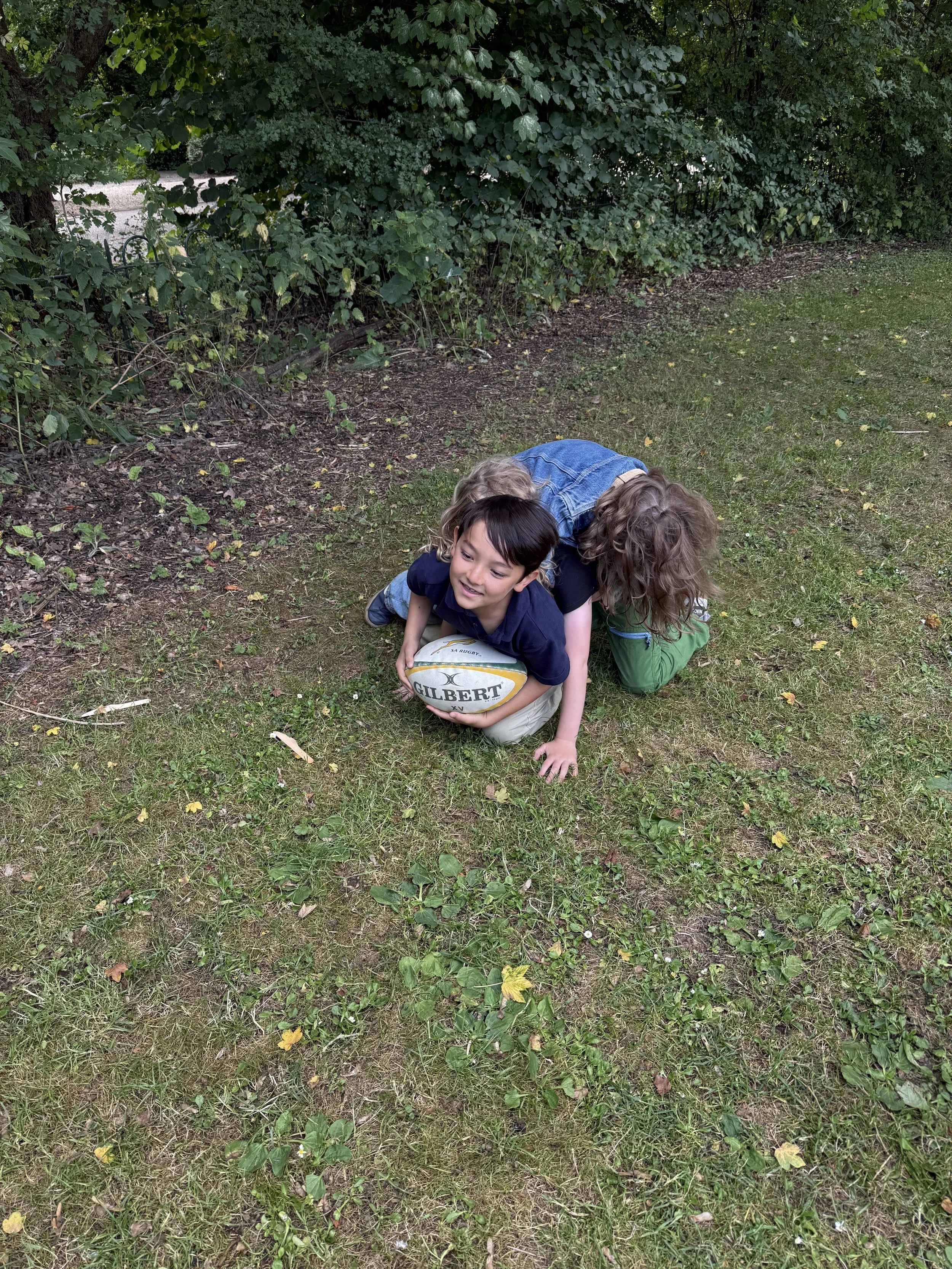 The kids climbed trees, played rugby, pretended to be Pokemon, and took turns riding the bike around the park. We left the park in search of gelato and Lenny was excited to ride in the bike bucket with Luciana. He wanted to tell her all his expert knowledge about riding in the bucket, including how he gets in by diving in head first with his legs flapping straight up in the air. We parted ways after gelato and headed to a park closer to our house to run out some more energy before dinner.