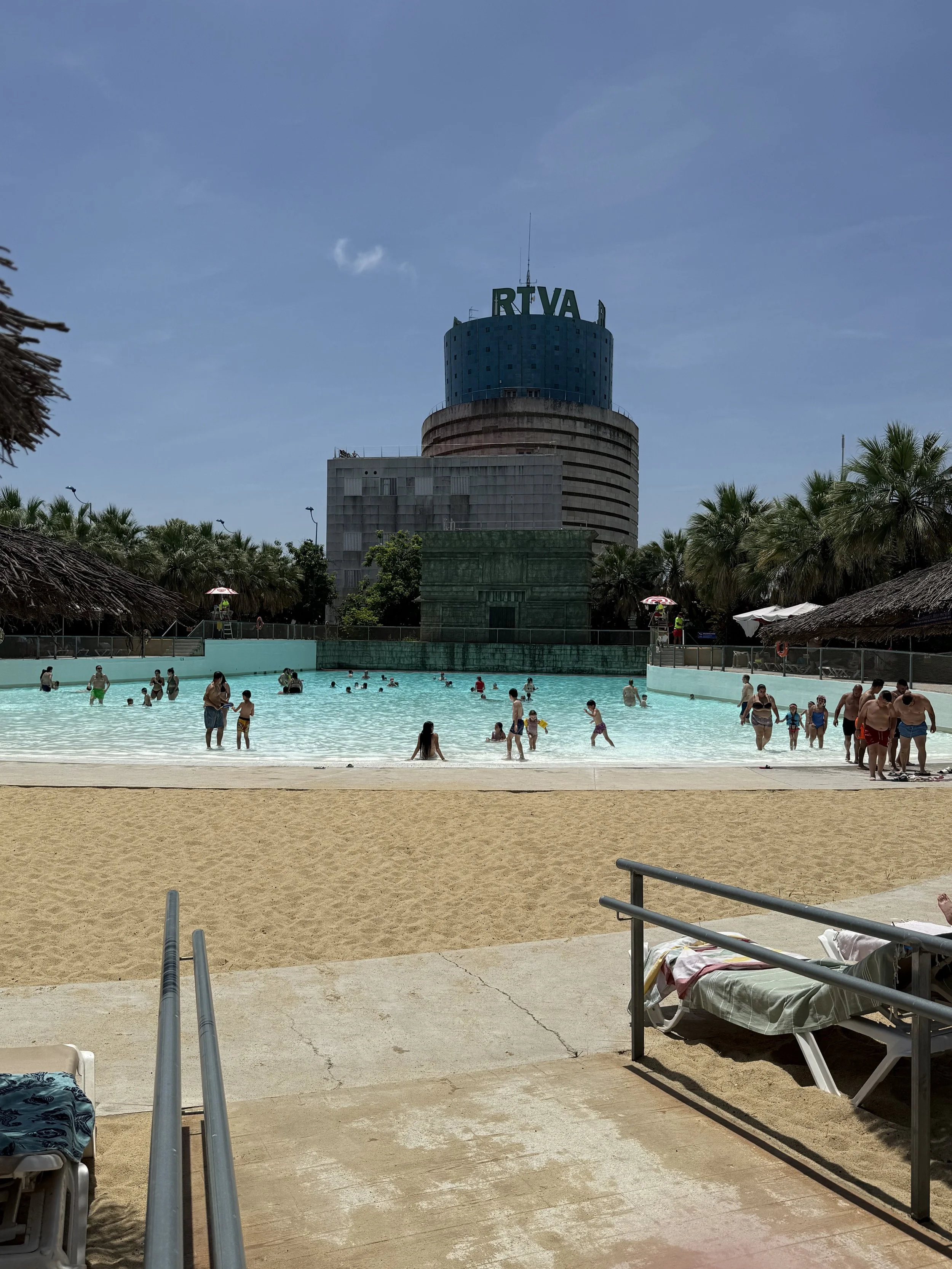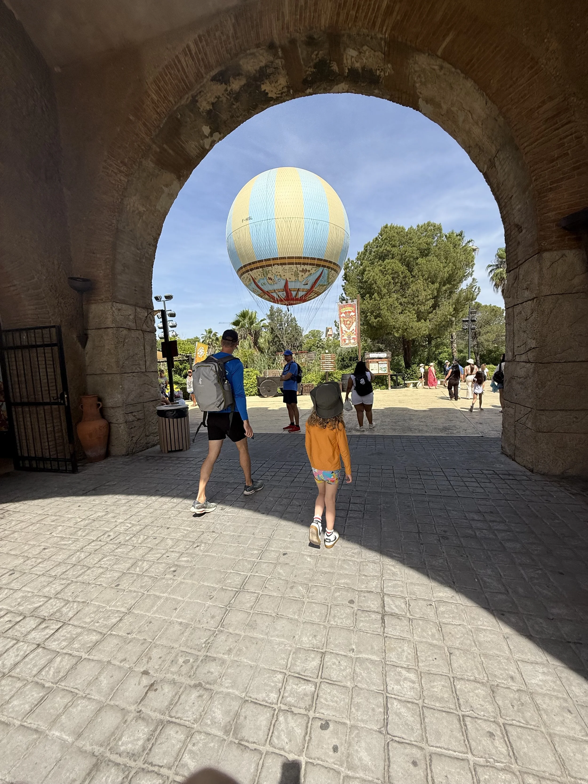 Once inside the park we decided to try and explore the non water park section first before it got too hot. Upon entering we encountered a piece of the Berlin Wall which was cool but seemed out of place. We passed on the tethered balloon ride and ended up on a wild river ride that you stayed mostly dry on. That was followed up one of those large spinning swing rides, after which I needed a ride break.