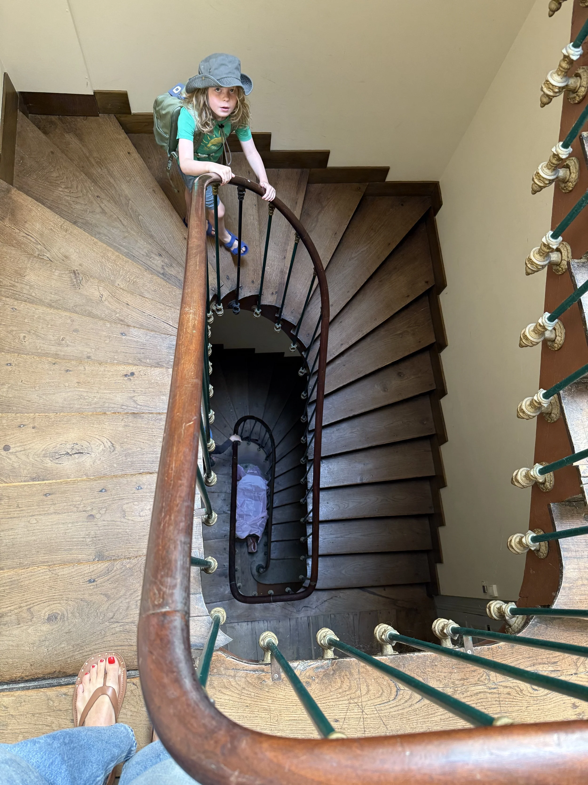 Then made our way to Bistro des Fleurs by our house– Michelin Guide listed restaurant. Casual but proper French food. Menu was hand written on a sign and gave our google translate app a challenge, but the waiter was wonderful and helped us a bit. Boys had their first ever steak frites! Steak cooked well done and mountains of frites. There was an amazing strawberry pavlova for dessert for Kayleen, Len, and I while Ollie ordered the cheesecake. Lenny called it “Paploga!!” On seeing our pavlova, Ollie goes, “Oh MAN! I am regretting my choice!” But he happily devoured his entire cheesecake slice while periodically asking for nibbles of our pavlovas, too.