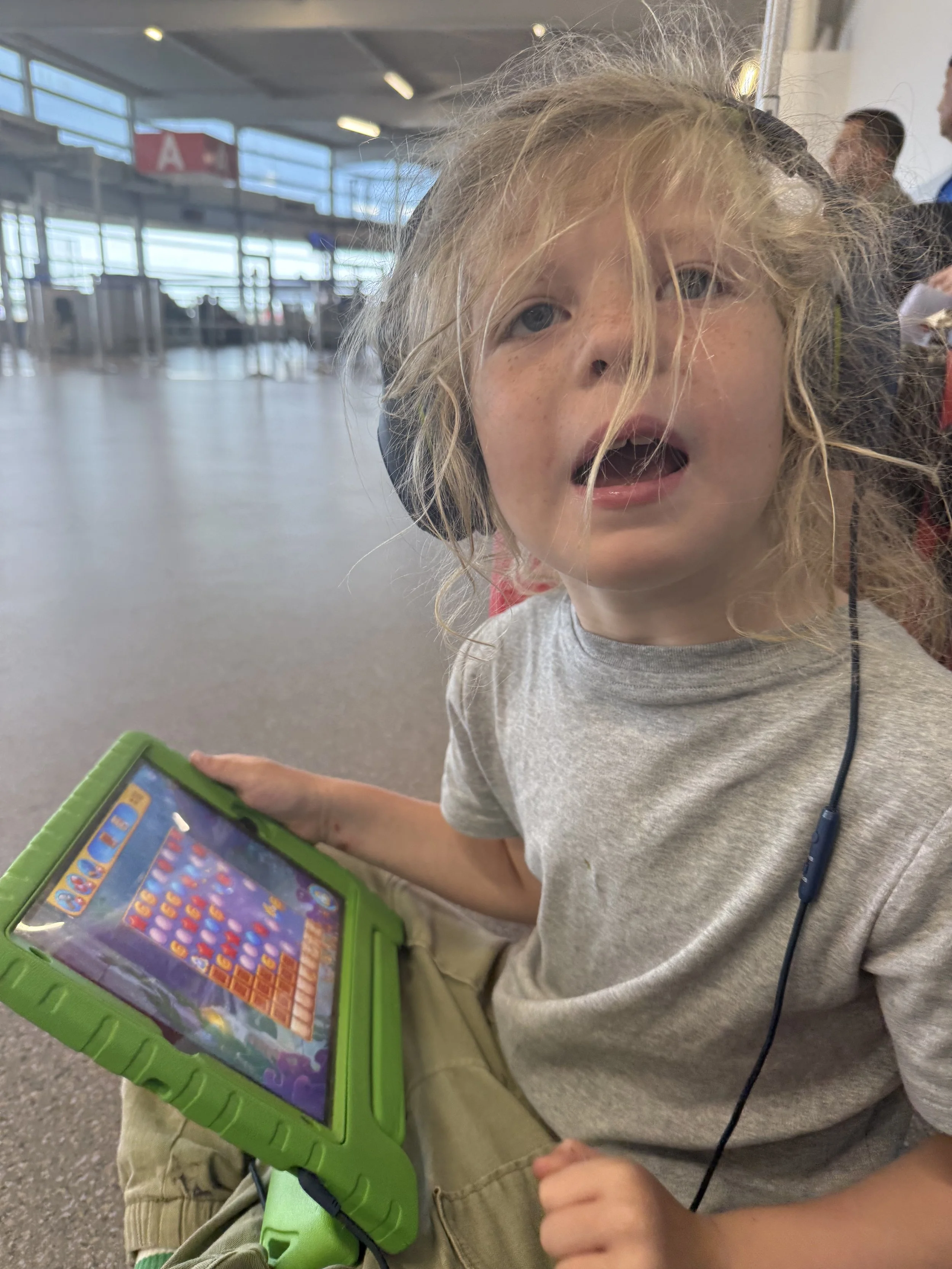 The drive to the airport was easy with almost no one else on the roads. We listened to more Harry Potter and returned the rental car without issue. Our plane tickets came with checked bags for this flight so we dropped them and made our way through security. Not having them as carry-on bags when on the discount airlines removes a level of stress.