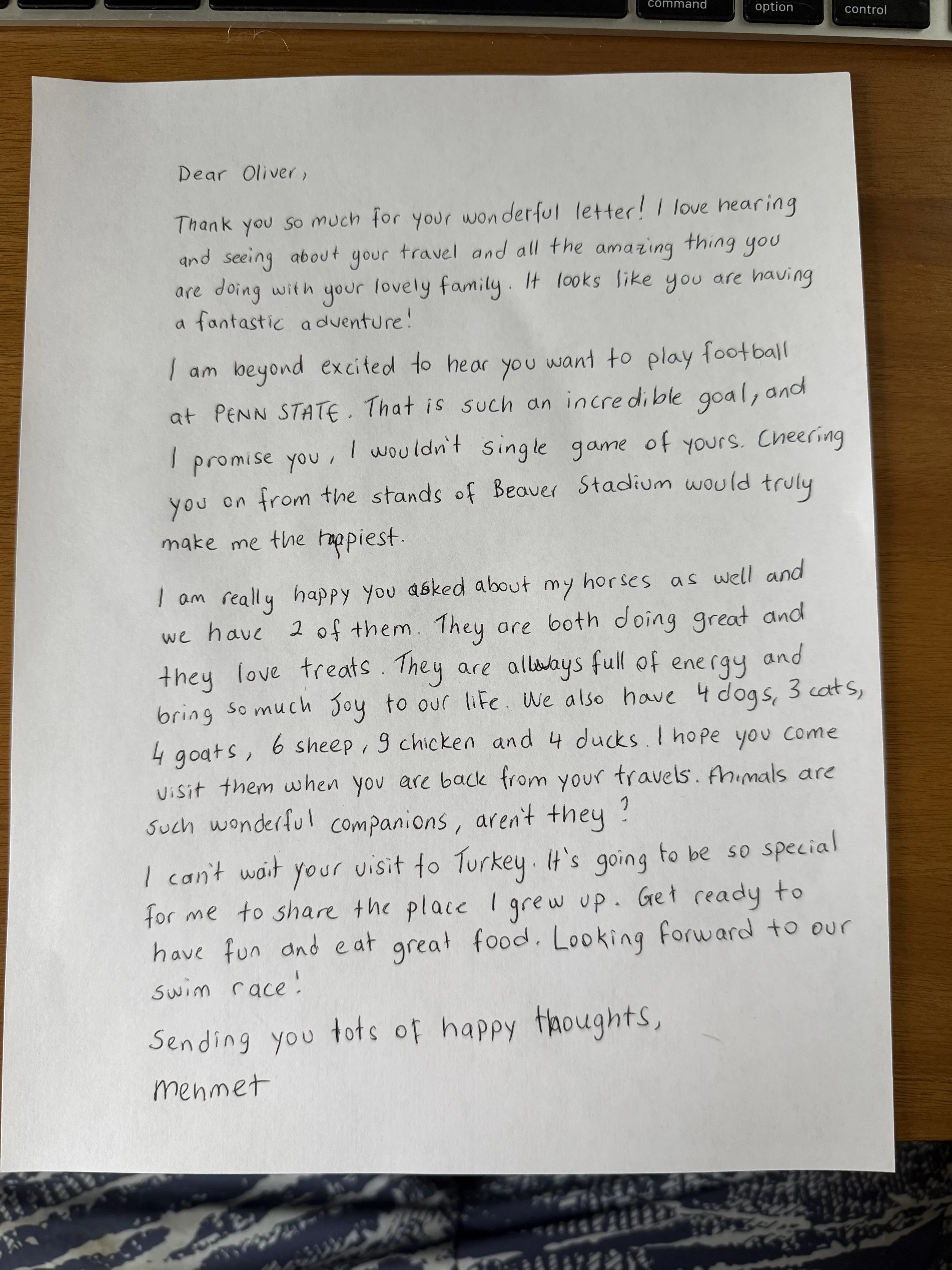 Mehmet wrote back to Ollie and he was excited to get a response. He looking forward to seeing Mehmet’s house in Turkey and all the build up to some swimming races.