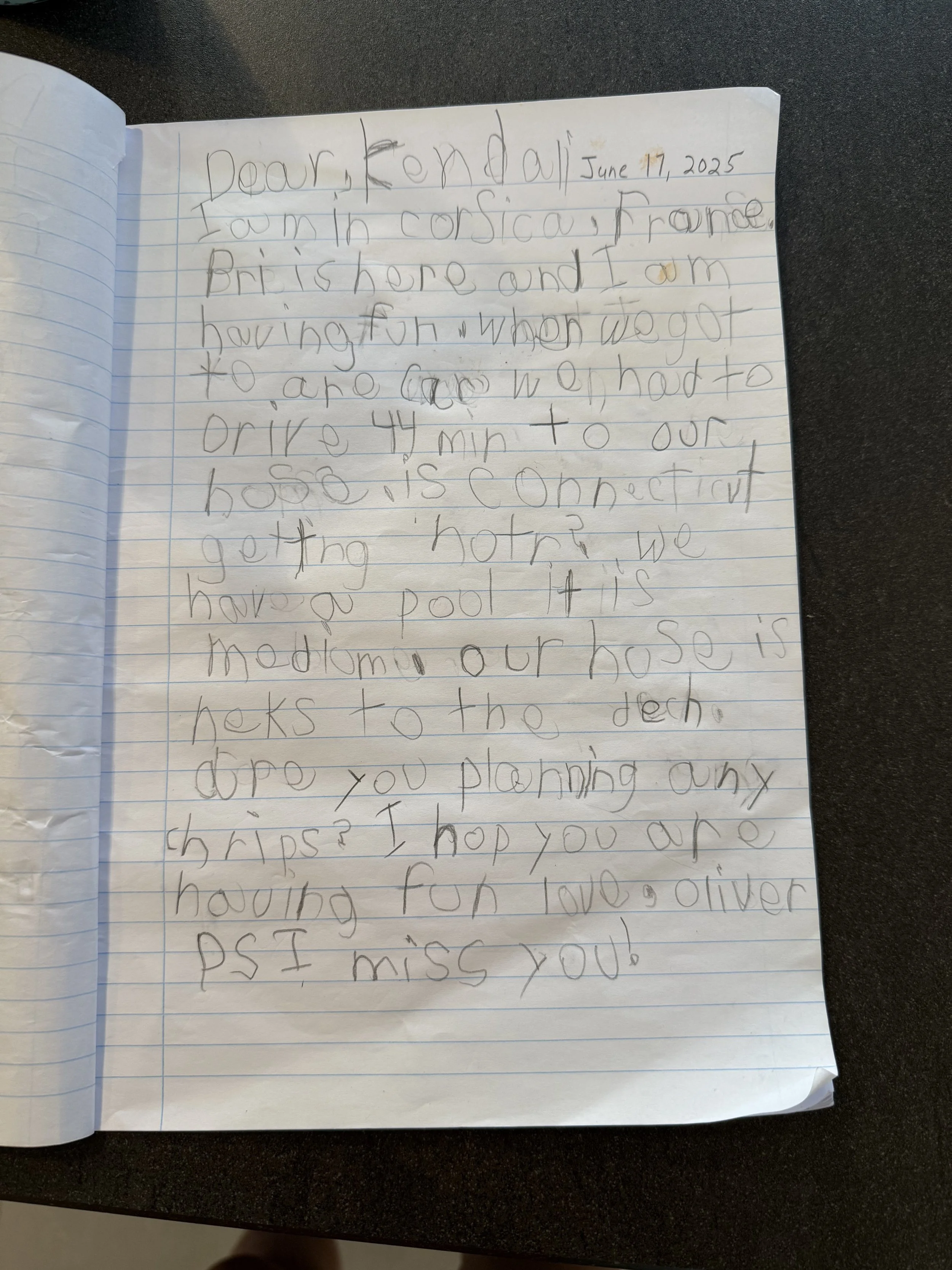 We completed the days home schooling when I returned. Ollie wrote his letter but it was a struggle. It took over an hour to write six sentences and he asked for constant help around word spelling. We told him he is now going to need to write his letter as soon as he wakes up.