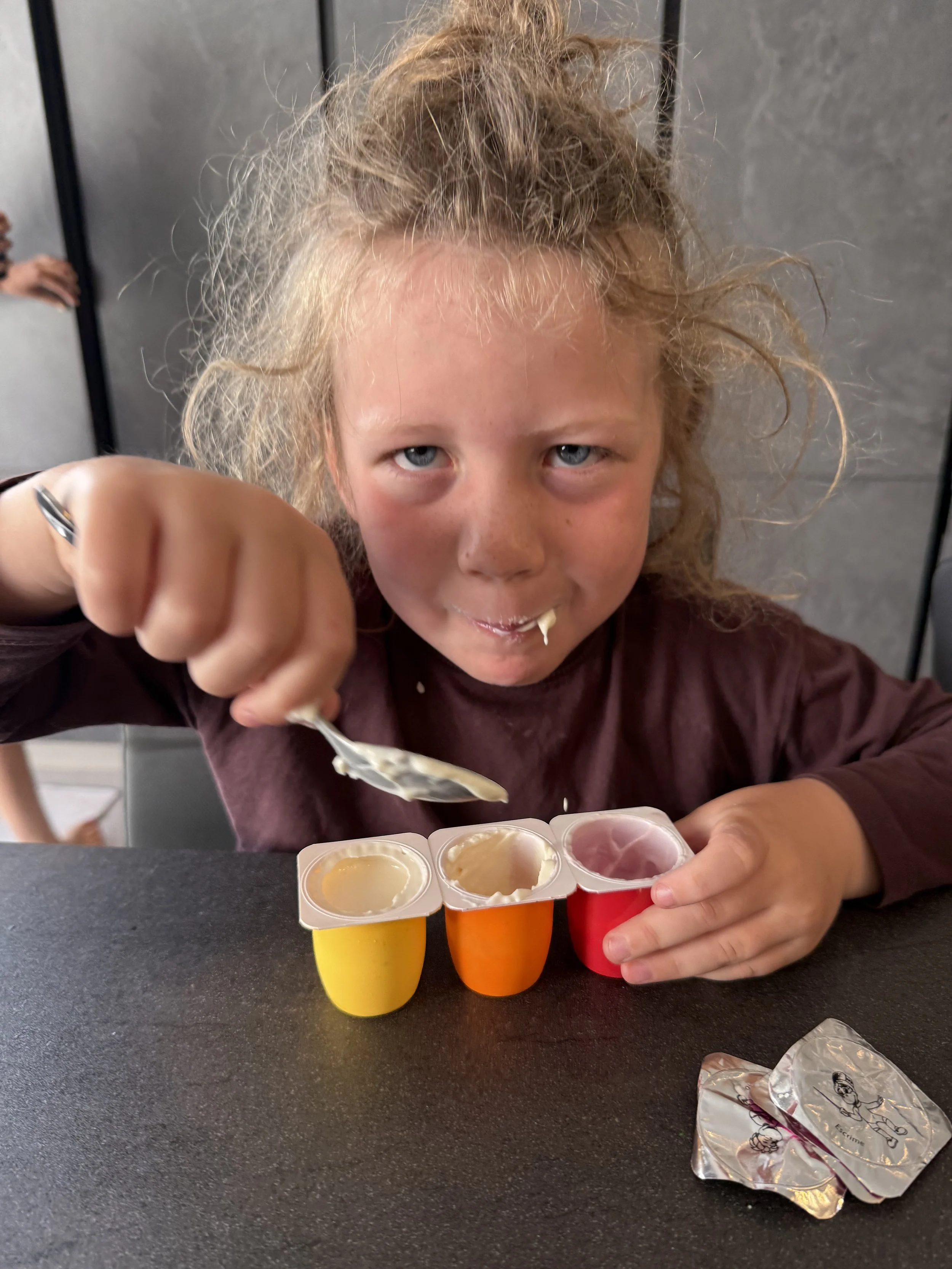 We finally broke Lenny with all the pool and beach time yesterday! He slept till 10AM and it would have been longer but we woke him up. Ollie was up closer to 8AM and was happy to mess around in peace with Lenny asleep. When Kayleen eventually woke Lenny up she asked him, “Do you know what time it is?” and groggily he replied, “um I forgot. Showtime???” His response being a quote from a Hamilton song, showing how ingrained it has become. Once awake Lenny happily took down his three yogurts.