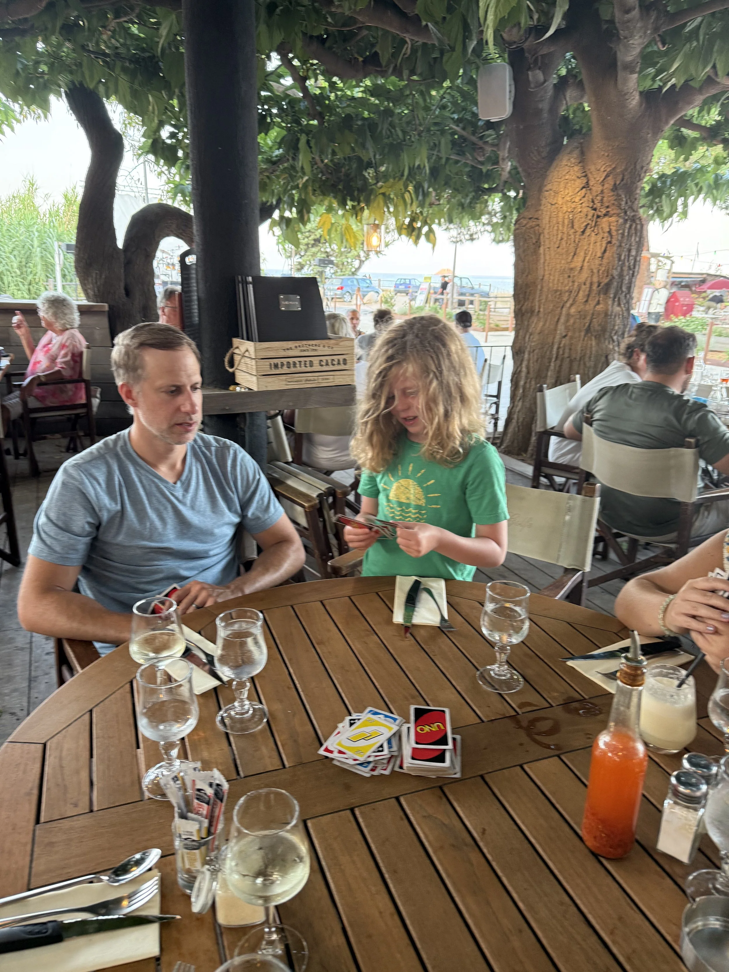 There was another 6 person Uno game at dinner which take quite a bit longer than our old 4 person games. It was interrupted when Kayleen and Lenny caught a Squirtle on Pokemon Go and Ollie turned green with envy. After dinner we walked to the beach to attempt to take over a Pokemon Go gym for the first time as Bri and Amanda headed to their Corsica bar for one last drink. The boys were delighted that we “captured” a Pokemon gym, but we got a notification that we lost it an hour or two after we got home. We are still not exactly sure what any of this means.