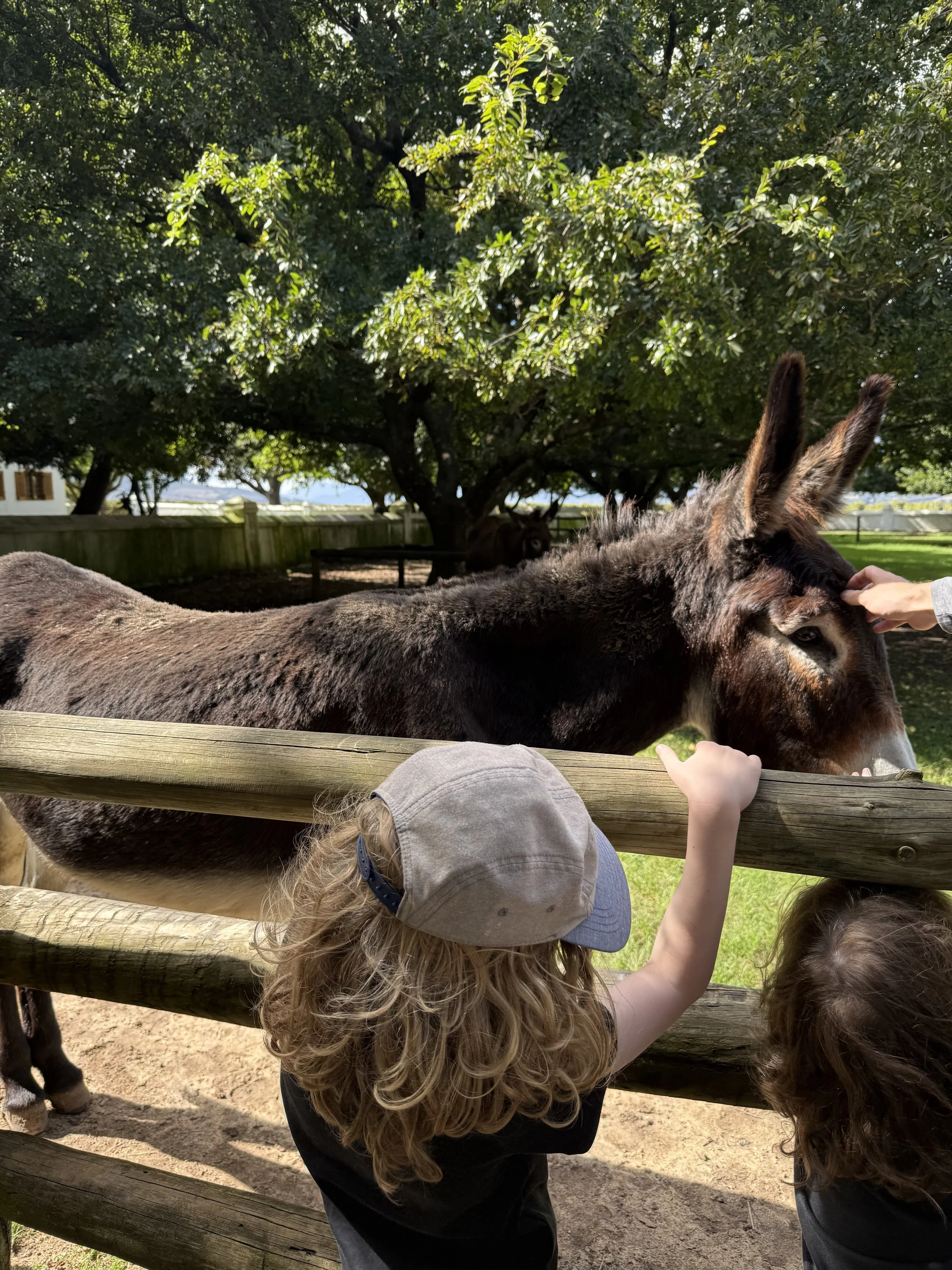 Our last stop of the day was Babylonstoren which came highly recommended from multiple sources with one listing it as, “The most beautiful place I’ve ever been.” After the check-in and a bathroom emergency (crisis averted), we went to get gelato. On the way we saw donkeys and Ollie said, “Snap a picture of that donkey’s jelly beans! They look slimy!” We chuckled but kept it moving to the gelato shop where Ollie had water buffalo gelato and Len had mulberry. We spent ~90 minutes wandering the grounds which were stunning and impeccably maintained. We debated doing another tasting, but didn’t see a playground in sight to occupy the boys and figured it would have been brutal without a distraction for them.