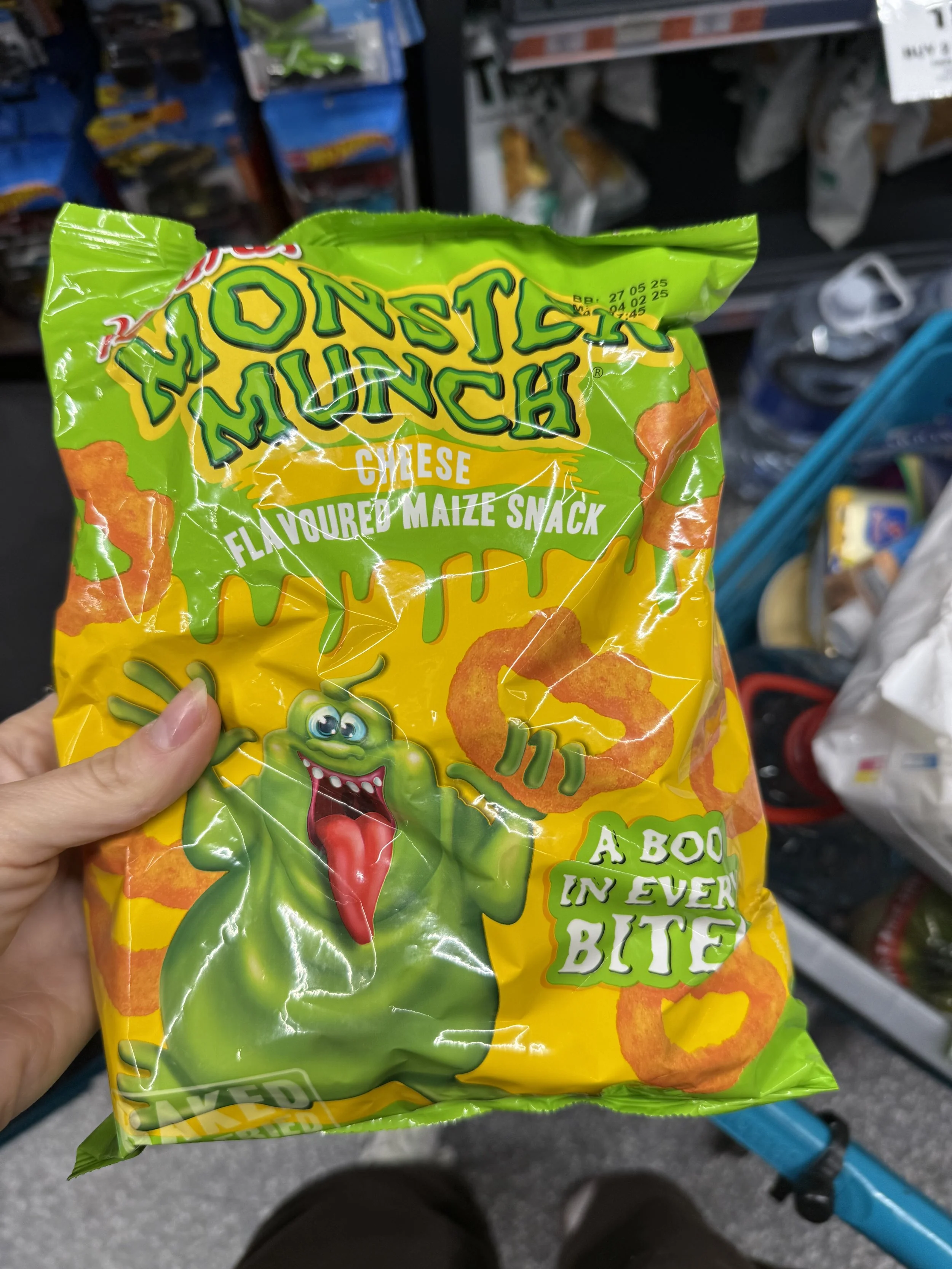 We ended the night back at our house where the boys did a taste test of these monster crunch puffs. They both ended up scoring them as “infinity over infinity” which felt like a high score for essentially Cheetos.