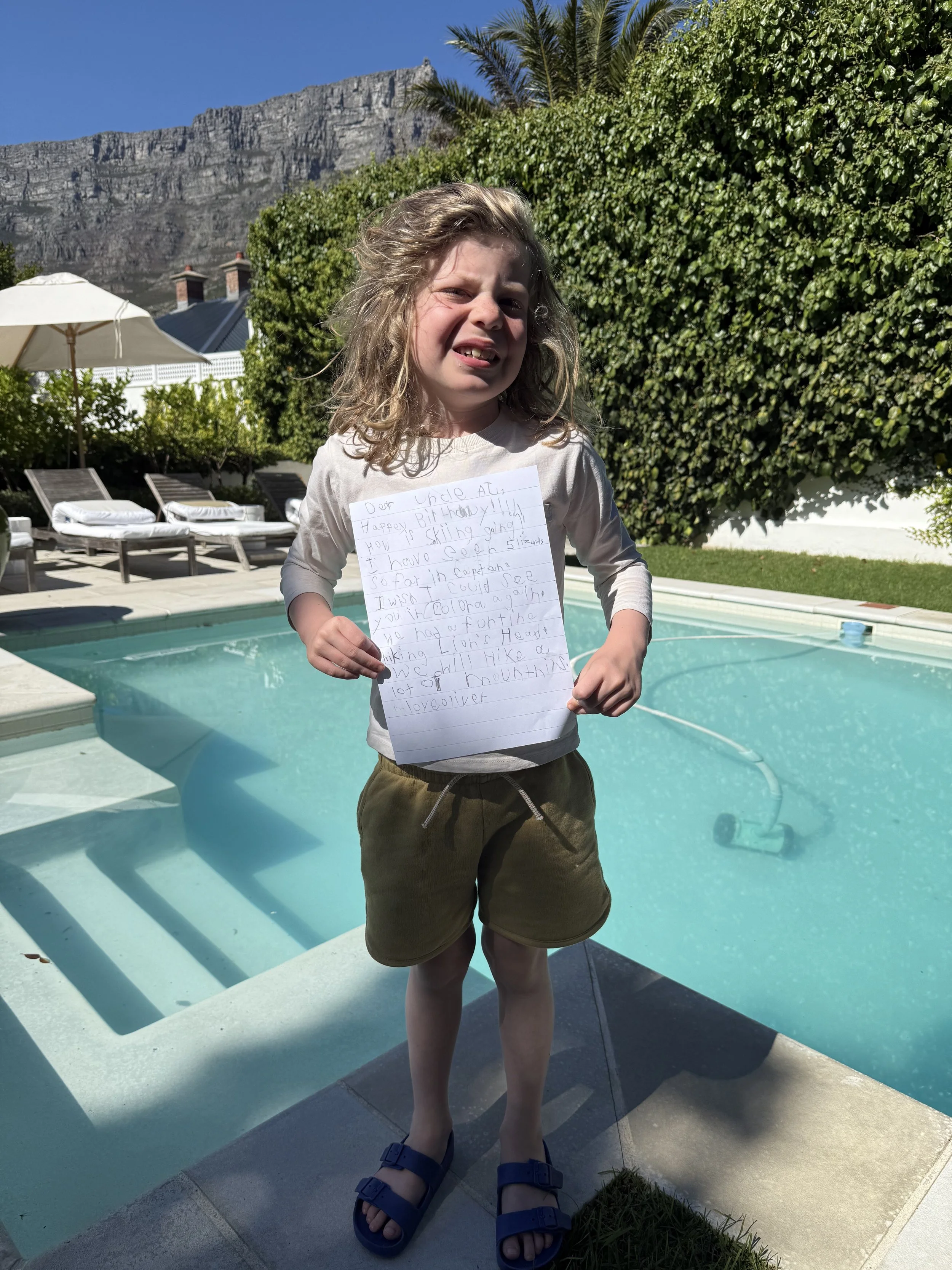 We headed home for dinner and and I grilled while drinking a margarita that Kayleen made. No one calls it grilling in South Africa, it is called braai, pronounced ‘bry’. We found a new dessert for the boys to try, a braai cone. It’s a half cooked waffle cone that is stuffed with chocolate, marshmallow, and M&Ms with a tinfoil top. I put it on the braai for 10 minutes being careful to rotate it every few minutes to not scorch it. The kids took the tinfoil off, let it cool, and devoured it. Then off to bed…