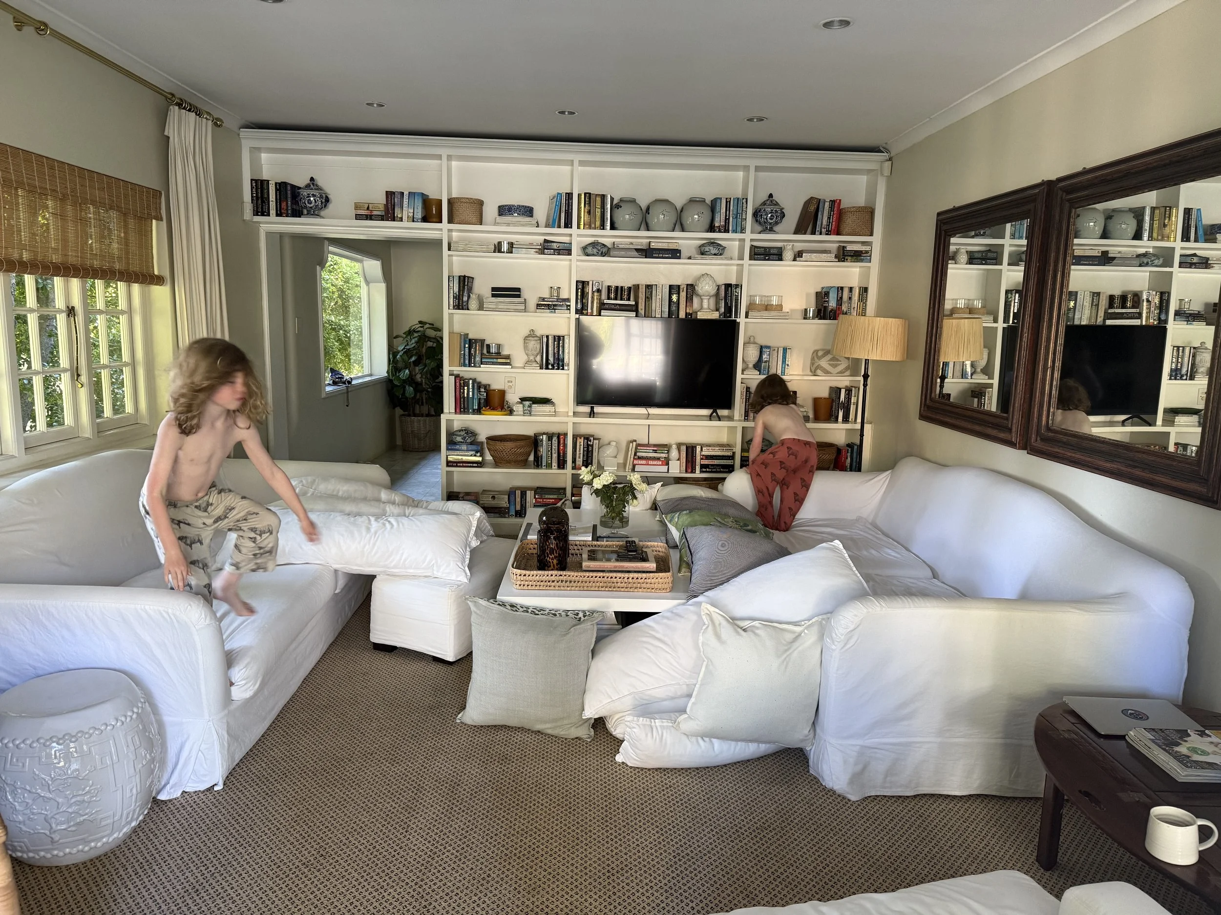 The day began with the creation of the boys’ beaver nest. They worked together shockingly well and the battling was at a minimum during the construction and use of the nest. The number of pillows limited us to one nest otherwise it would have become a competition, as almost all things have become.